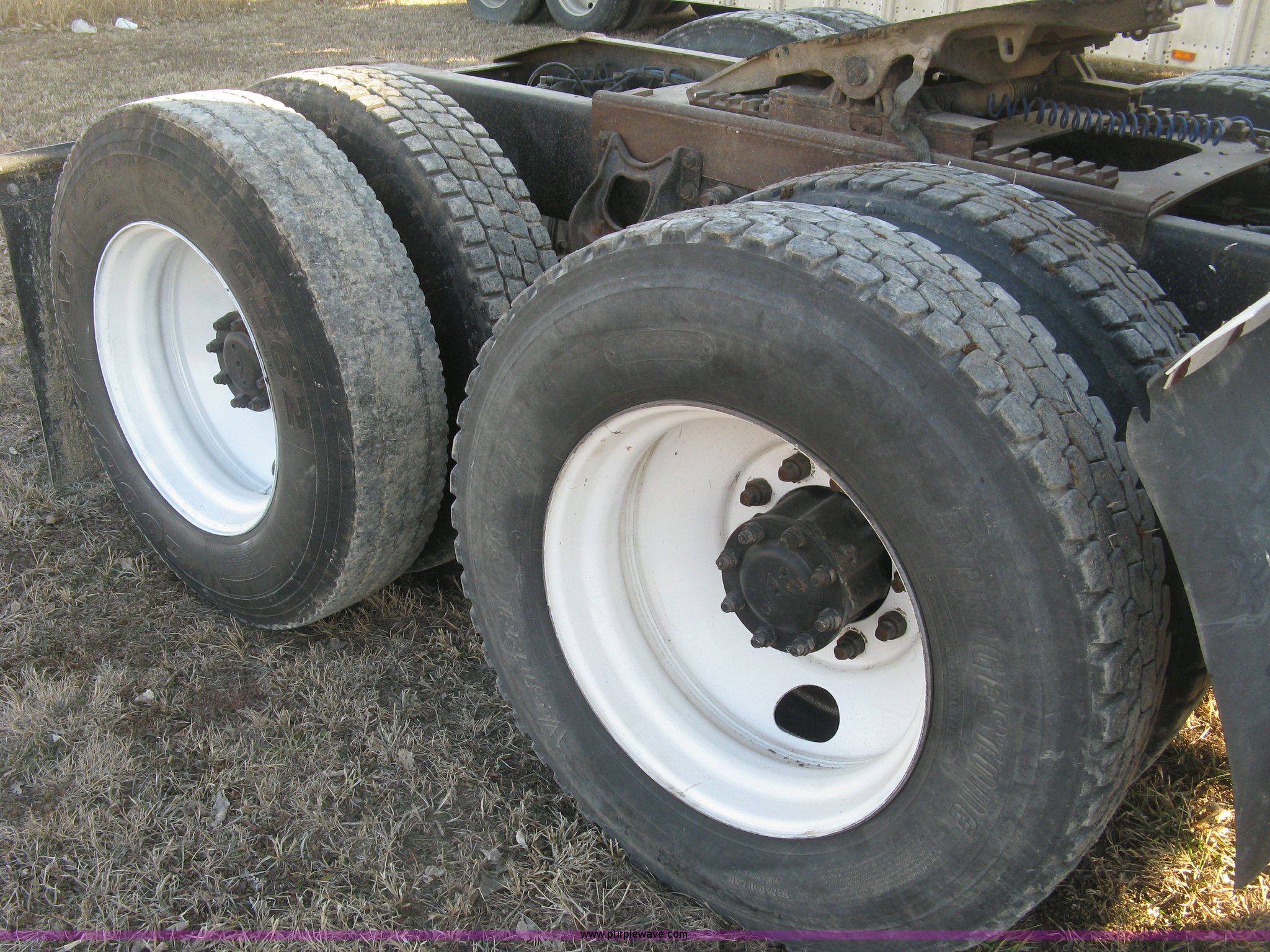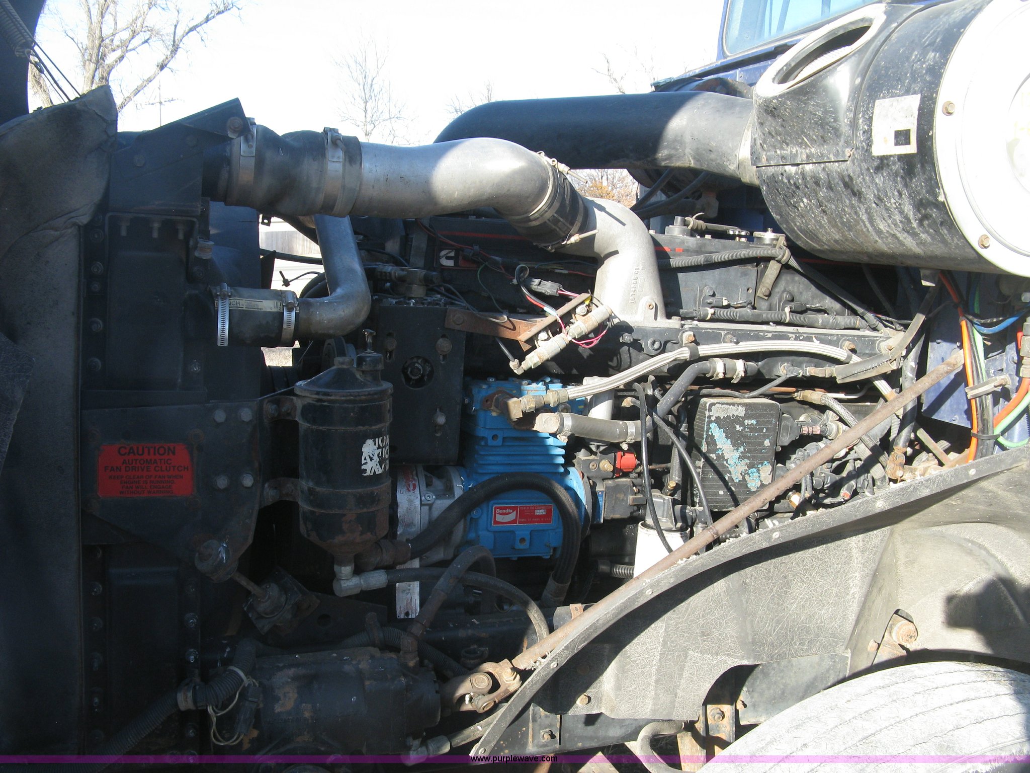 Purple Wave is selling a used Truck Tractor in Kansas. This item is a 1993 International Eagle 9400 semi truck with the following: 108,823 miles on odometer, Actual mileage unknown, Cummins N14-430E 14.0L L6 turbo diesel engine, 430 HP, Serial 11681614, Eaton Fuller Performance nine speed manual transmission, Tandem axle, Inter-axle differential lock, AC and heat, Cruise, AM/FM/CD, Heated mirrors, Power passenger window, Air suspension seat, Spotlight, 48" sleeper, Single bed, Storage cabinets, Rear climate control, Block heater, Exterior visor, Rear exhaust stack, Aluminum deck plate, Air operated sliding fifth wheel plate, Dual fuel tanks, Quarter fenders, Mud flaps, Air suspension, Air brakes, 211" wheelbase, 11R24.5 tires, GVWR 52,000 lbs, FAWR 12,000 lbs, IAWR 20,000 lbs, RAWR 20,000 lbs, Exterior body damage, Unit# 21