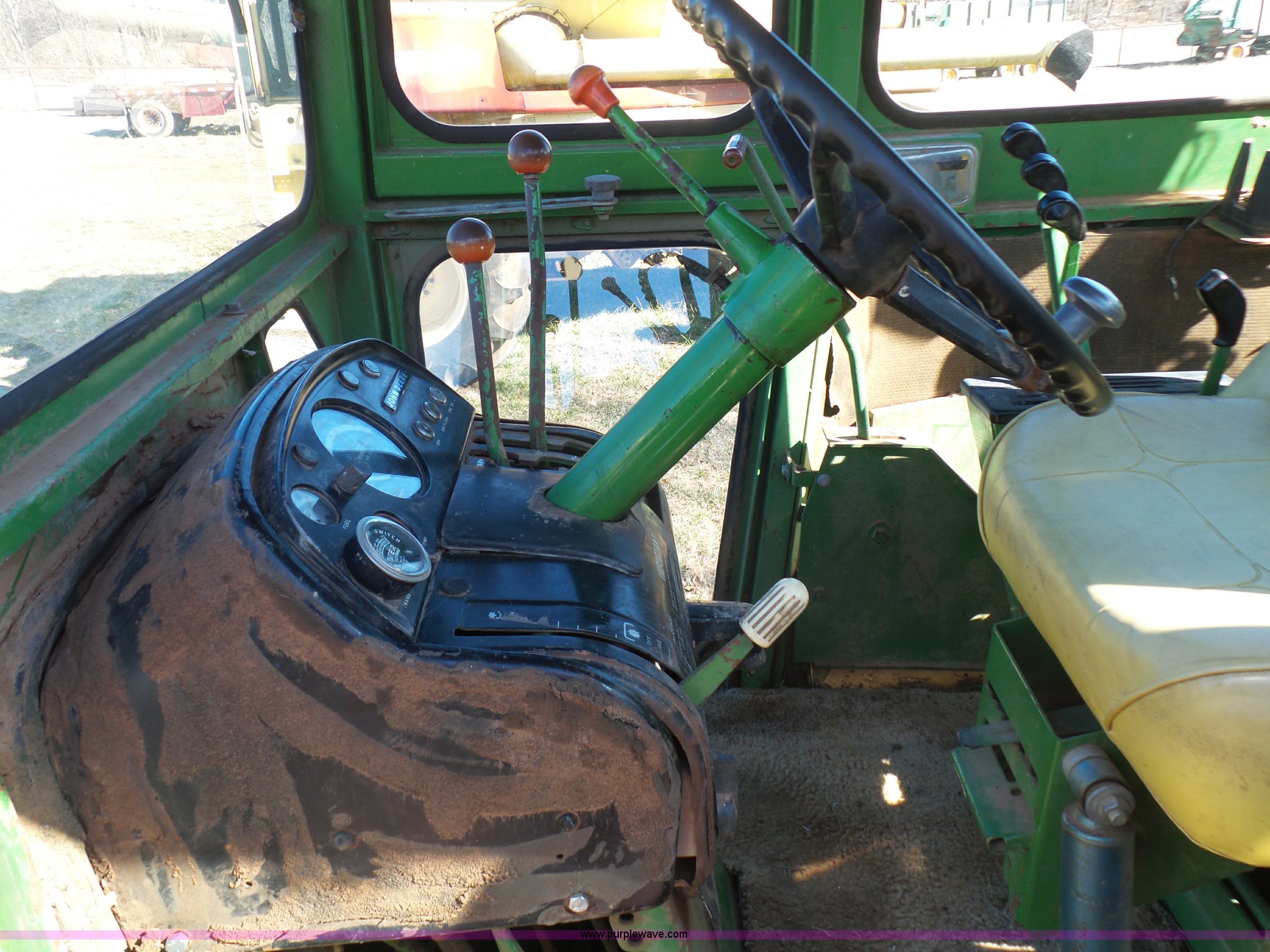 Purple Wave is selling a used Articulated 4-Wheel Drive Tractor in Oklahoma. This item is a John Deere 7520 4WD tractor with the following: 8,601 hours on meter, John Deere 6531AN.02 six cylinder diesel engine, Serial 286917R, Manual transmission, 9F-9R gears, Differential lock, Suspension seat, Block heater, Three point, Large 1000 PTO, (3) rear hydraulic remote sets, 18.4-38 tires, Brakes are weak, Serial T923R003436R