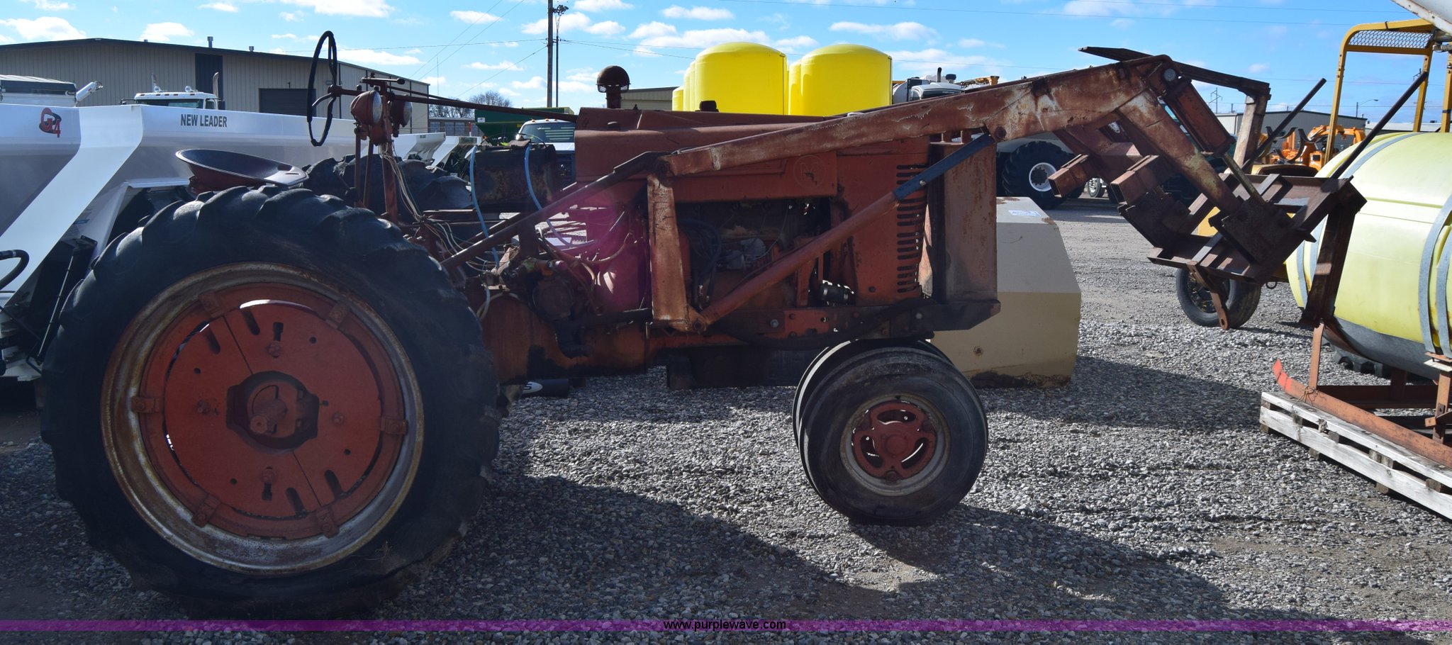Purple Wave is selling a used Tractor in Kansas. This item is a Farmall M tractor with the following: Four cylinder propane engine, 25 HP, Engine locked up, Manual transmission, 5F-1R gears, Work lights, Loader, Skid forks, One damaged, 540 PTO, 21 gallon fuel tank, 6.50-16 front tires, 12.4-38 rear tires