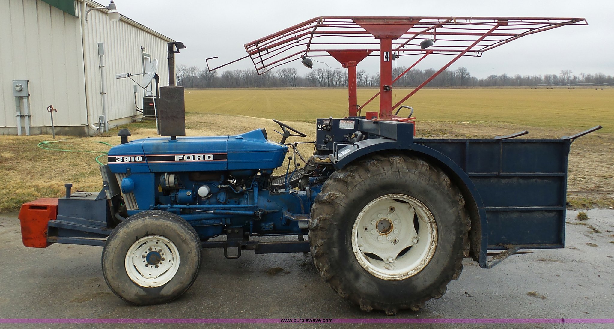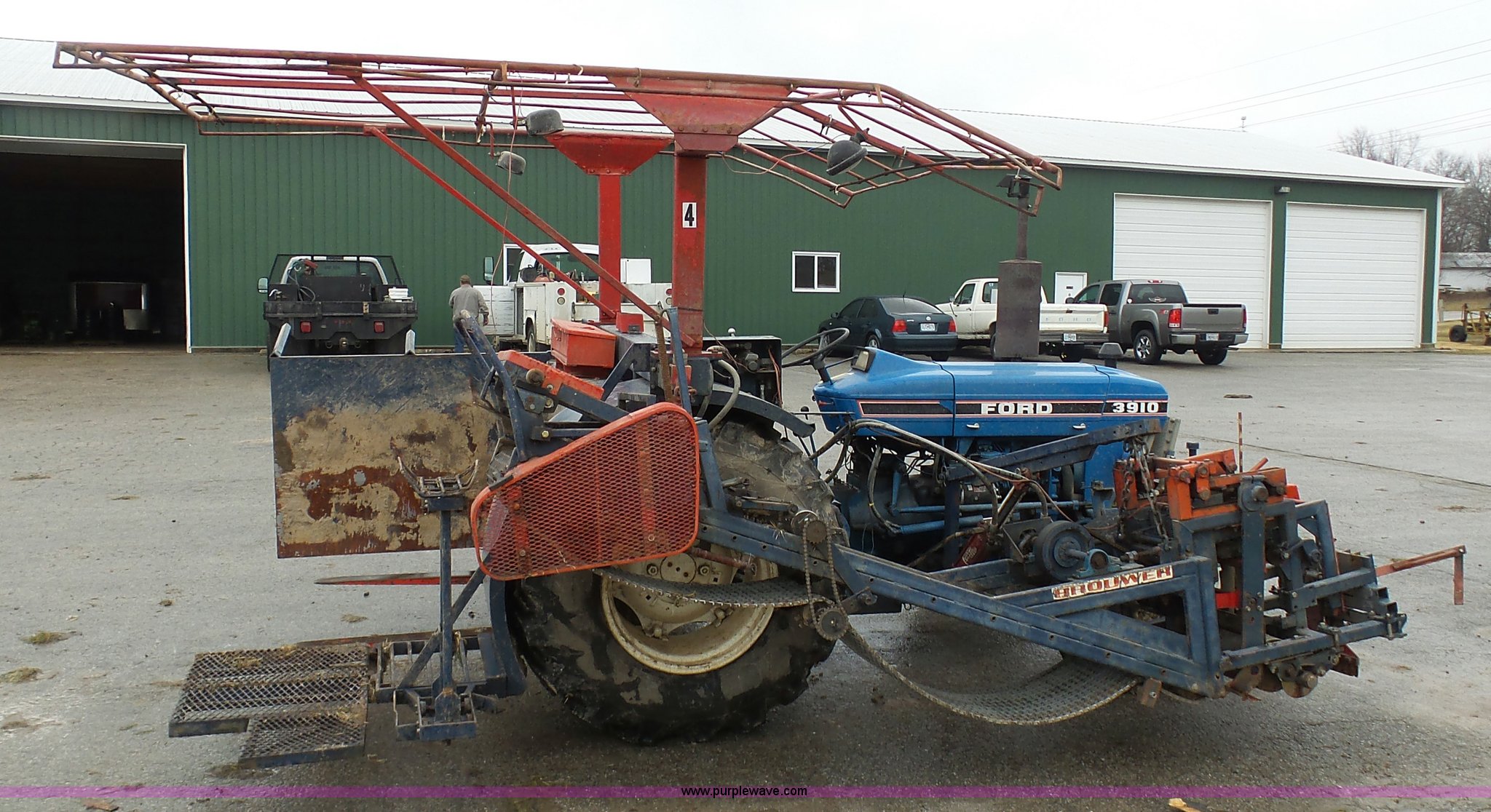 Purple Wave is selling a used Tractor in Missouri. This item is a Ford 3910 tractor with Brouwer sod harvester with the following: Three cylinder diesel engine, Serial DSNN6015F, Manual transmission, 8F-2R gears, Canopy, Brouwer A3A sod harvester, (7) front weights, 11-15 front tires, 16.9/14-24 rear tires, Harvests 18"W sod rolls