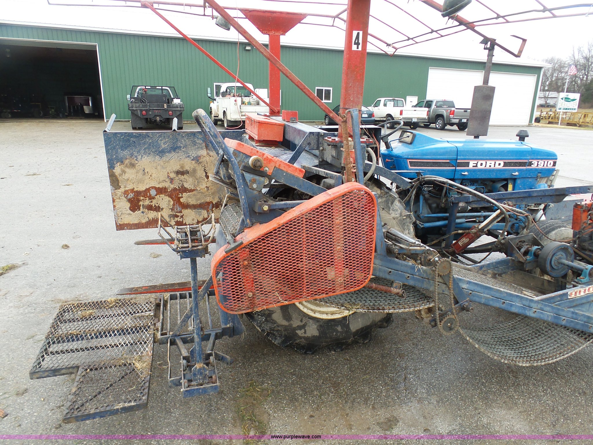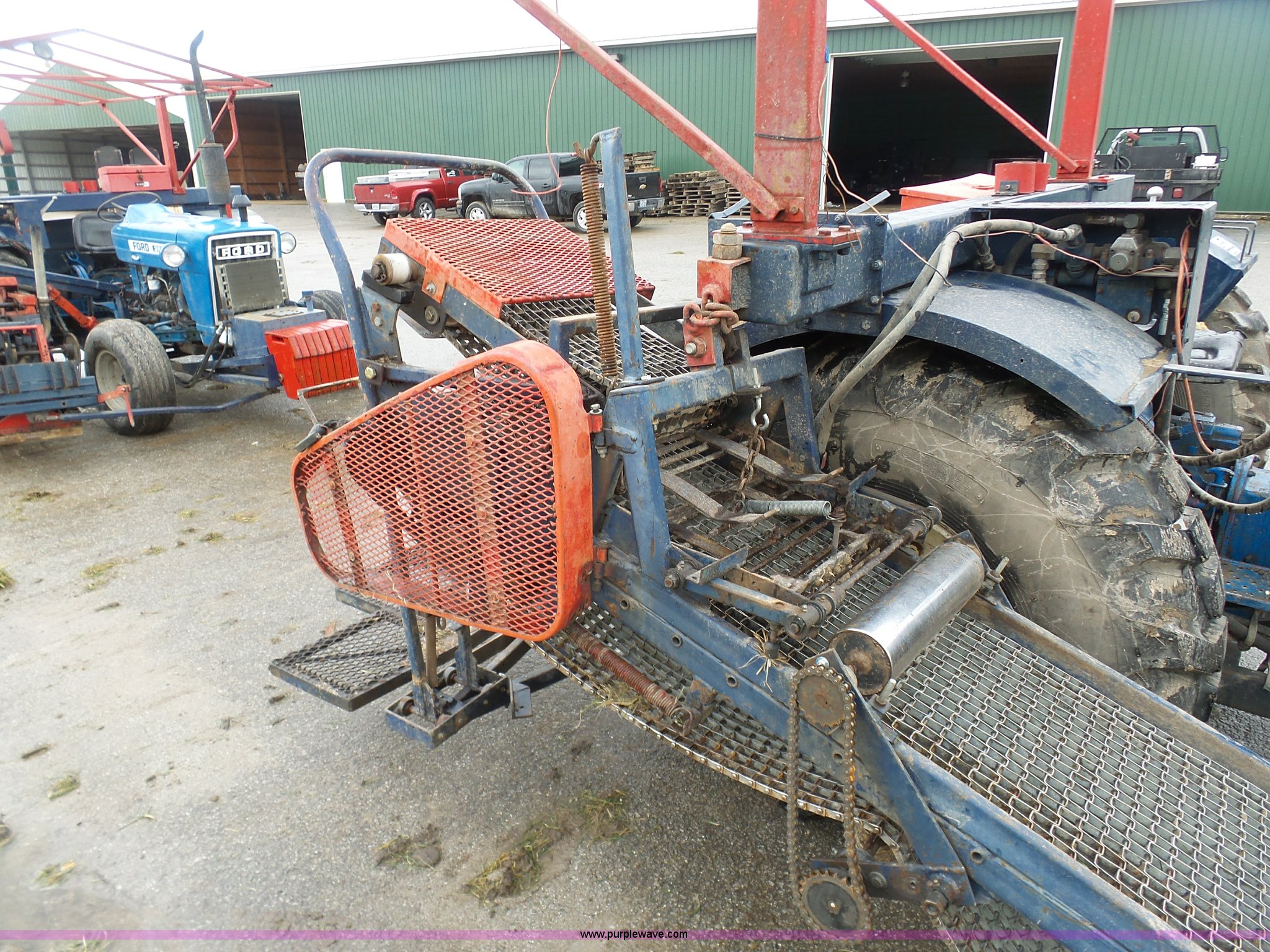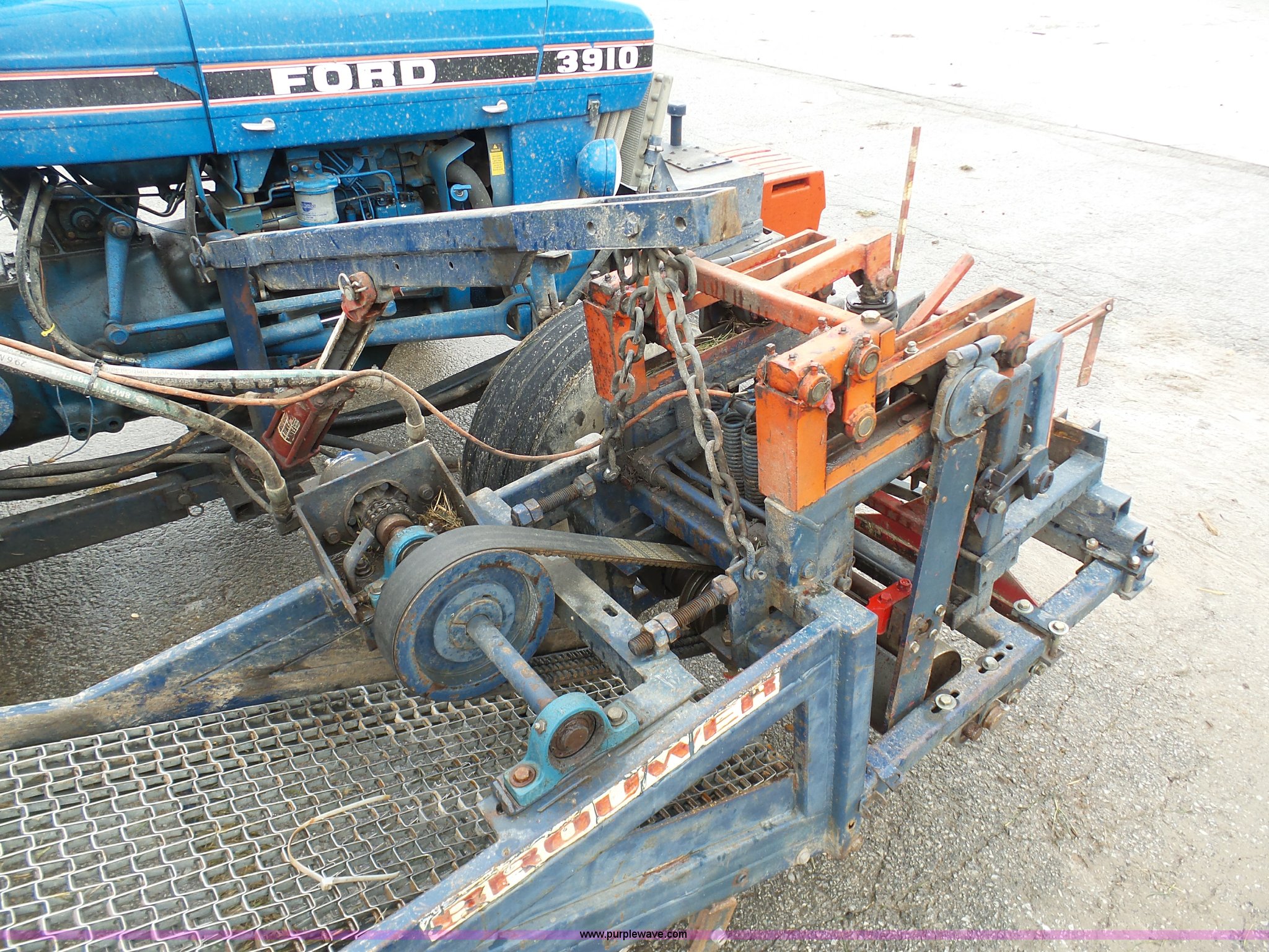 Ford 3910 tractor with Brouwer sod harvester. Three cylinder diesel engine Serial DSNN6015F, Manual transmission 8F-2R gears, Canopy, Brouwer A3A sod harvester, (7) front weights, 11-15 front tires, 16.9/14-24 rear tires, Harvests 18"W sod rolls. Emerald View Turf Farms. 1722 Highway 79. O'Fallon, MO 63366