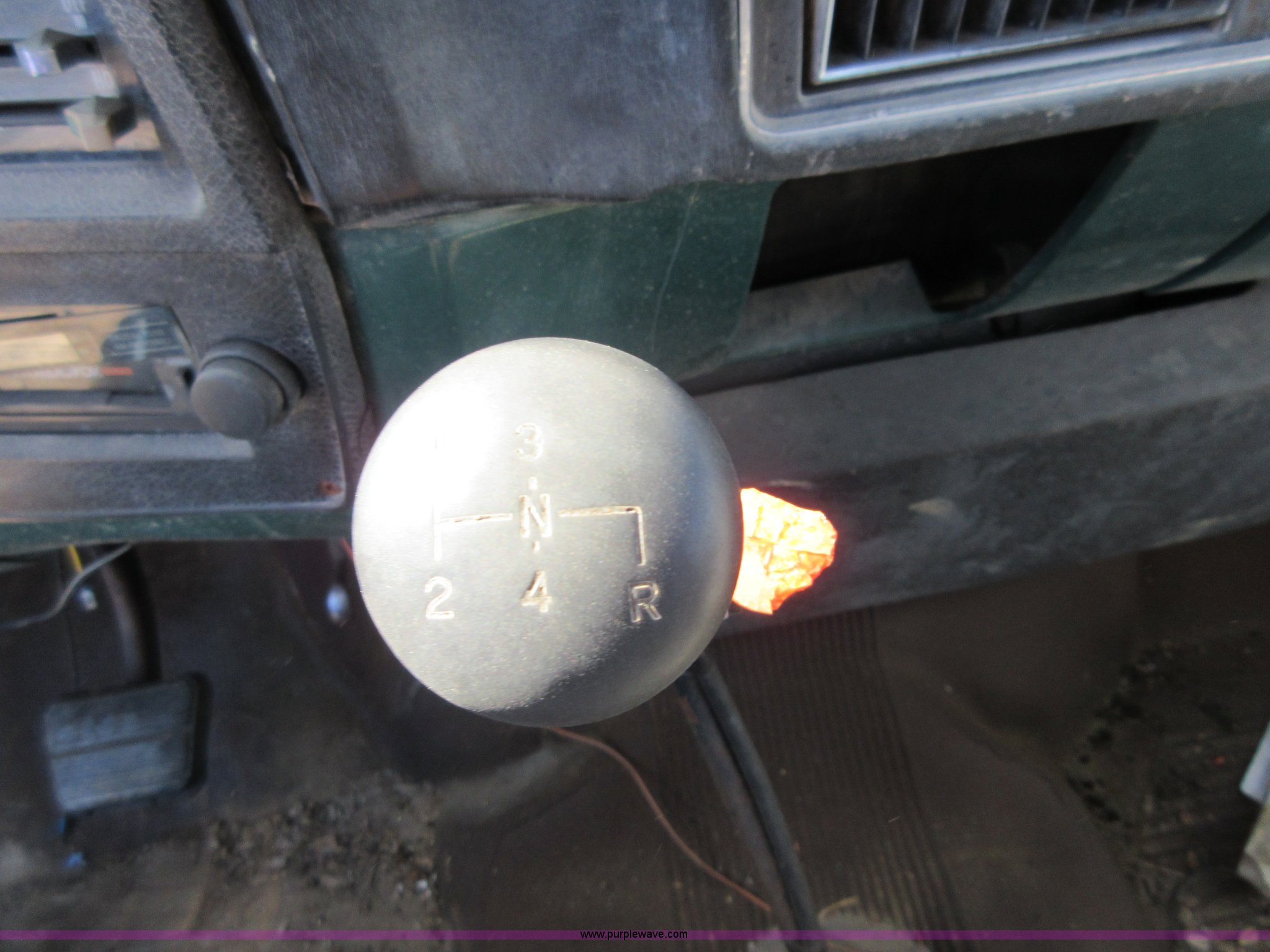 Purple Wave is selling a used Crane Truck in Missouri. This item is a 1976 GMC 6500 crane truck with the following: 366 C.I.D. eight cylinder gas engine, Five speed manual transmission, Two speed rear end, Heat, AM/FM, 16'L x 94"W flatbed, Wood floor, National N-45 knuckle boom crane, 3,600 lbs lift capacity, Serial 9662,, Hydraulic brakes, 9.00-20 tires, GVWR 25,160 lbs, FAWR 9,000 lbs, RAWR 16,160 lbs, Cracked windshield, Oil leaks on crane hoses