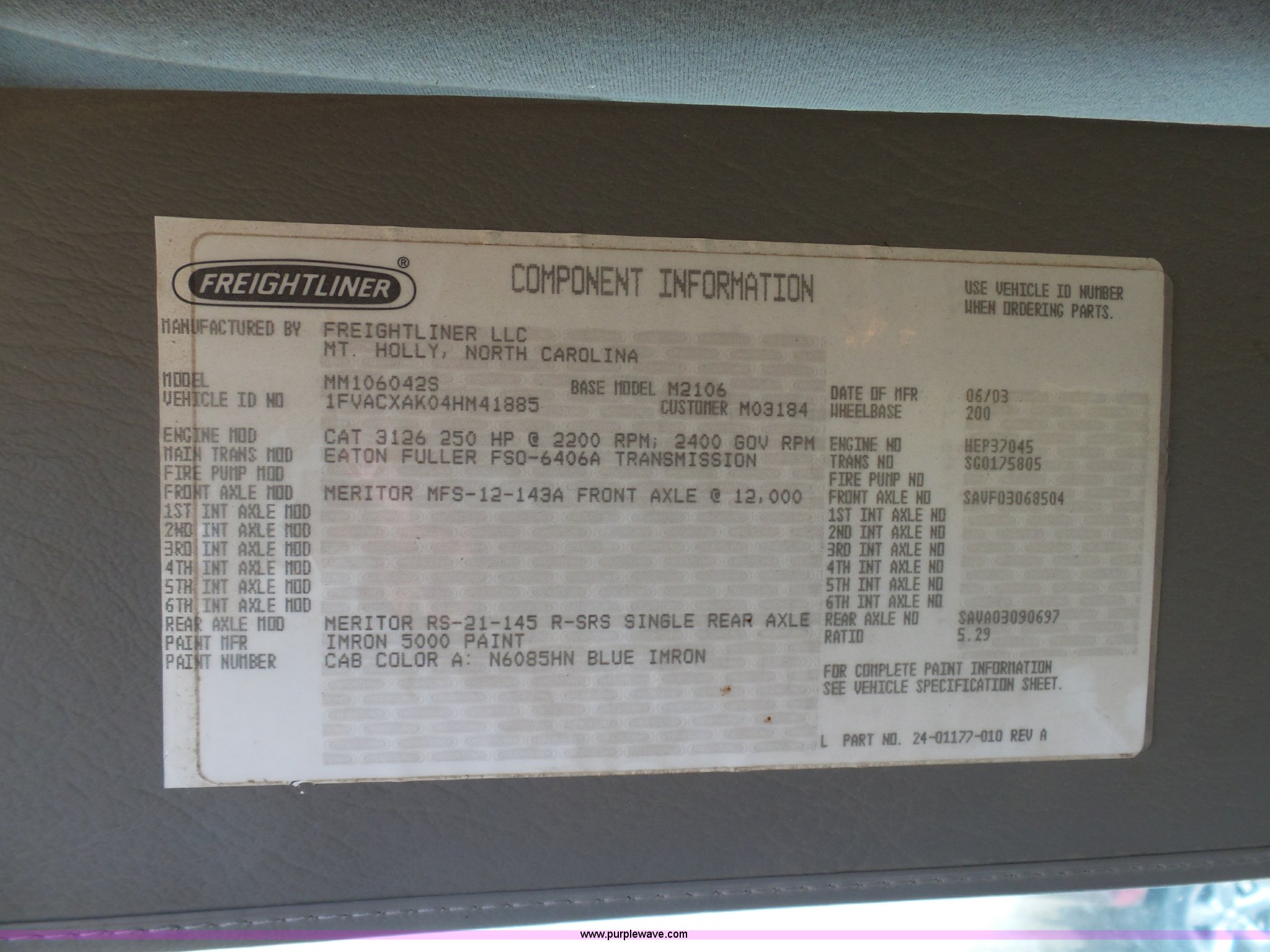 Purple Wave is selling a used Fuel Truck in Missouri. This item is a 2004 Freightliner Business Class M2 fuel truck with the following: 170,494 miles on odometer, Caterpillar 3126 7.2L L6 diesel engine, Eaton Fuller FSO-6406A manual transmission, AC and heat, Cruise, AM/FM/cassette, Air suspension seat, PTO, Brow Tank & Fabrication Co. fuel bed, 2,000 gallon total capacity, (5) compartments, (2) 500 gallon, 400 gallon, (2) 300 gallon, Serial 587522, Air suspension, Air brakes, 11R22.5 tires, GVWR 33,000 lbs, Fuel tank issues, ABS light on, Unit# 1635