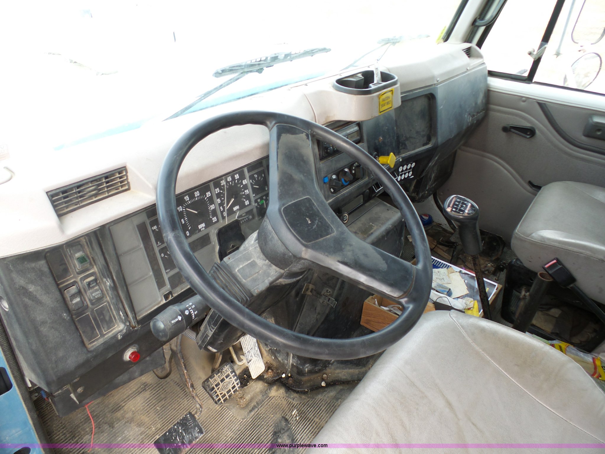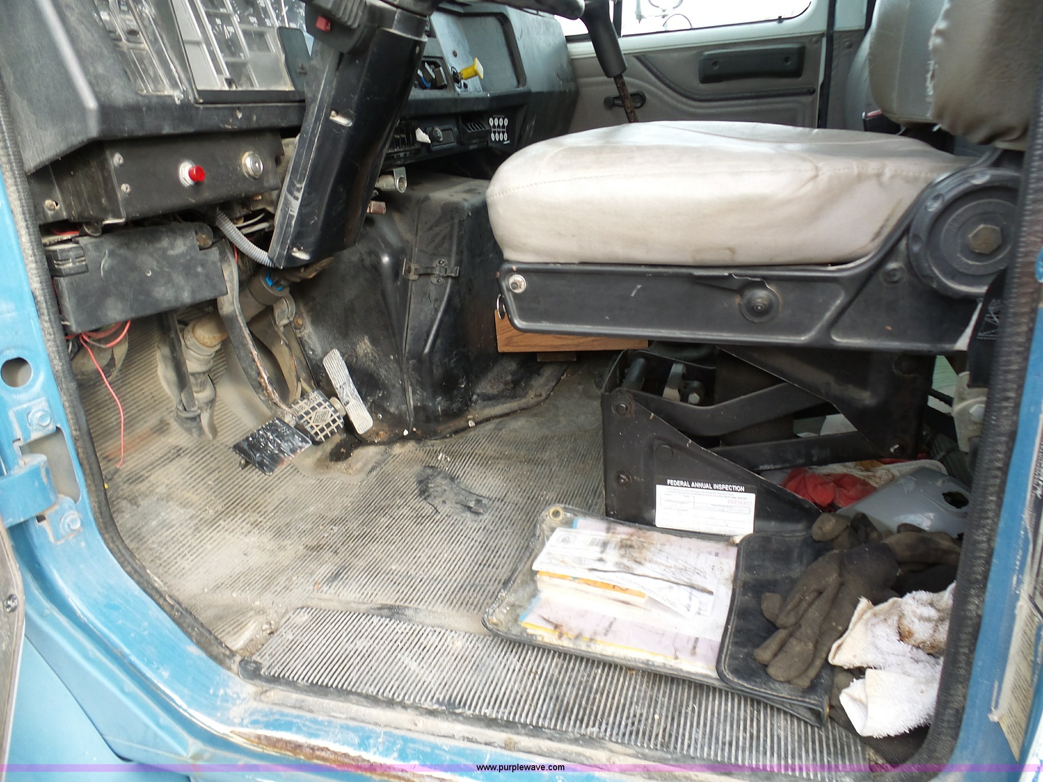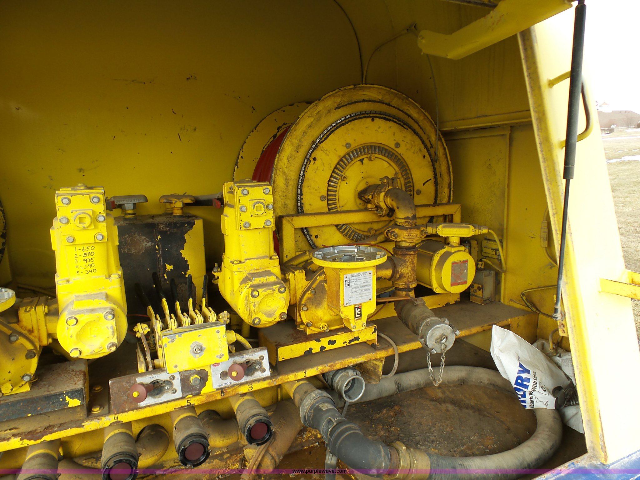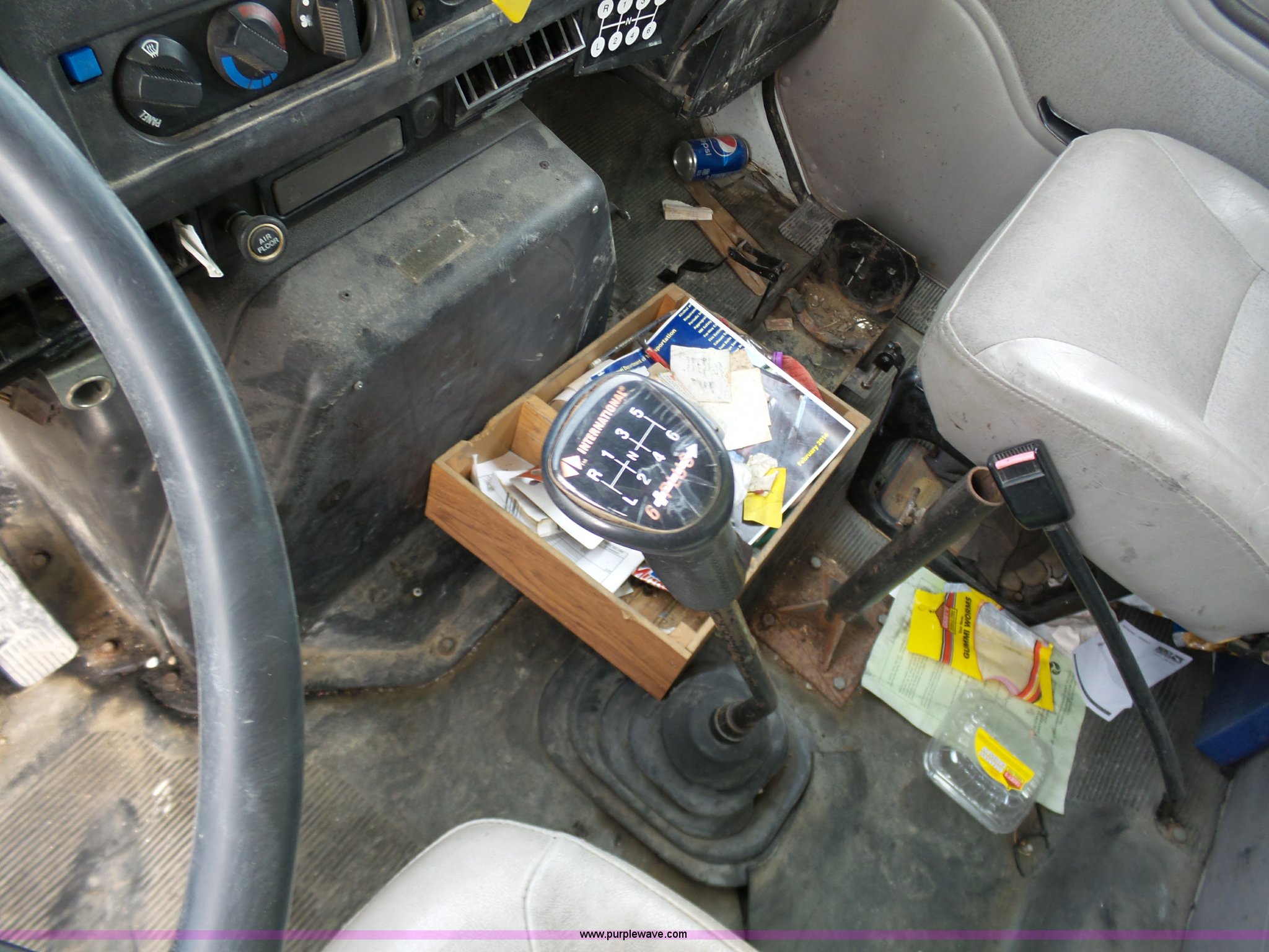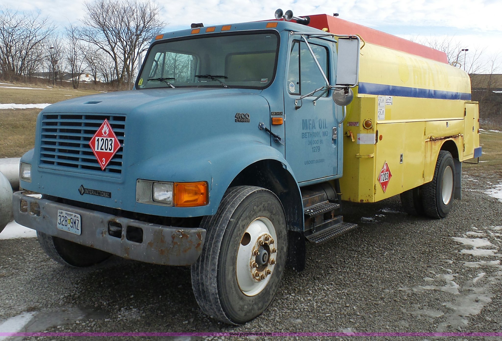 Purple Wave is selling a used Fuel Truck in Missouri. This item is a 1999 International 4900 fuel truck with the following: 69,881 miles on odometer, International DT466E 7.6L L6 diesel engine, International 6PLUS six speed manual transmission, AC and heat, Cruise, AM/FM, Air suspension seat, Heated mirrors, PTO, Ameritank fuel bed, 2,100 gallon total capacity, (5) compartments, 600 gallon, 500 gallon, 400 gallon, (2) 300 gallon,, Spring suspension, Air brakes, 188" wheelbase, 11R22.5 tires, Unit# 1279