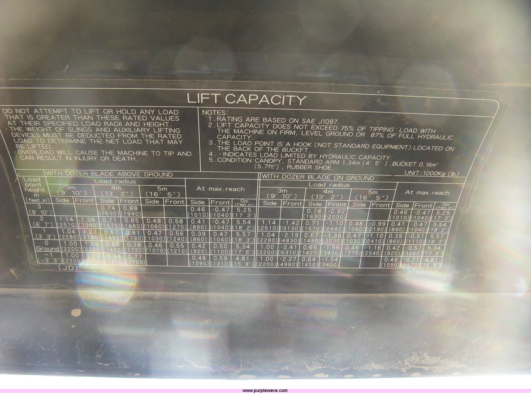Purple Wave is selling a used Mini Excavator in Kansas. This item is a 2004 John Deere 50C ZTS compact excavator with the following: 2,502 hours on meter, Isuzu CC-4LE2 four cylinder diesel engine, 31.4 kW, Serial 4LE2NABDB-02, Hydrostatic transmission, Front work lights, Standard boom, 4.5' stick length, Tag 24"W bucket, Weld-on cutting edge, (5) weld-on teeth, Auxiliary hydraulics, 78.5"W backfill blade, 16"W rubber tracks, 10,252 lbs. base operating weight, Serial FF050CX241550