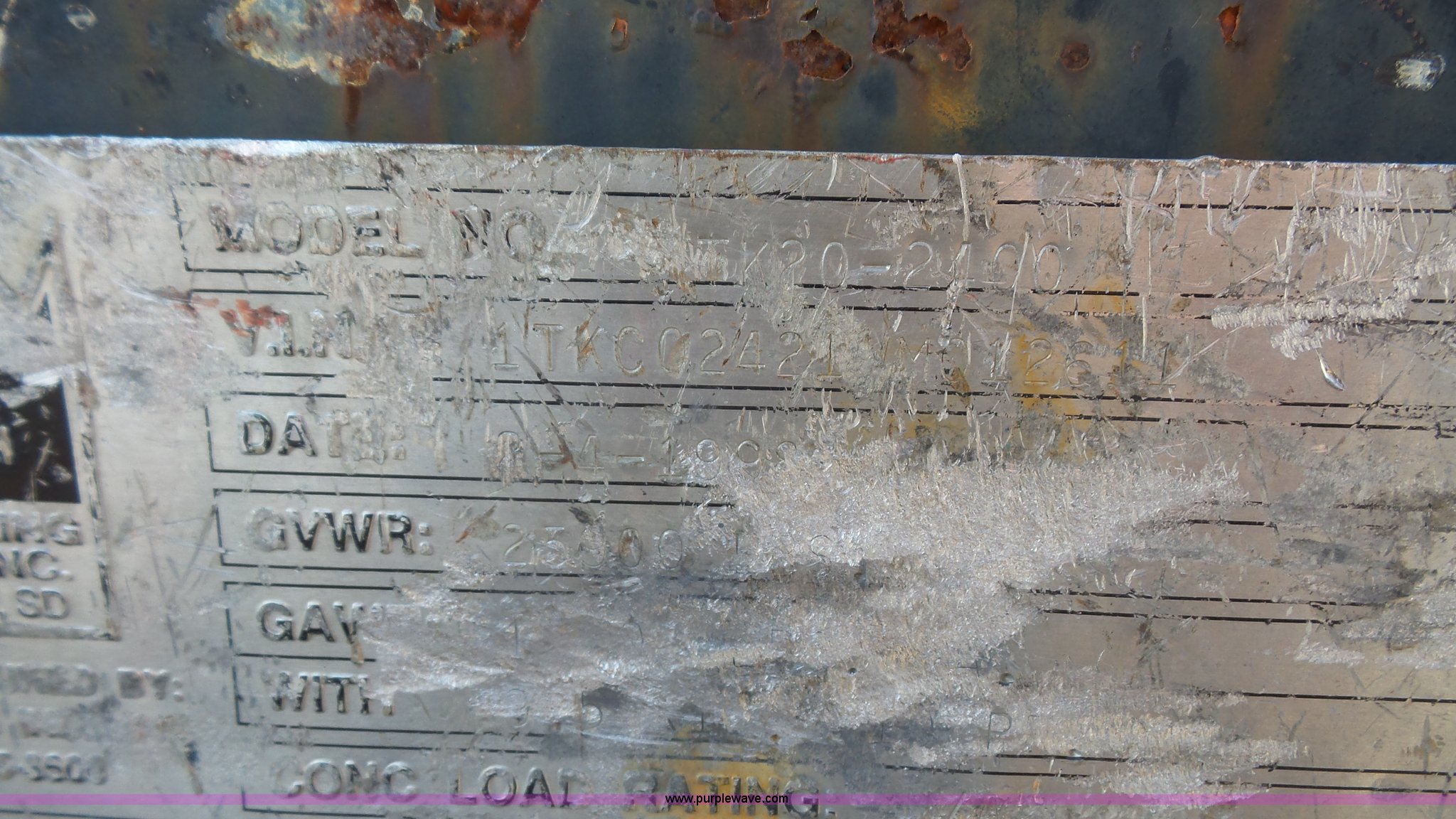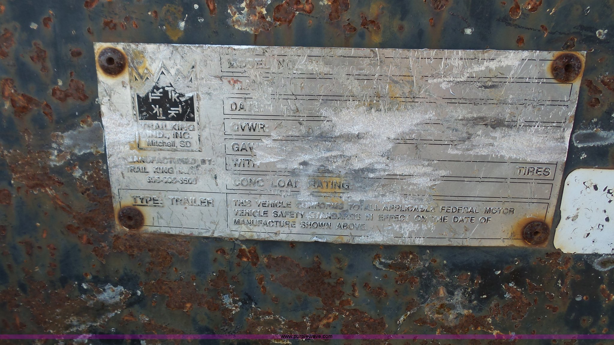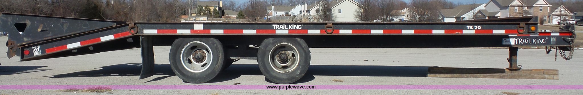 Purple Wave is selling a used Equip. Trailer in Kansas. This item is a 1998 Trail King TK20-2400 equipment trailer with the following: 24'L x 102"W, 5'L dovetail, 5'L manual ramps, Wood deck, D-ring tie downs, Single leg landing gear, Pintle hitch, Tandem axle, Spring suspension, Air brakes, 245/75R16 tires, GVWR 25,900 lbs