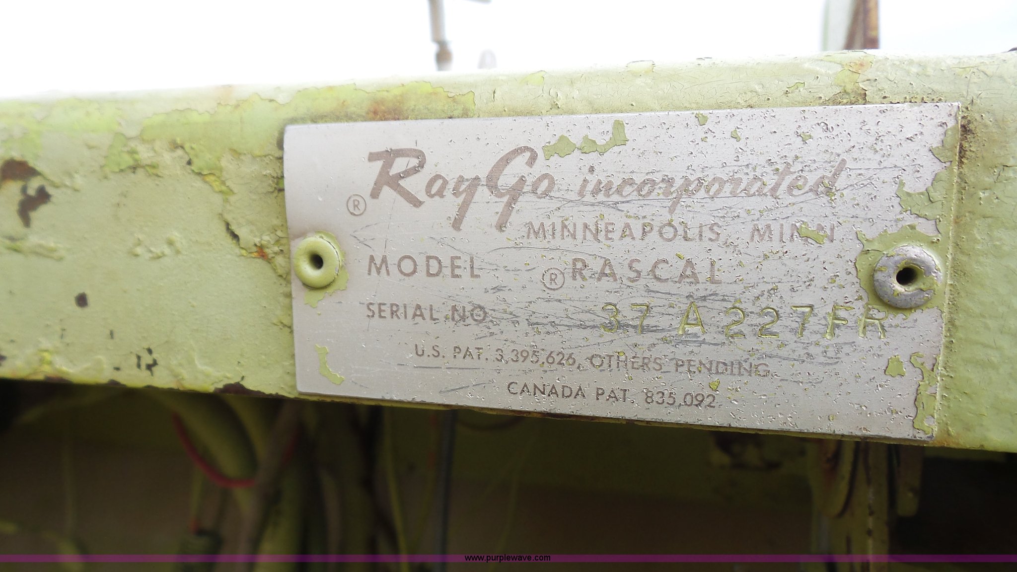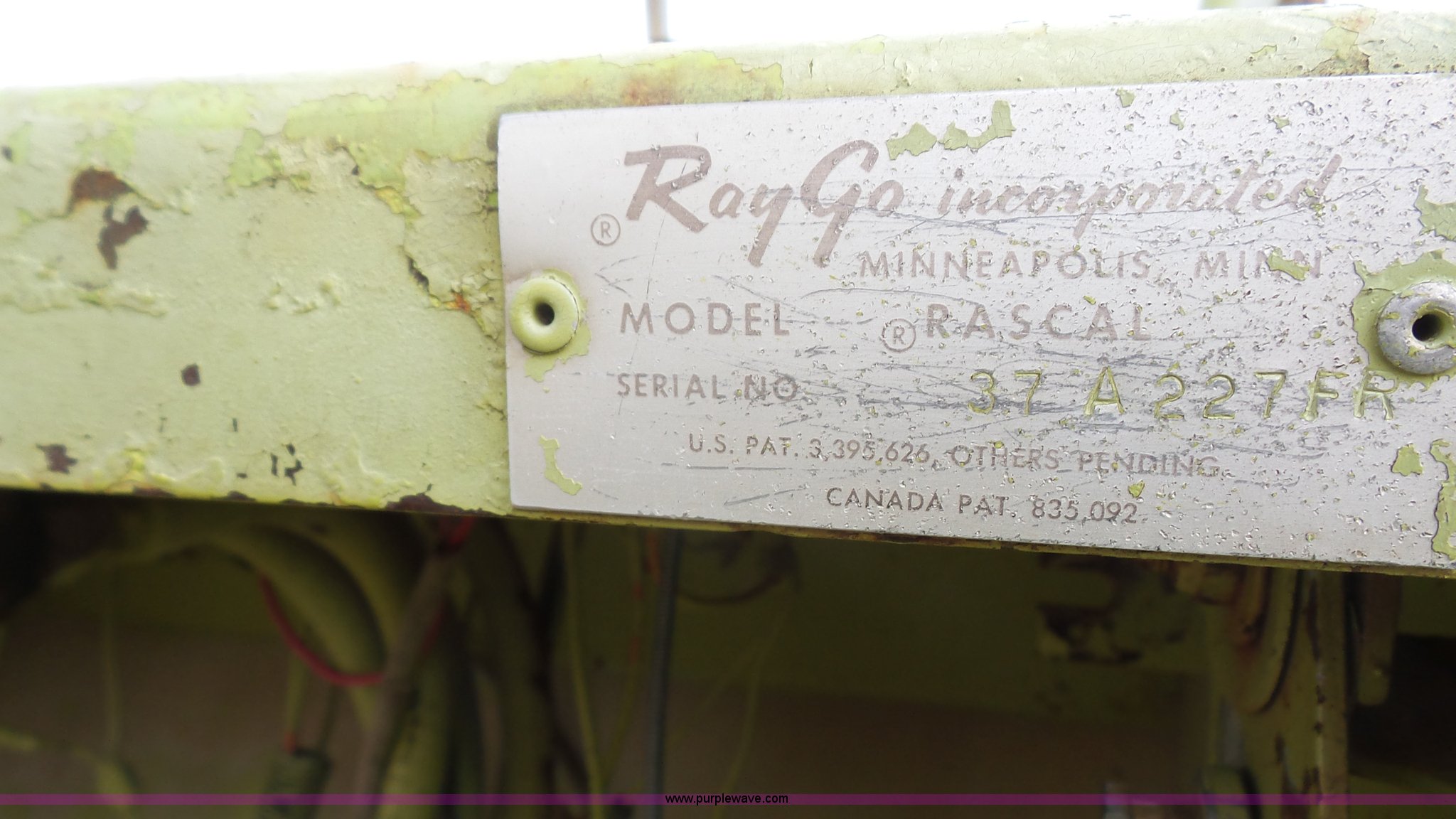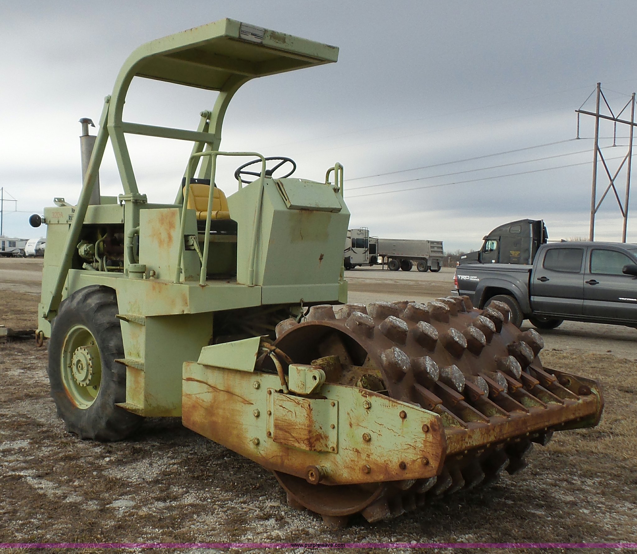 Purple Wave is selling a used Single Drum Roller Compactor in Kansas. This item is a Raygo Rascal soil compactor with the following: 2,814 hours on meter, Ford four cylinder diesel engine, Hydrostatic transmission, OROPS, Canopy, 60"W padfoot front drum, 14.9-24 tires, Non-operational vibratory system, Throttle cable needs replaced, Serial 37A22TFR