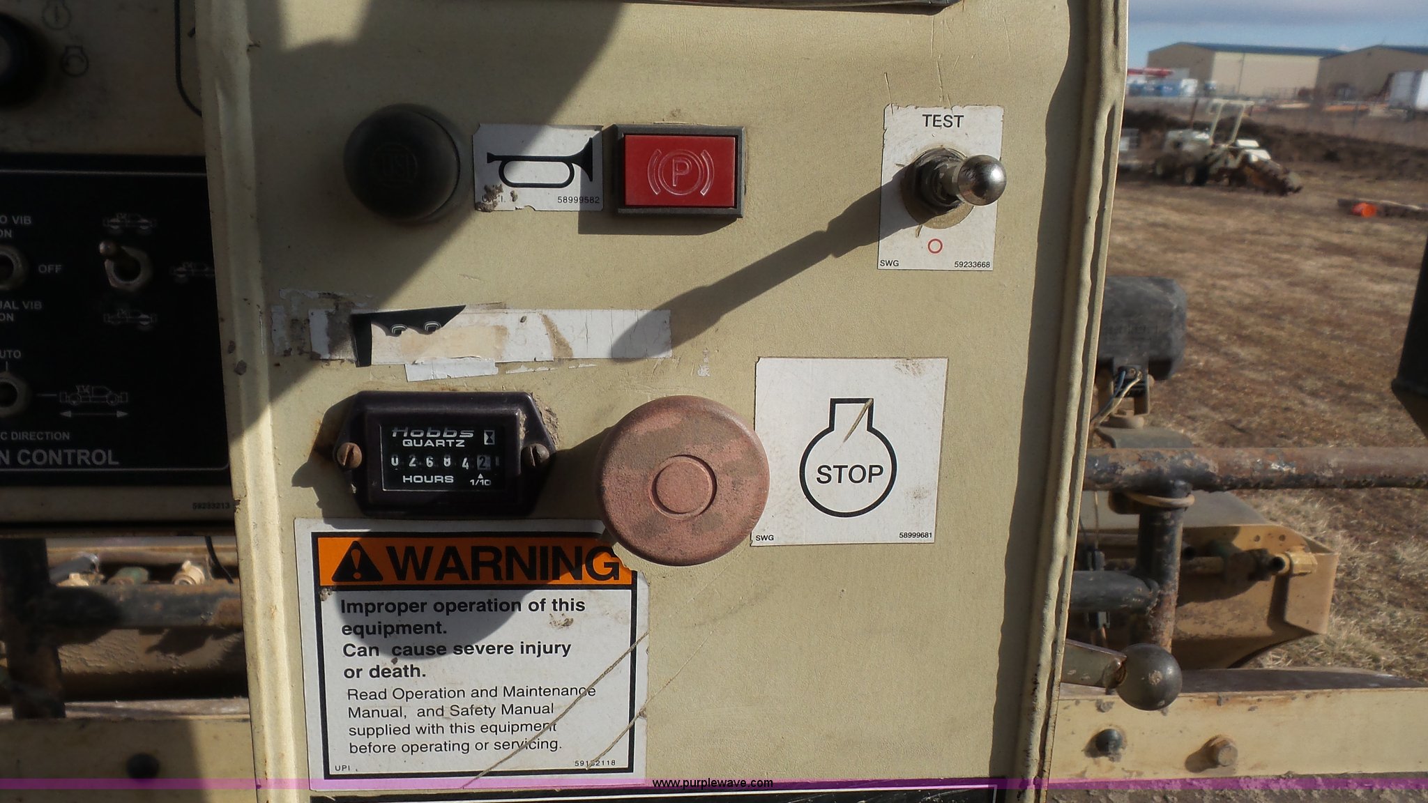 Purple Wave is selling a used Double Drum Roller Compactor in Kansas. This item is a 2000 Ingersoll Rand DD110HF vibratory double drum roller with the following: 2,684 hours on meter, Cummins 3.9L four cylinder diesel engine, 125 HP, Hydrostatic transmission, OROPS, Canopy, AC, 78"W x 52" diameter smooth drums, Front and rear drum scrapers, Front and rear water applicators, Serial 166757