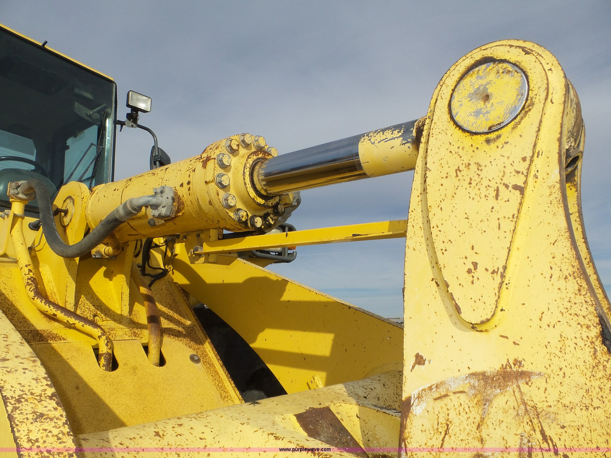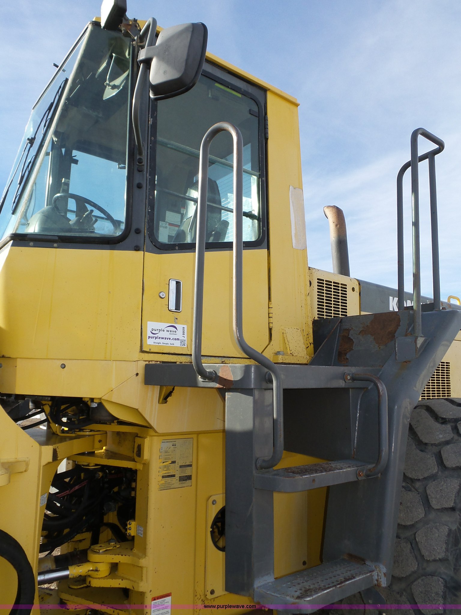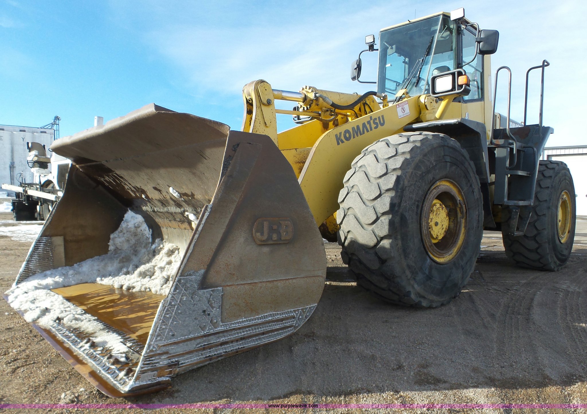 Purple Wave is selling a used Wheel Loader in Nebraska. This item is a 2000 Komatsu WA450-3MC wheel loader with the following: 21,304 hours on meter, Six cylinder turbo diesel engine, Powershift transmission, 4F-4R gears, Enclosed cab, AC and heat, AM/FM/cassette, Tilt steering wheel, Air suspension seat, Two-lever bucket controls, Wipers, Rear window defrost, Front and rear work lights, Backup alarm, 124"W general purpose bucket, 5.5 cu. yd. capacity, Bolt-on cutting edge, 26.5R25 tires, 50,230 lbs. base operating weight, Transmission rebuilt by Komatsu 2014, Head gaskets replaced January 2016, Contents are not included, Serial A31102