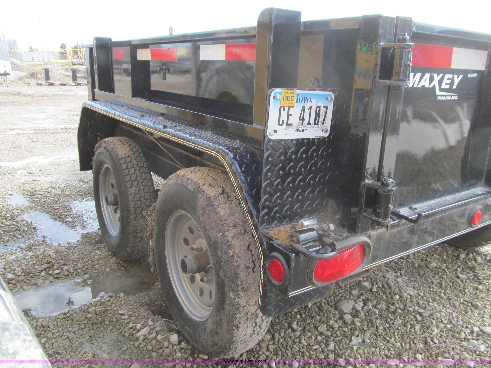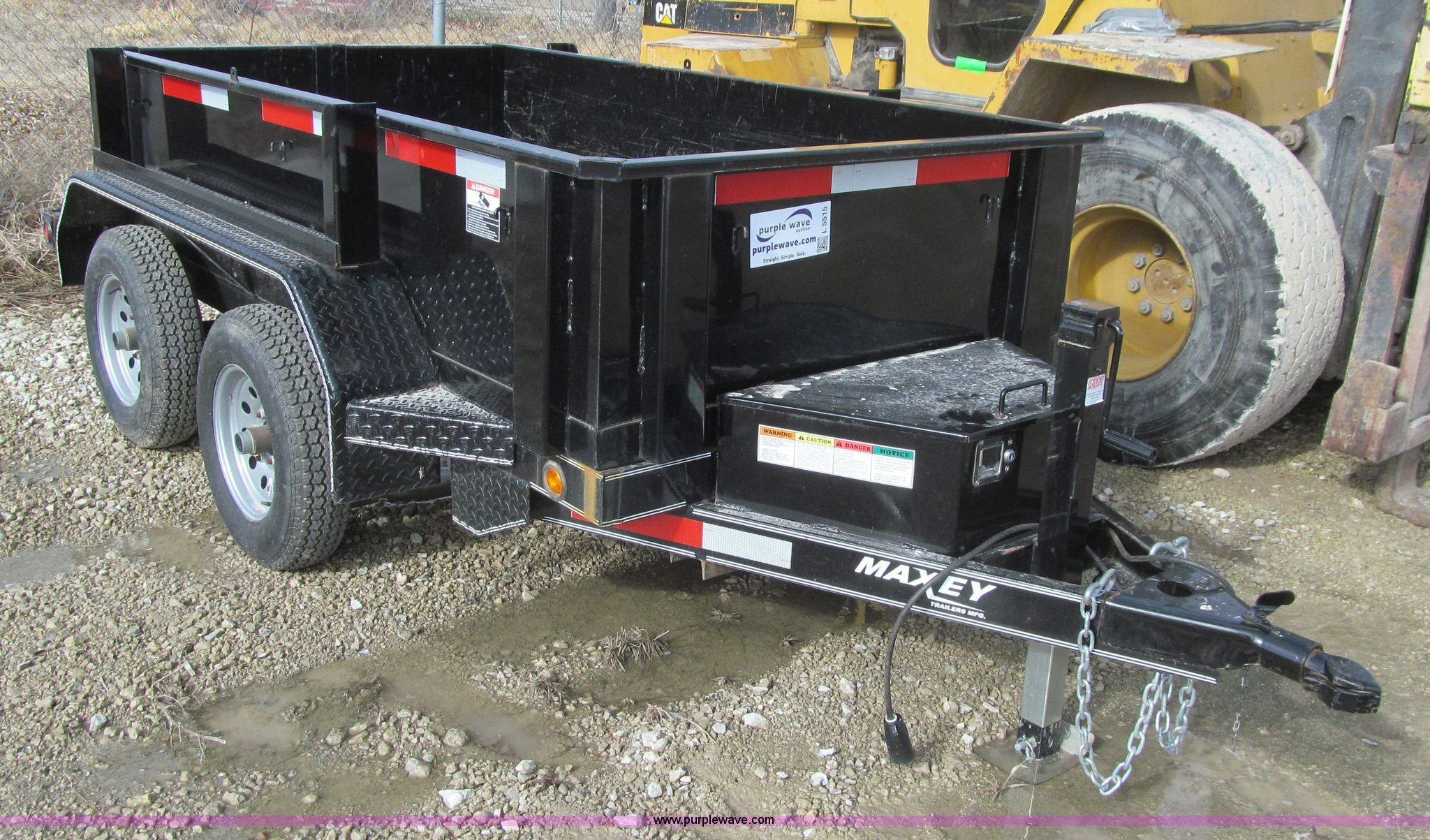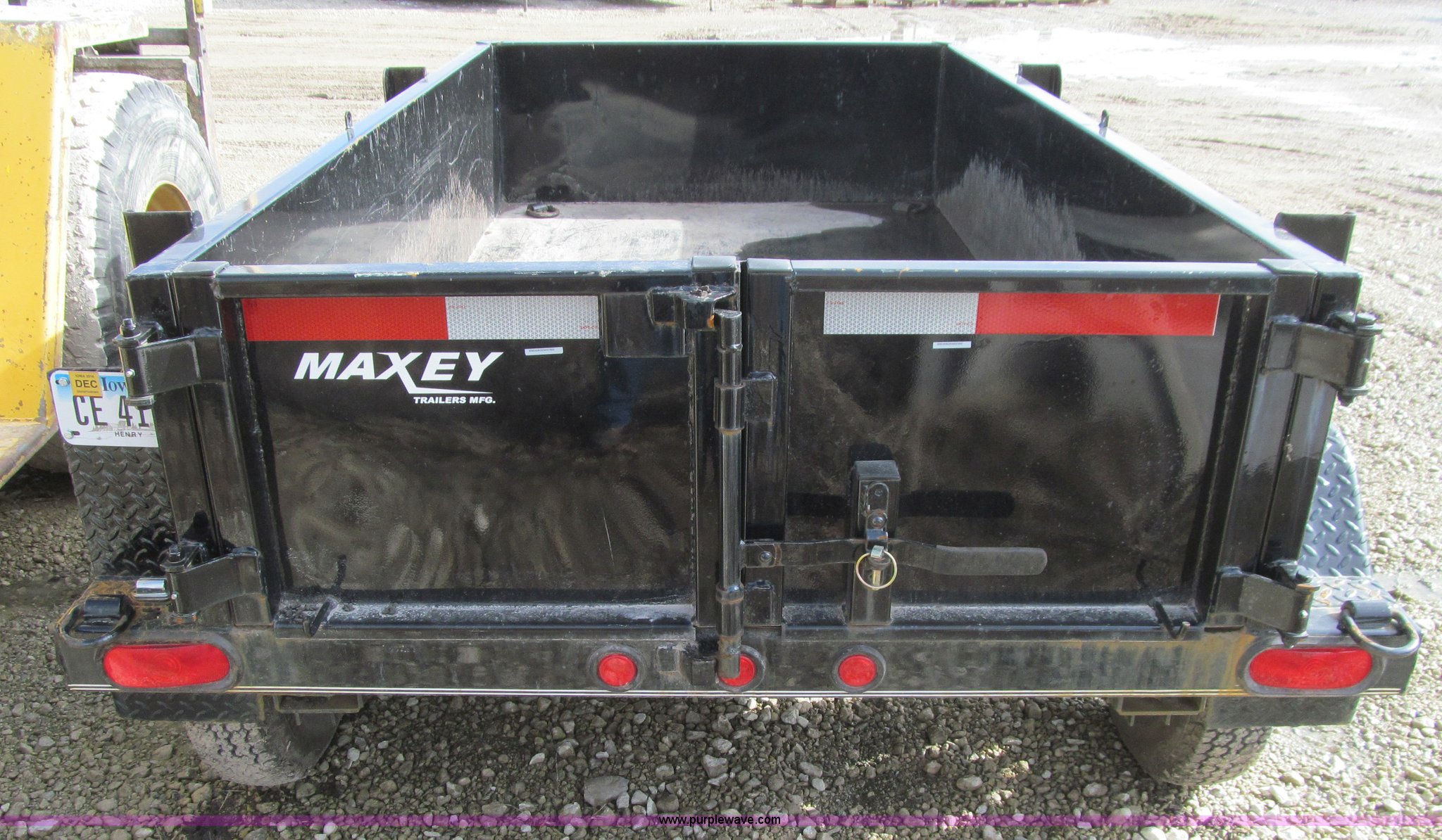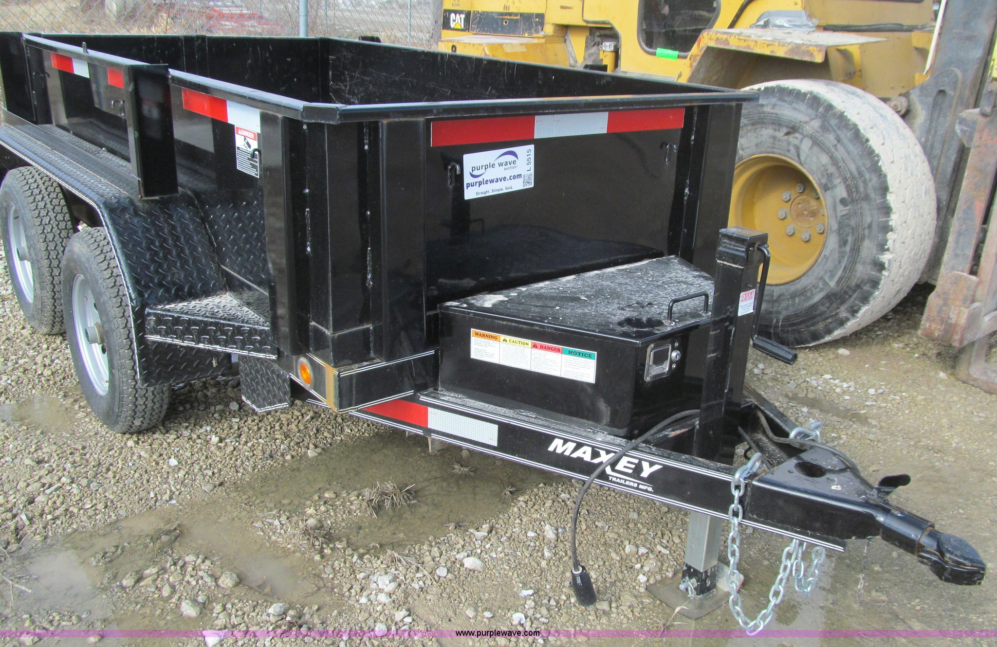 Purple Wave is selling a used End Dump Rock Trailer in Iowa. This item is a 2013 Maxey end dump trailer with the following: 96"L x 50"W dump bed, Internal lash rings, Rear bi-fold gate, Electric/hydraulic dump, Control cord, Battery charger, 2" ball hitch, Safety chains, Tongue jack, Spring suspension, Tandem axle, ST175/80D13 tires, GVWR 4,000 lbs, GAWR 2,000 lbs, Unused, Previously used as a demo unit