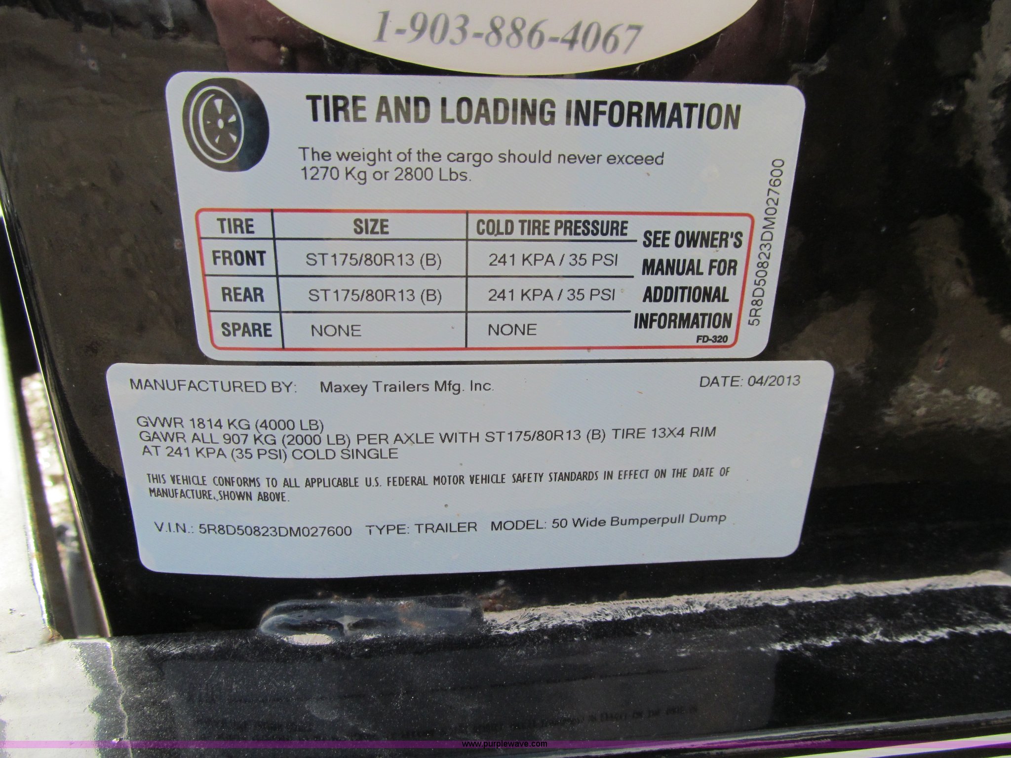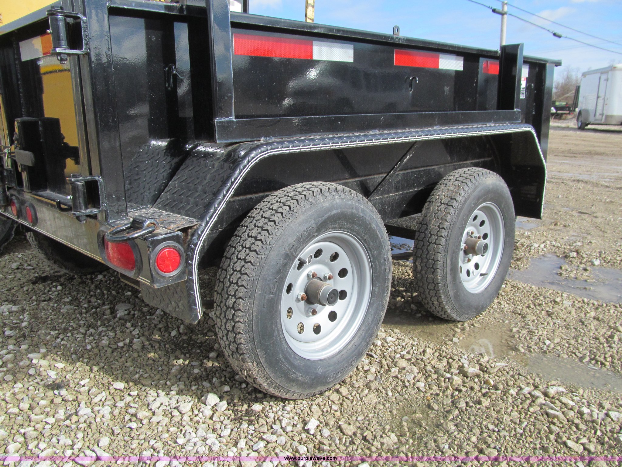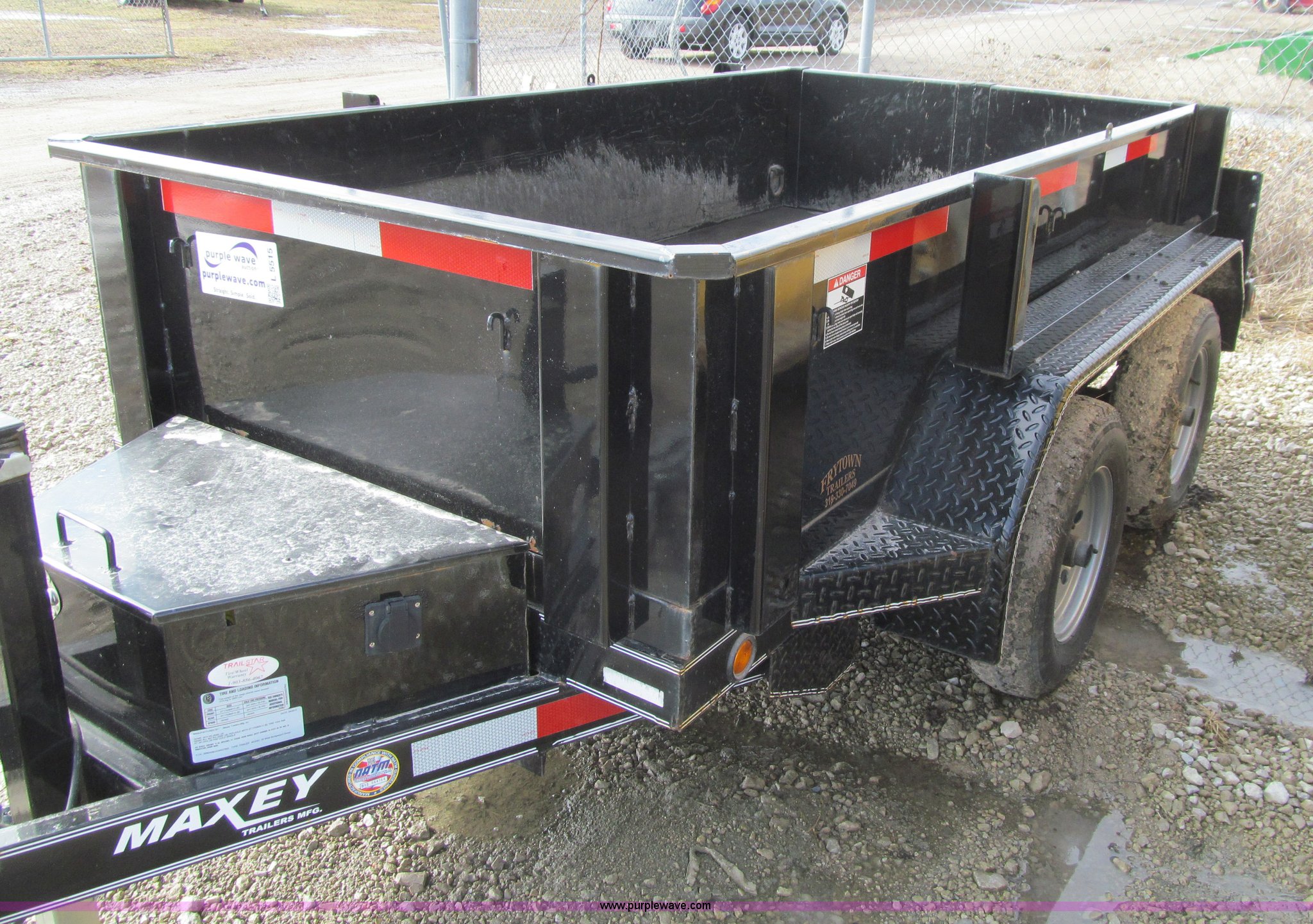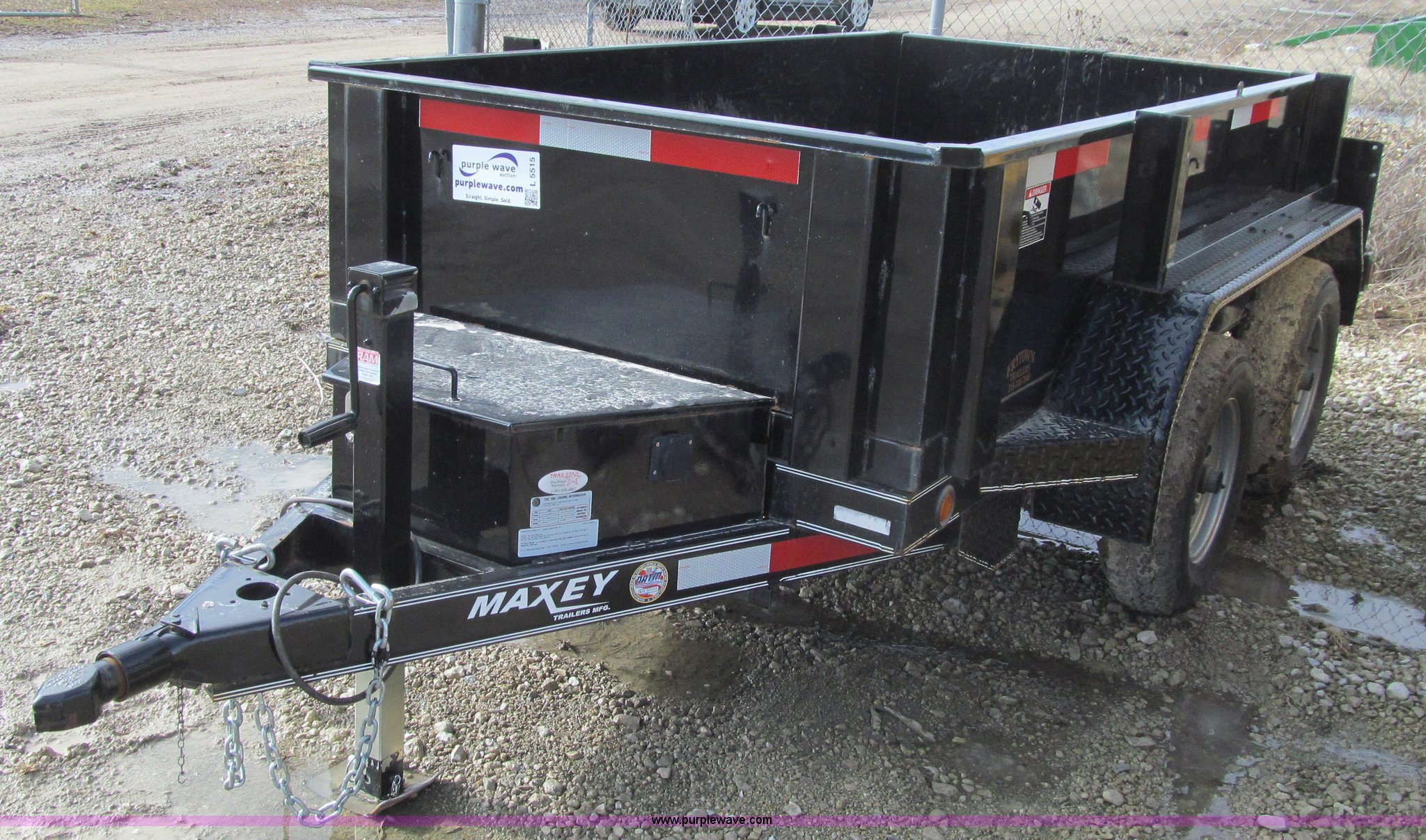 Purple Wave is selling a used End Dump Rock Trailer in Iowa. This item is a 2013 Maxey end dump trailer with the following: 96"L x 50"W dump bed, Internal lash rings, Rear bi-fold gate, Electric/hydraulic dump, Control cord, Battery charger, 2" ball hitch, Safety chains, Tongue jack, Spring suspension, Tandem axle, ST175/80D13 tires, GVWR 4,000 lbs, GAWR 2,000 lbs, Unused, Previously used as a demo unit
