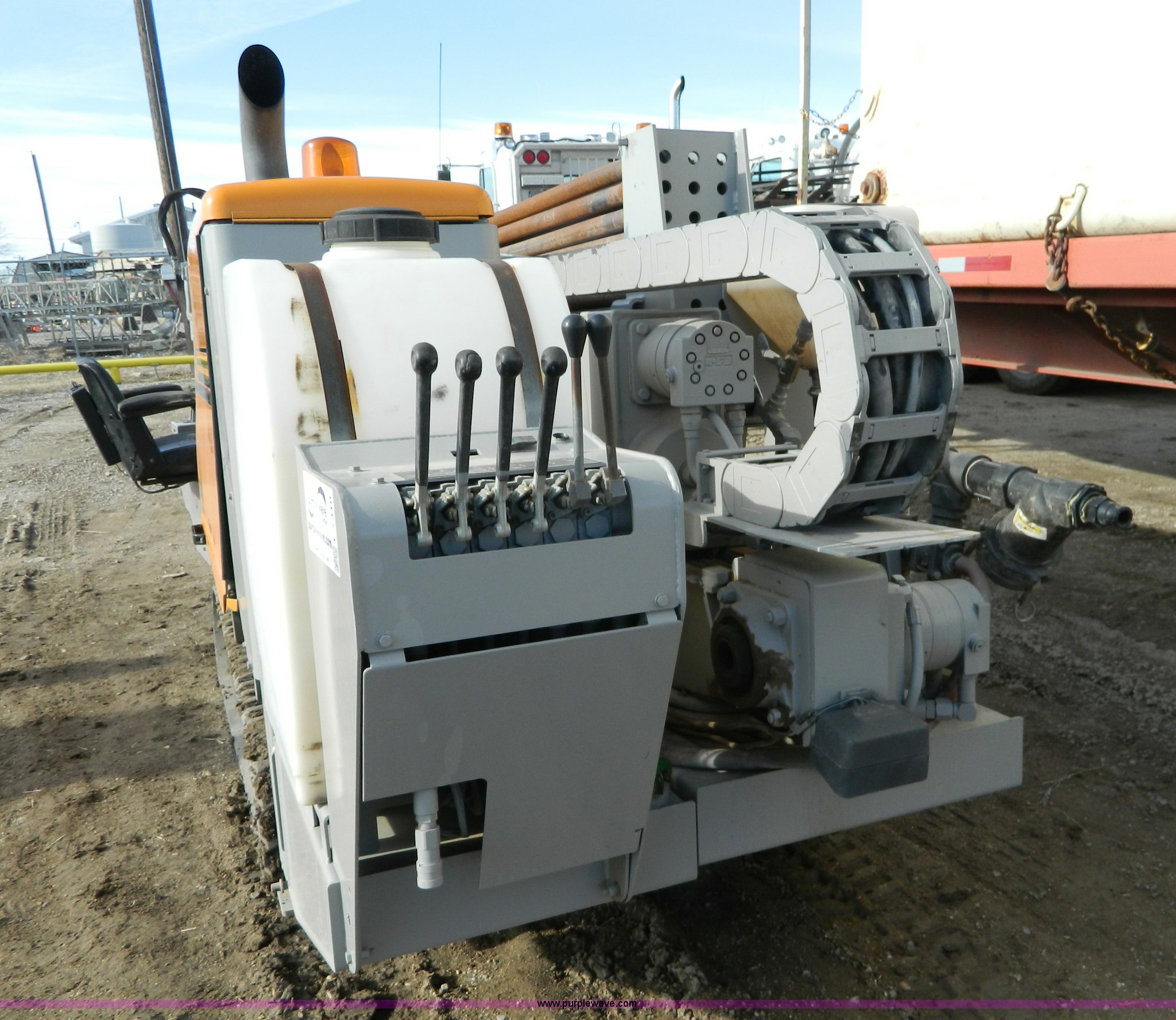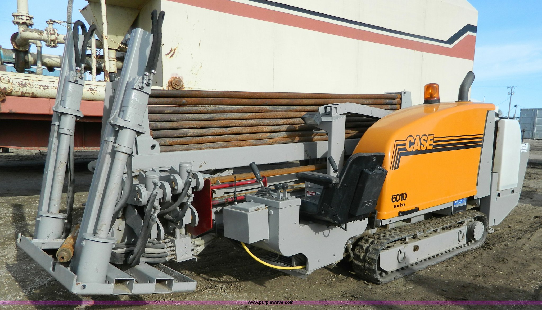 Purple Wave is selling a used Directional Boring Unit in Kansas. This item is a Case 6010 directional drill with the following: 1,535 hours on meter, Kubota four cylinder turbo diesel engine, 59 HP, Hydrostatic transmission, Open operator's station, Ground controls, (4) tie downs, 9" rubber tracks, (34) drill rods, 10'L, Boring head is not included, Serial JAF0311800