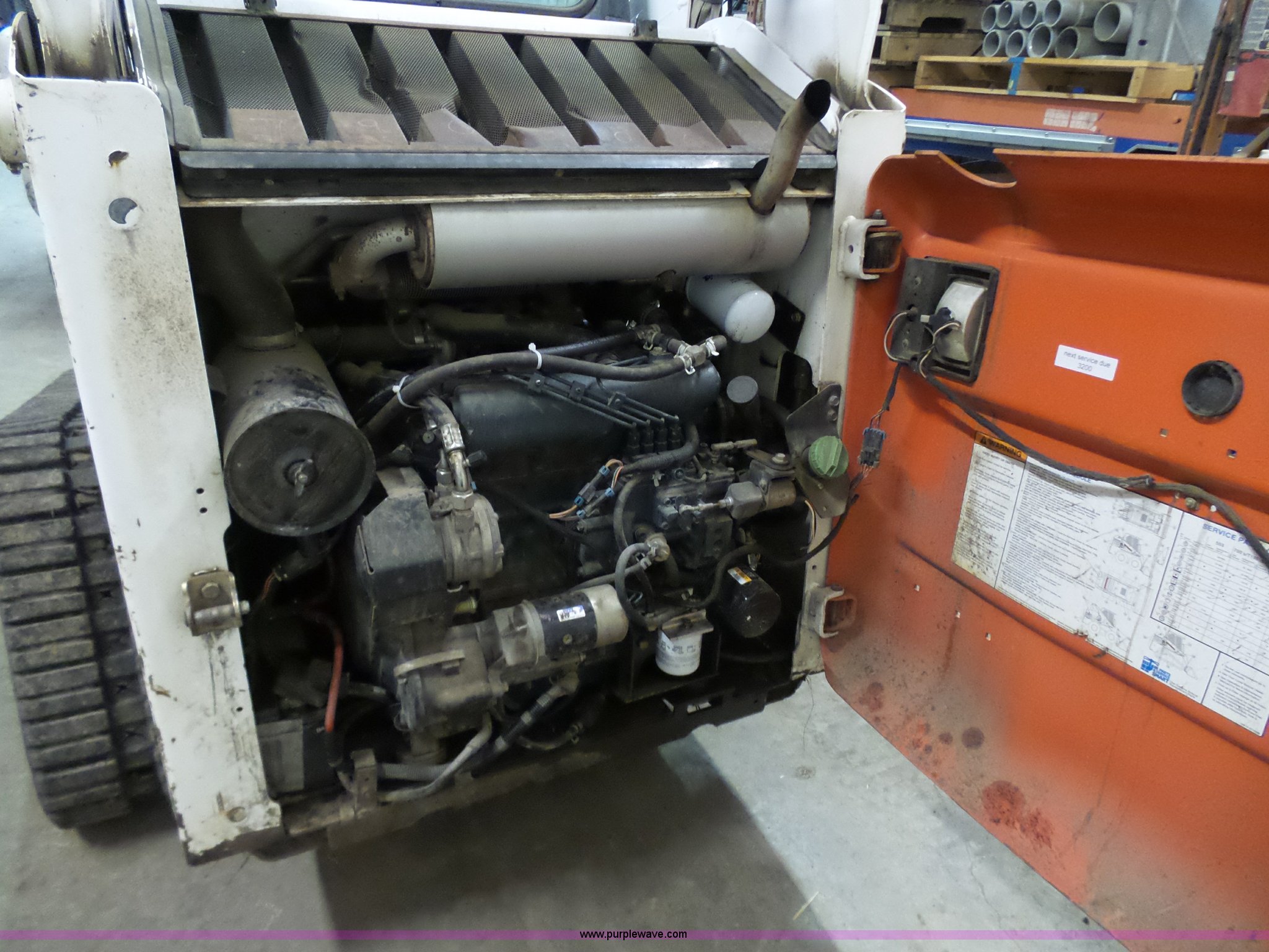 Purple Wave is selling a used Tracked Skid Steer Loader in Missouri. This item is a 2001 Bobcat T190 skid steer with the following: 2,811 hours on meter, Hours may vary, unit is still in use, Kubota V2003-TE 2.0L four cylinder turbo diesel engine, Serial 01L1300, Glow plugs, Two speed hydrostatic transmission, Enclosed cab, AC and heat, Joystick controls, Caterpillar 68"W low profile bucket, Bolt-on cutting edge, High flow auxiliary hydraulics, Front work lights, Three bottom rollers, 12"W tracks, 7,775 lbs. base operating weight, Recently replaced blower motor, Recently serviced, Service records available upon request, Serial 519311803