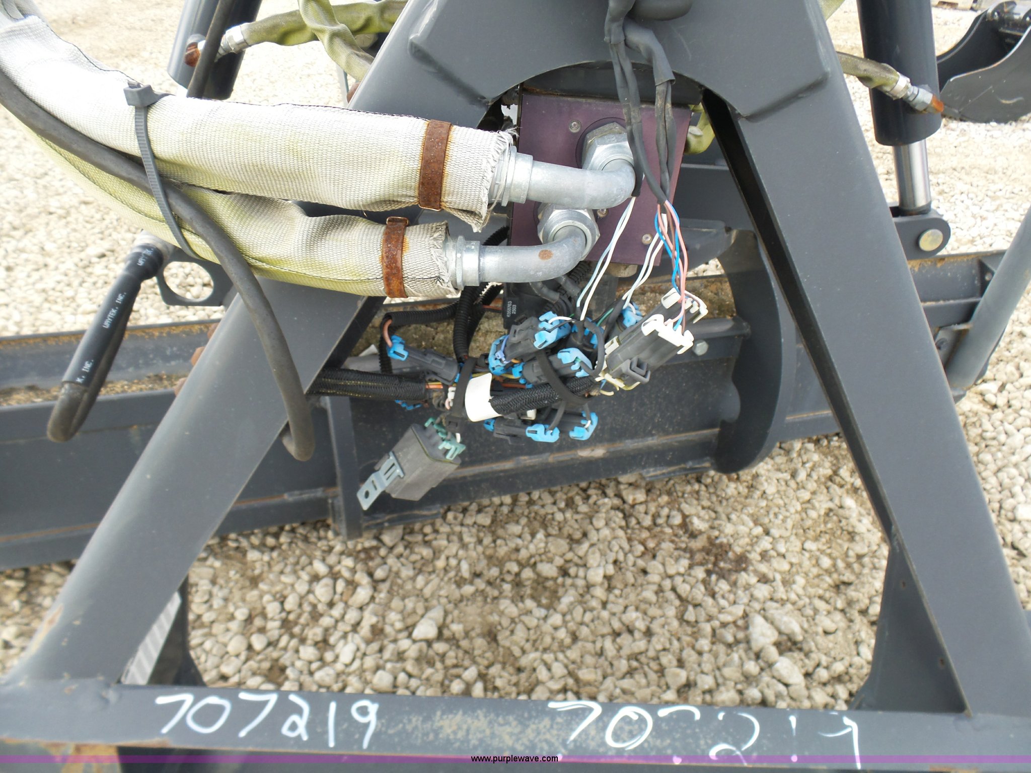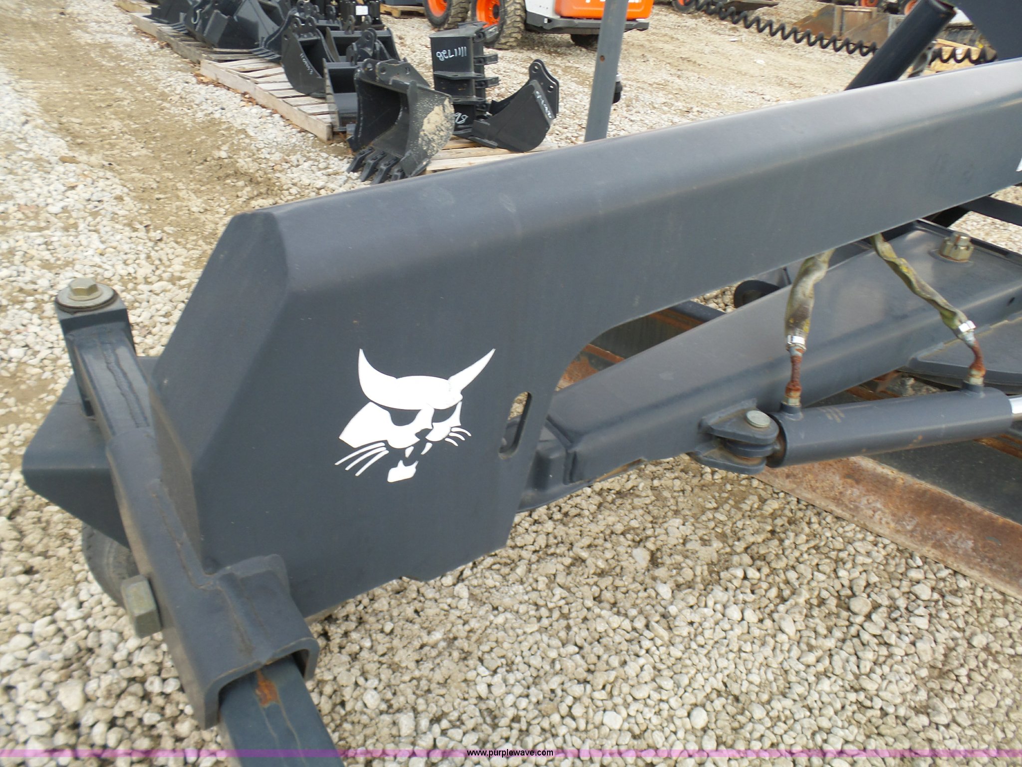 Purple Wave is selling a used Skid Steer Attach. in Missouri. This item is a Bobcat skid steer grader with the following: 7'W bolt-on cutting edge, Hydraulic angle and tilt adjustment, Laser, Receivers, Serial 64800530, Unit# 707219