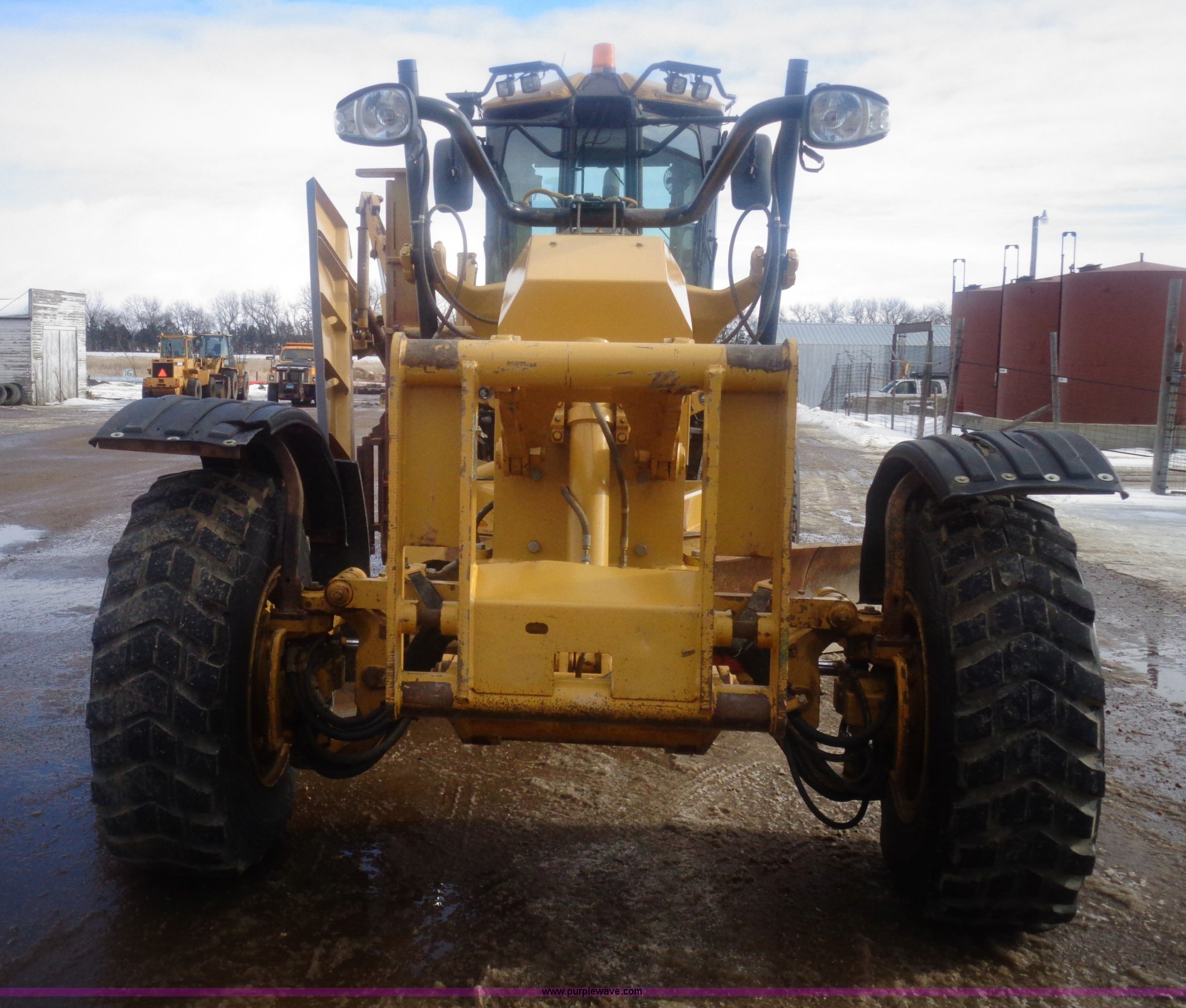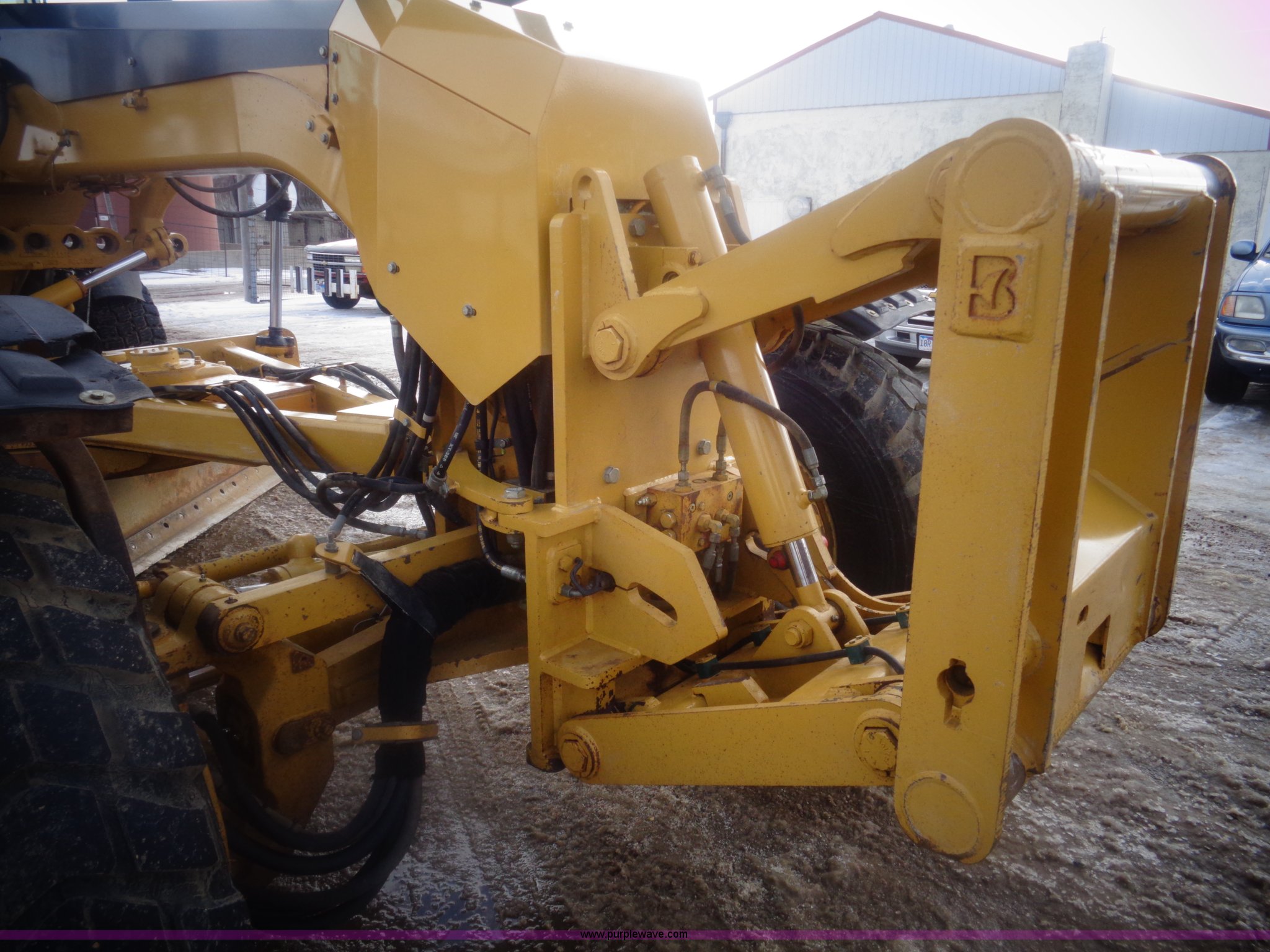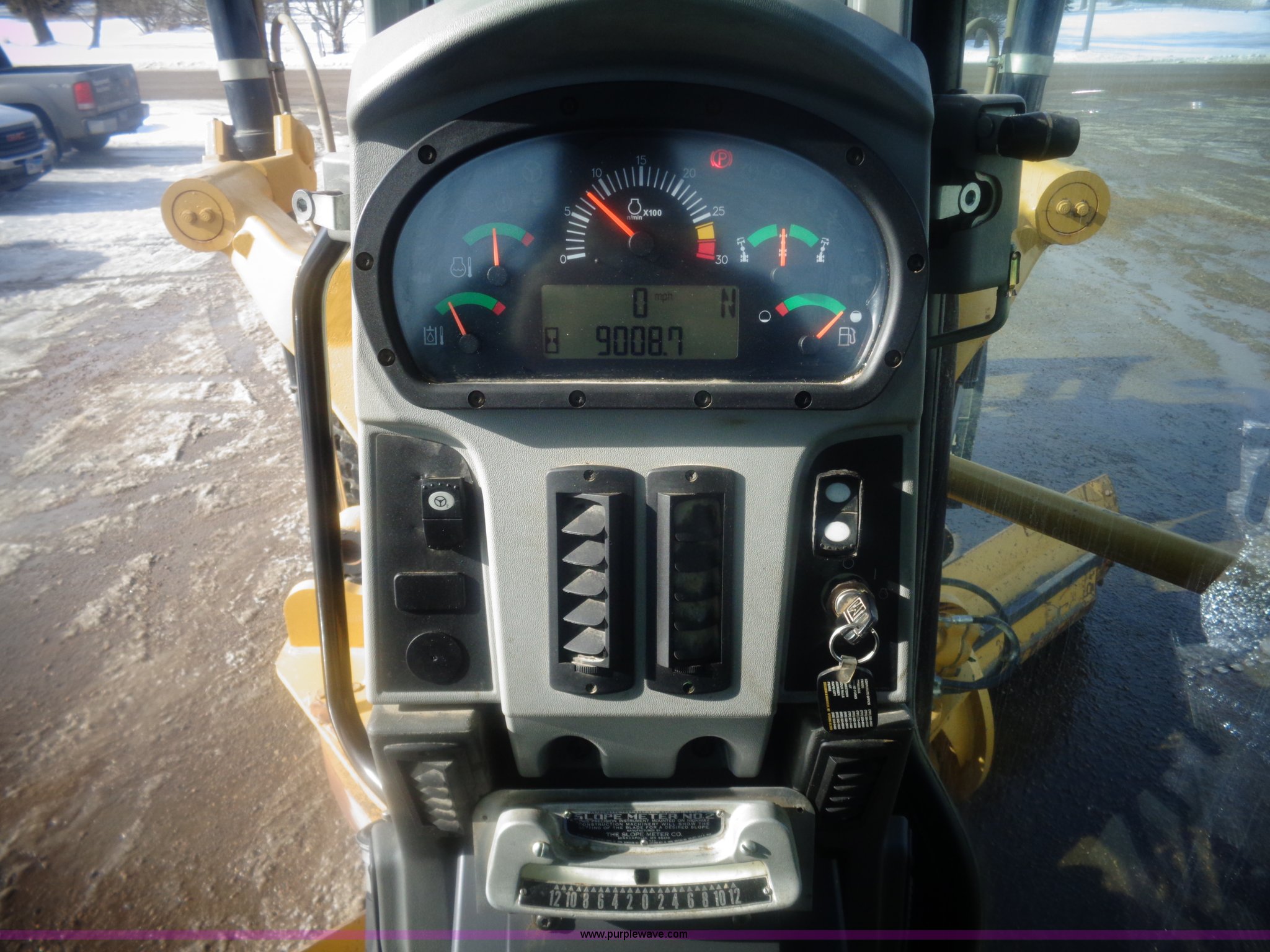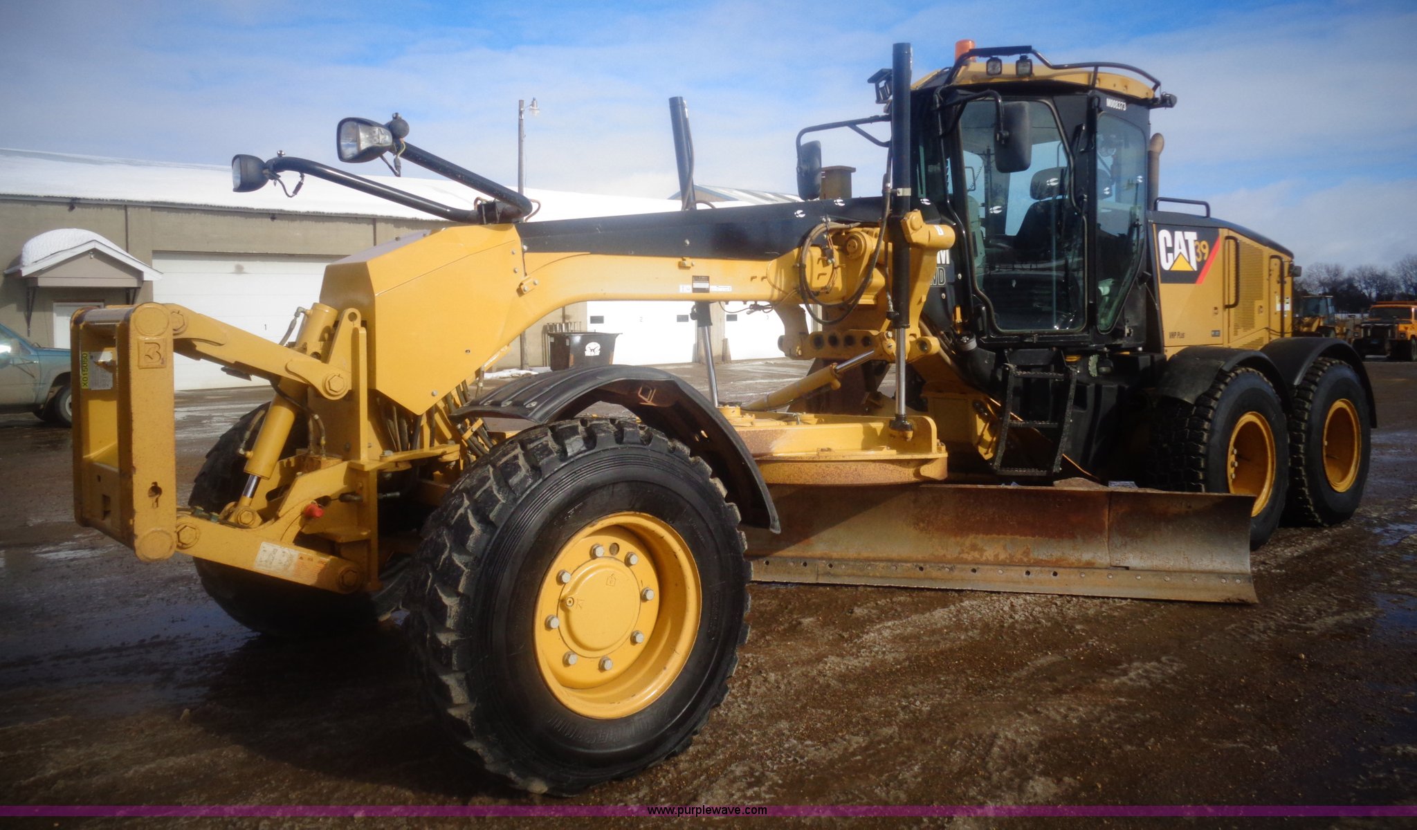 Purple Wave is selling a used Motor Grader in South Dakota. This item is a 2009 Caterpillar 140M motor grader with the following: 9,009 hours on meter, Caterpillar C7 six cylinder diesel engine, Serial KHX14747, Powershift direct drive transmission, 8F gears, All wheel drive, Differential lock, AC and heat, AM/FM, 16' moldboard, Balderson 12' wing blade, Front mounted lift group, Michelin 17.5R25 tires, Serial CAT0140MHB9G00163