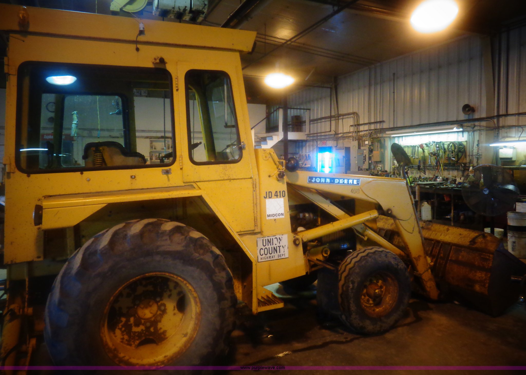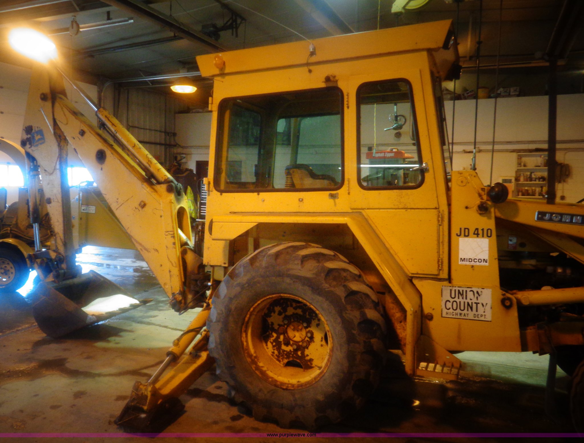 Purple Wave is selling a used Tractor Loader Backhoe in South Dakota. This item is a 1980 John Deere 410 backhoe with the following: 1,673 hours on meter, Diesel engine, Shuttle shift transmission, 8F gears, Enclosed cab, Heat, Suspension seat, Wipers, Wobble stick/two stick backhoe controls, Backup alarm, Front and rear work lights, Loader bucket, 1 1/4 cu. yd. capacity, Bolt-on cutting edge, Manual quick coupler, 30"W backhoe bucket, (5) teeth, 48"W smooth backhoe bucket, Front counterweights, Goodyear F3 front tires, Goodyear 19.5L-24 rear tires, Serial 410-D327944T