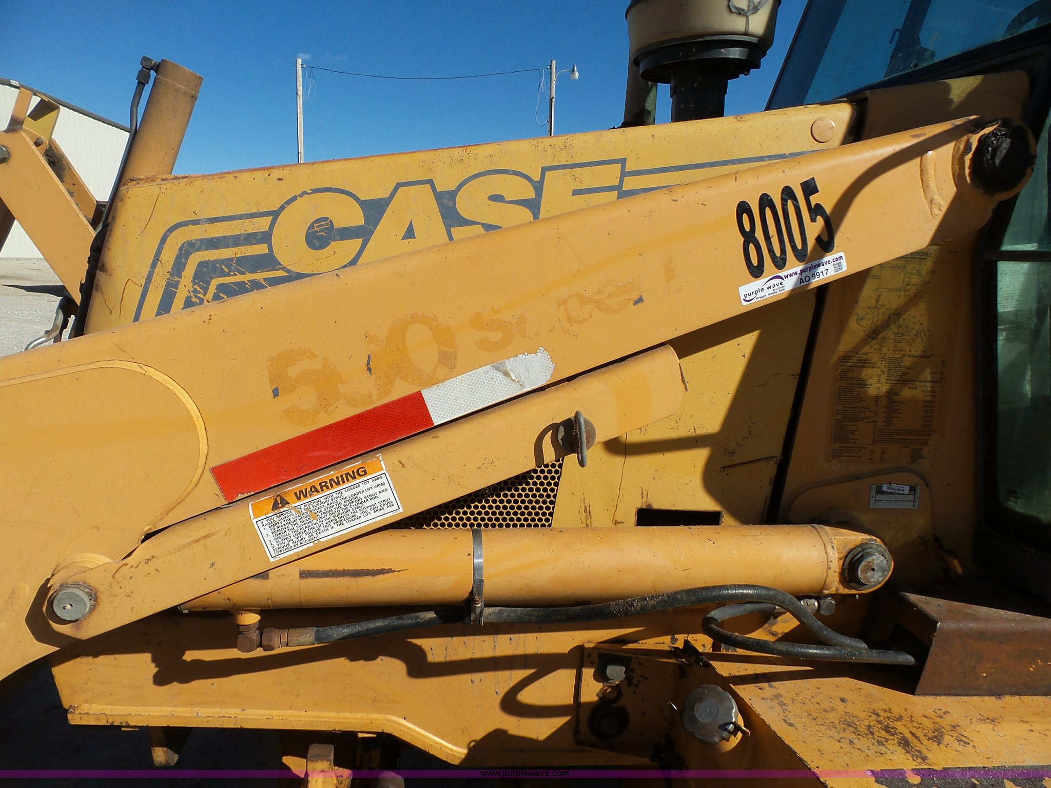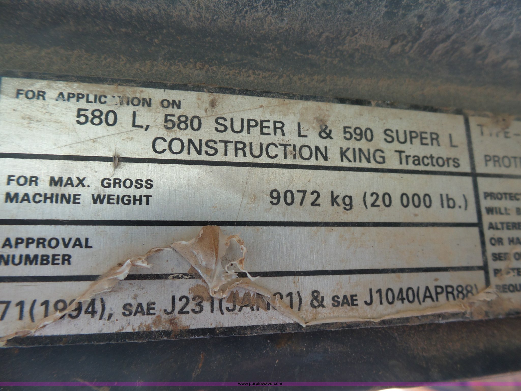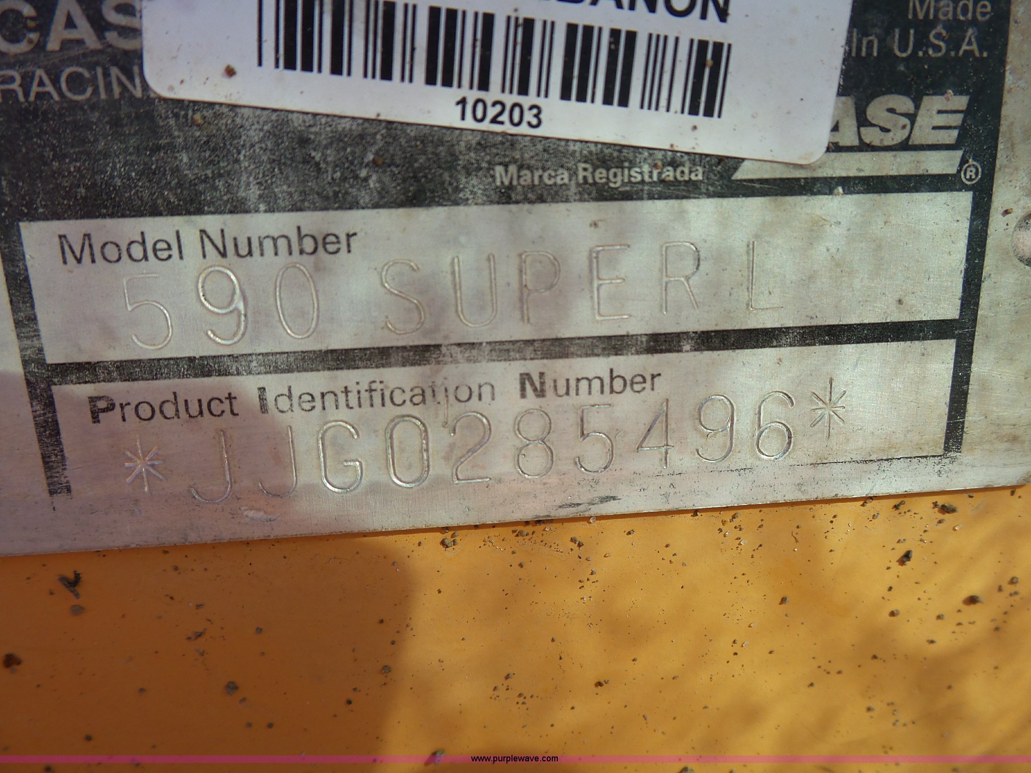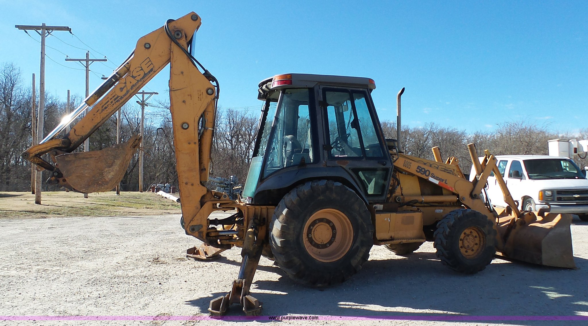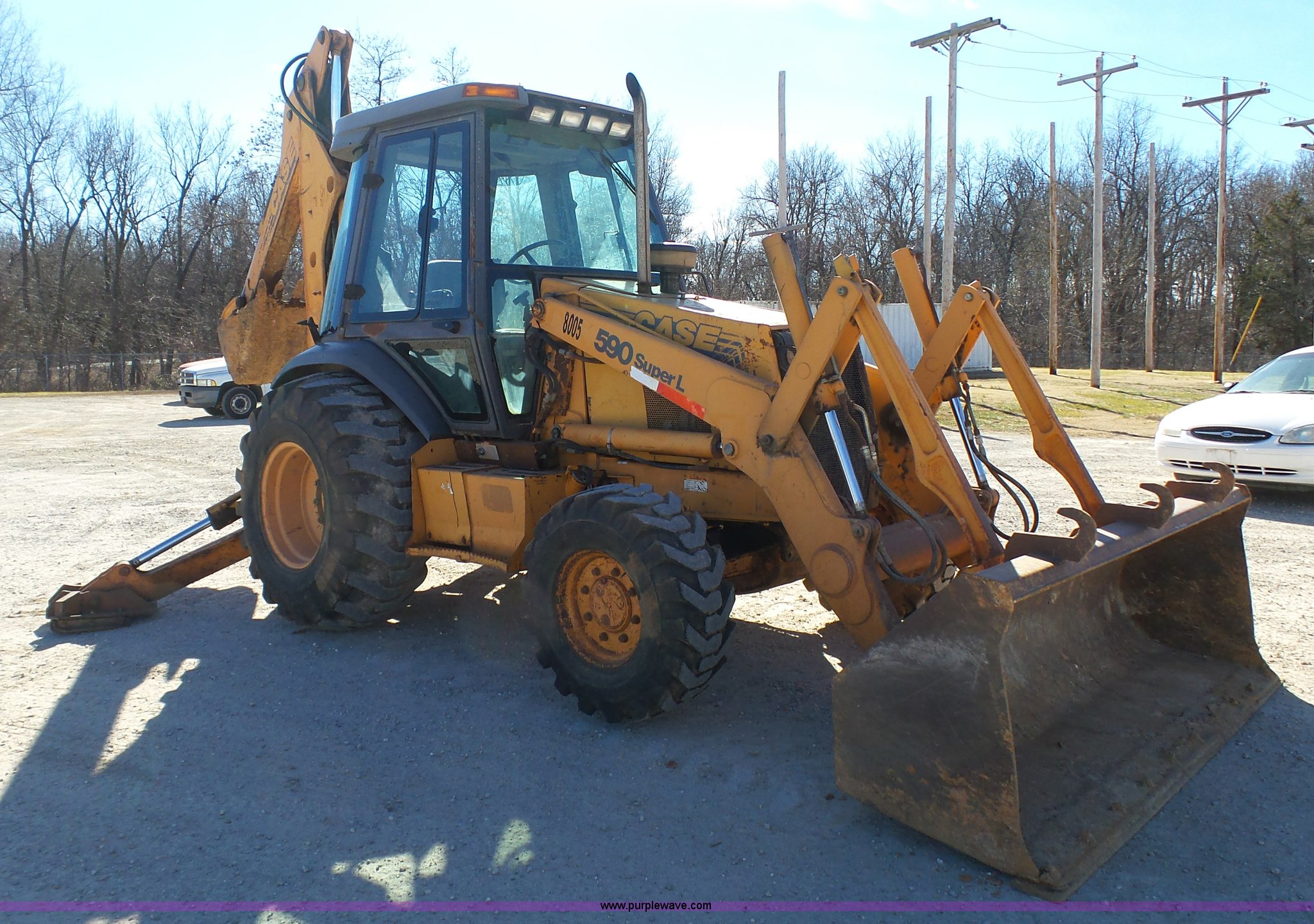 Purple Wave is selling a used Tractor Loader Backhoe in Missouri. This item is a 2000 Case 590 Super L backhoe with the following: 8,239 hours on meter, Cummins four cylinder diesel engine, Shuttle shift transmission, 4F-4R gears, Four wheel drive, Differential lock, EROPS, Serial JABU169304, Spring suspension, Wipers, Front and rear work lights, Block heater, Manual quick coupler, 92"W loader bucket, Bolt-on cutting edge, Bucket leveler, Return to dig, Auxiliary hydrualics, 24"W backhoe bucket, (5) teeth, Street/dirt pads, Armour/Samson 14-17.5 front tires, Samson 21L-24 rear tires, 15,370 lbs. base operating weight, Interior/exterior cosmetic damage, Boom swing cylinder leak, Bucket cylinder leaks, Stick has been welded, Serial JJG0285496