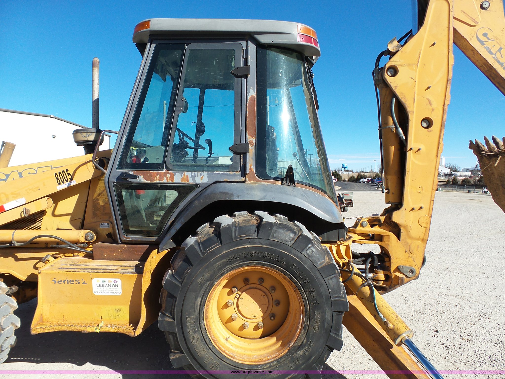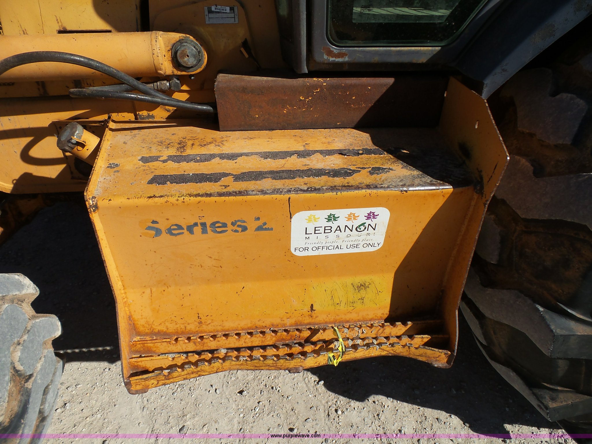 2000 Case 590 Super L backhoe. 8,239 hours on meter, Cummins four cylinder diesel engine, Shuttle shift transmission 4F-4R gears, Four wheel drive, Differential lock, EROPS Serial JABU169304, Spring suspension, Wipers, Front and rear work lights, Block heater, Manual quick coupler, 92"W loader bucket Bolt-on cutting edge, Bucket leveler, Return to dig, Auxiliary hydrualics, 24"W backhoe bucket (5) teeth, Street/dirt pads, Armour/Samson 14-17.5 front tires, Samson 21L-24 rear tires, 15,370 lbs. base operating weight, Interior/exterior cosmetic damage, Boom swing cylinder leak, Bucket cylinder leaks, Stick has been welded, Serial JJG0285496. View equipment video. City of Lebanon. 1401 West Commercial St. Lebanon, MO 65536