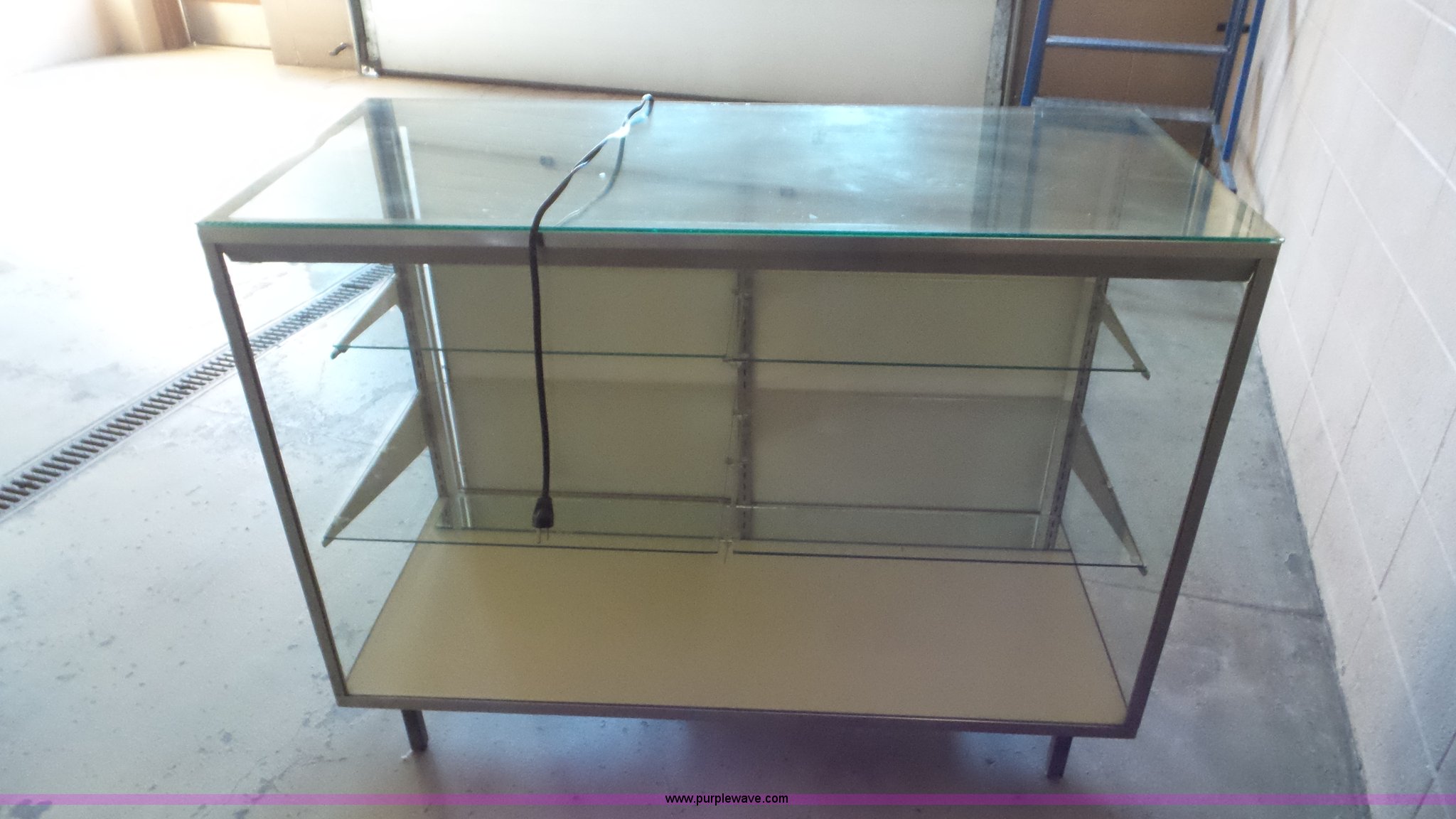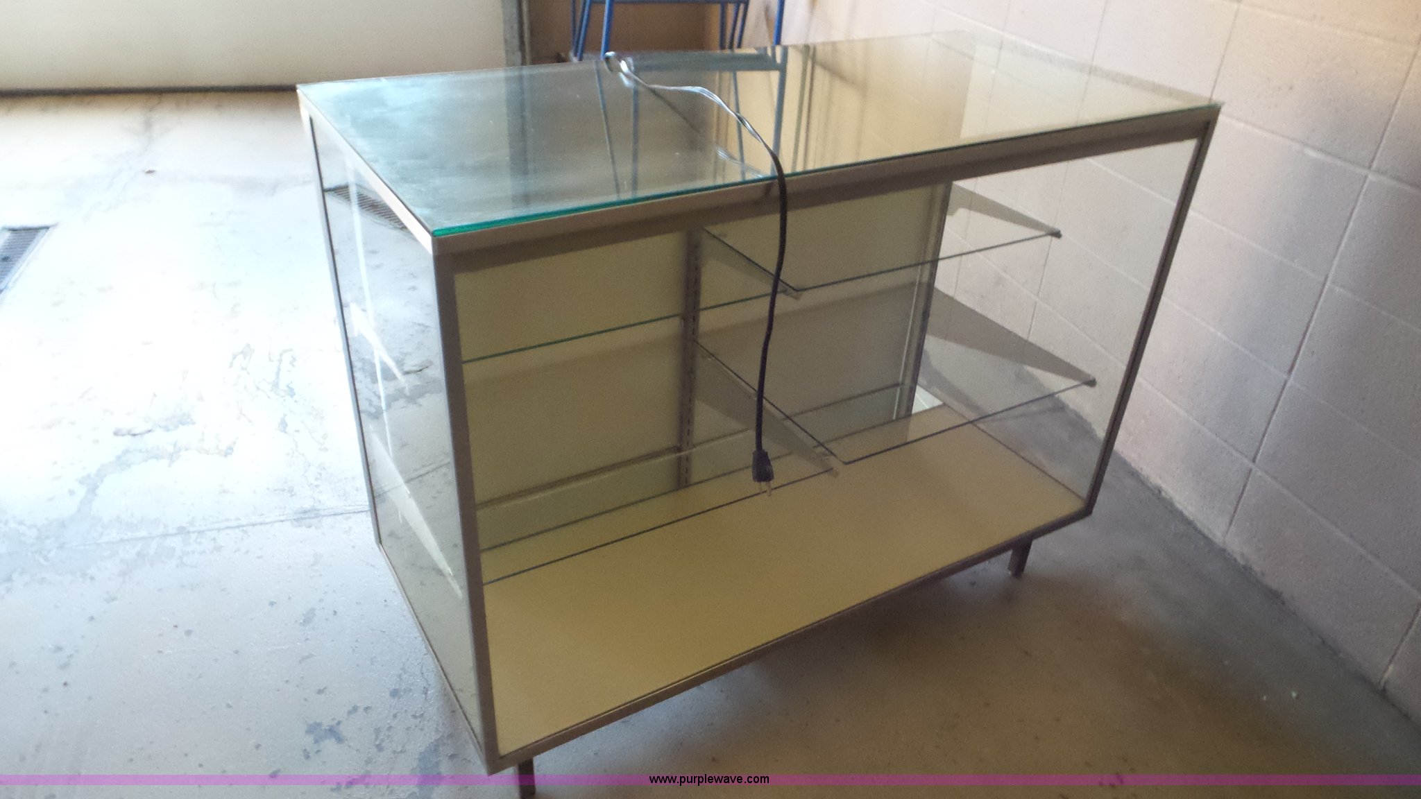 Purple Wave is selling a used Retail Displays in Kansas. This item is a Glass display cabinet with the following: 4'L x 27"W x 32"H, Lighted