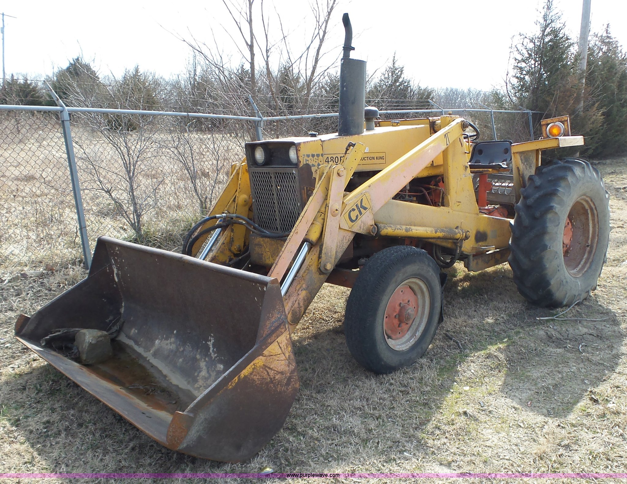 Purple Wave is selling a used Tractor in Kansas. This item is a Case 480B tractor with the following: Three cylinder diesel engine, 8F-2R gears, 14.9-24 tires, Injection pump and transmission are inoperable, Non-operational unit