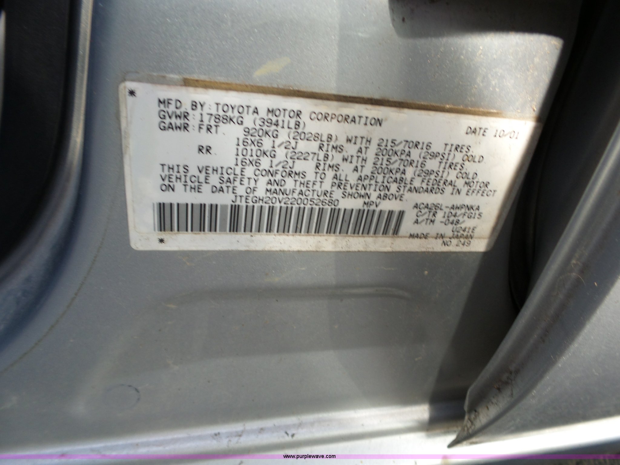 Purple Wave is selling a used Passenger Vehicle in Kansas. This item is a 2002 Toyota RAV4 SUV with the following: 185,845 miles on odometer, 2.0L L4 DOHC 16V gas engine, Automatic transmission, AC and heat, Tilt, AM/FM/CD/cassette, Power windows, locks, and mirrors, Cloth interior, Power sunroof, P215/70R16 tires, Interior/exterior cosmetic damage, Unknown operating condition