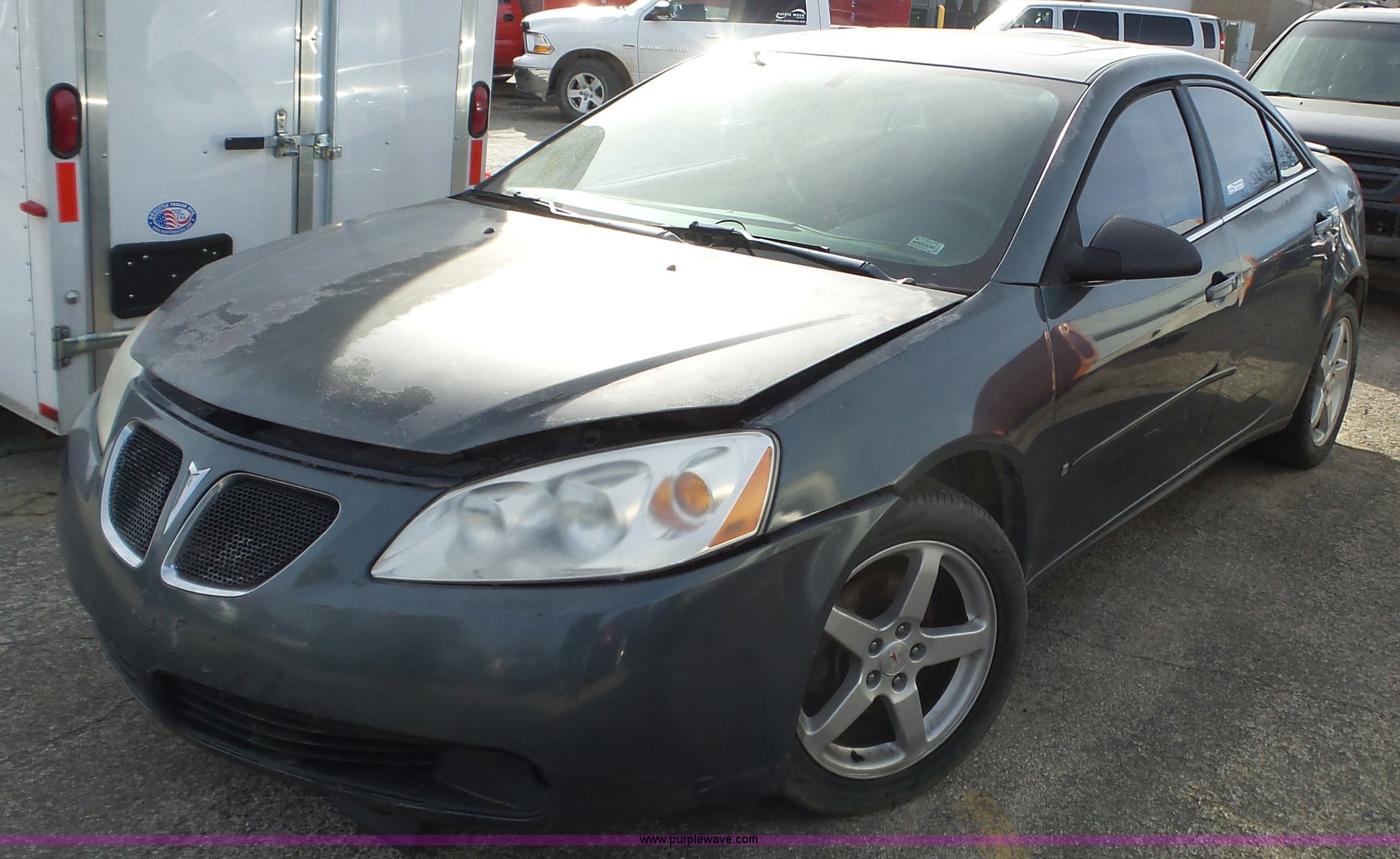 Purple Wave is selling a used Passenger Vehicle in Kansas. This item is a 2006 Pontiac G6 with the following: 131,031 miles on odometer, Actual mileage unknown, 3.5L V6 OHV 12V gas engine, Automatic transmission, AC and heat, Tilt, Cruise, AM/FM/CD, Power windows, locks, and mirrors, Cloth interior, Power sunroof, 225/50R17 tires, Interior/exterior cosmetic damage, Cracked windshield, Unknown operating condition