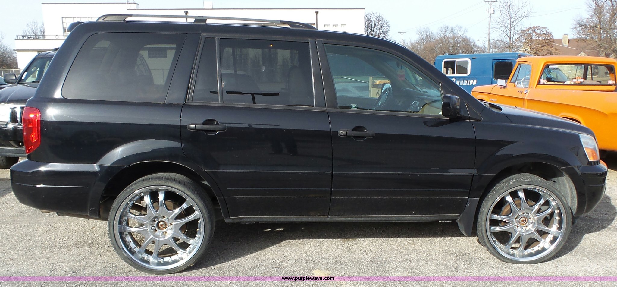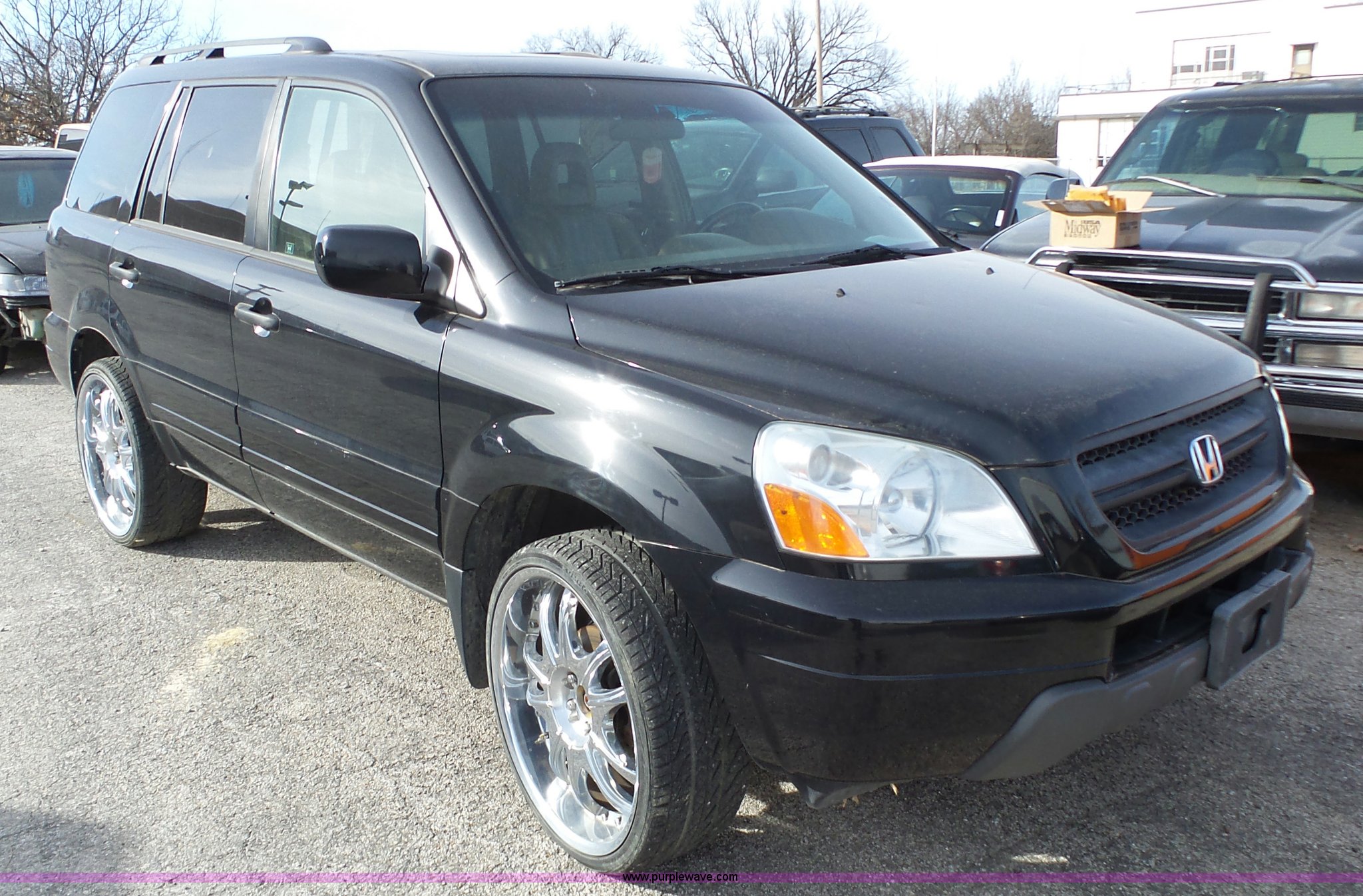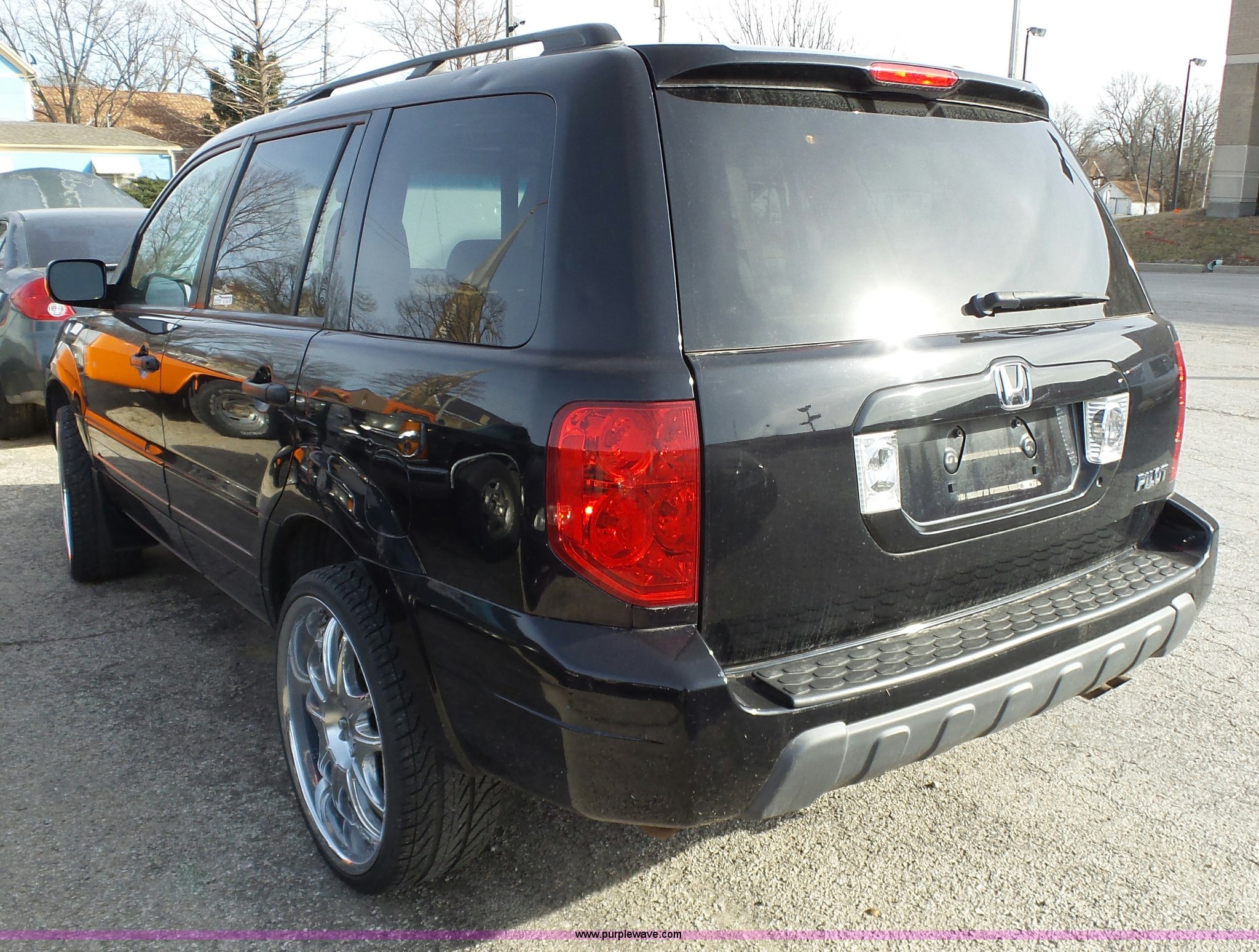 Purple Wave is selling a used Passenger Vehicle in Kansas. This item is a 2005 Honda Pilot EX SUV with the following: 172,076 miles on odometer, 3.5L V6 SOHC 24V gas engine, Automatic transmission, AC and heat, Tilt, Cruise, AM/FM/CD/cassette, Power windows, locks, mirrors, and seat, Leather interior, Power sunroof, 245/30R22 tires, Interior/exterior cosmetic damage, Unknown operating condition