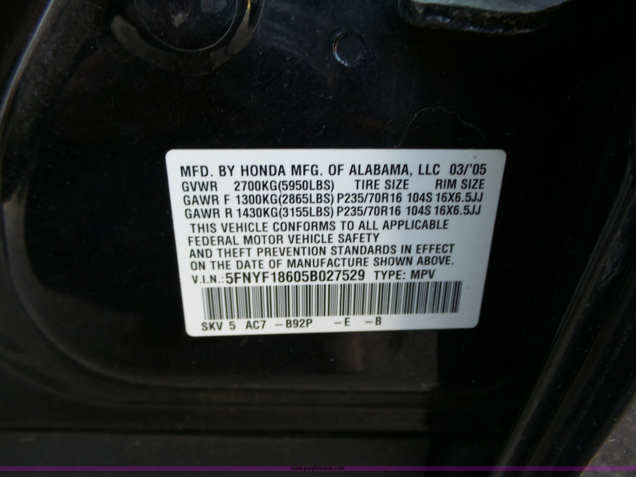 Take a look at this used 2005 Honda Pilot EX SUV being sold on March 1st, 2016 in the SOLD! March 1 Government Auction made by Honda. Take a look at all of the item information below or take a look at similar auctions for Passenger Vehicles.
