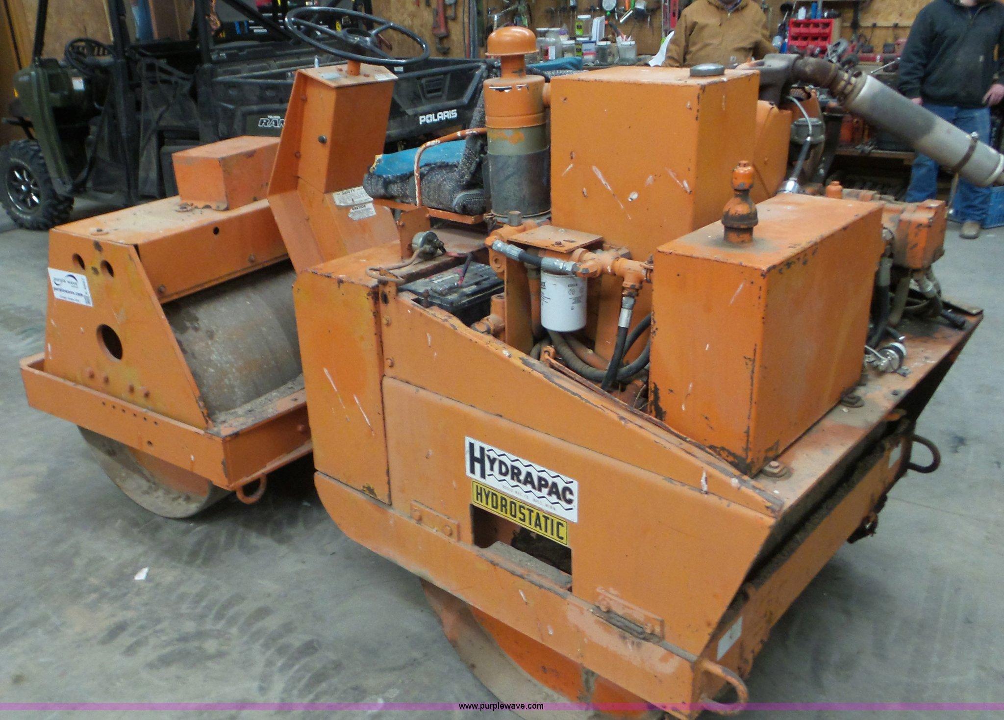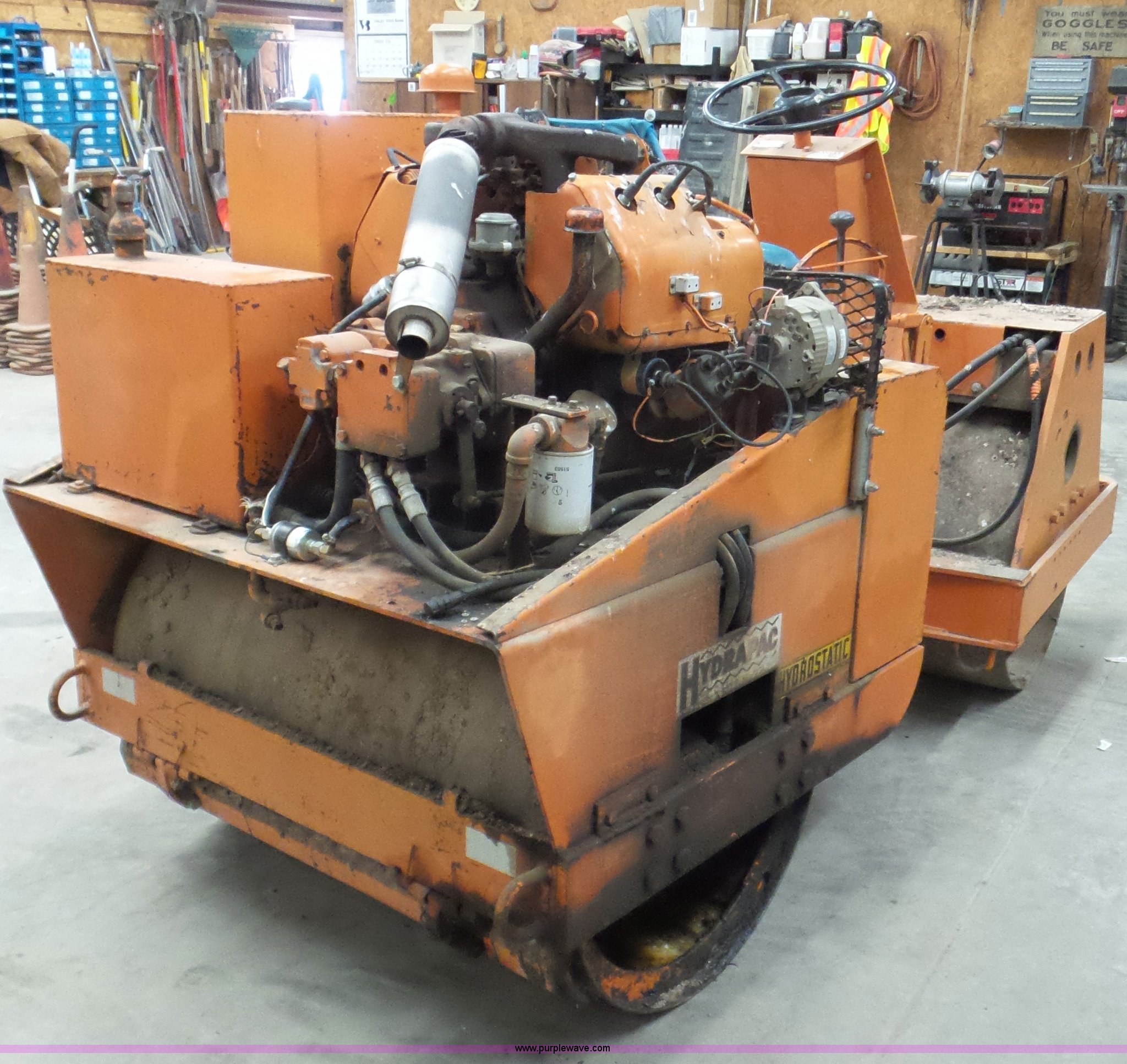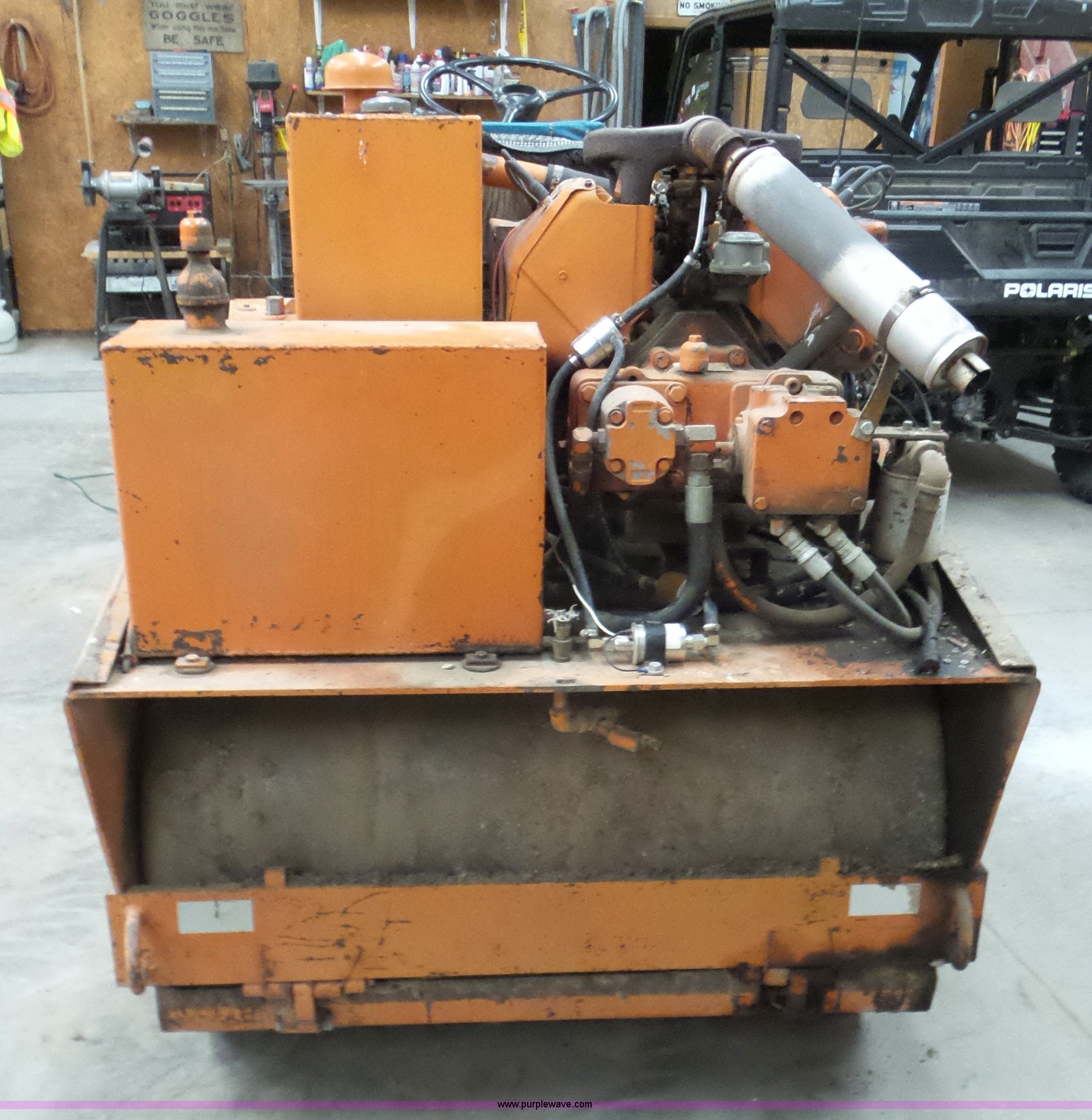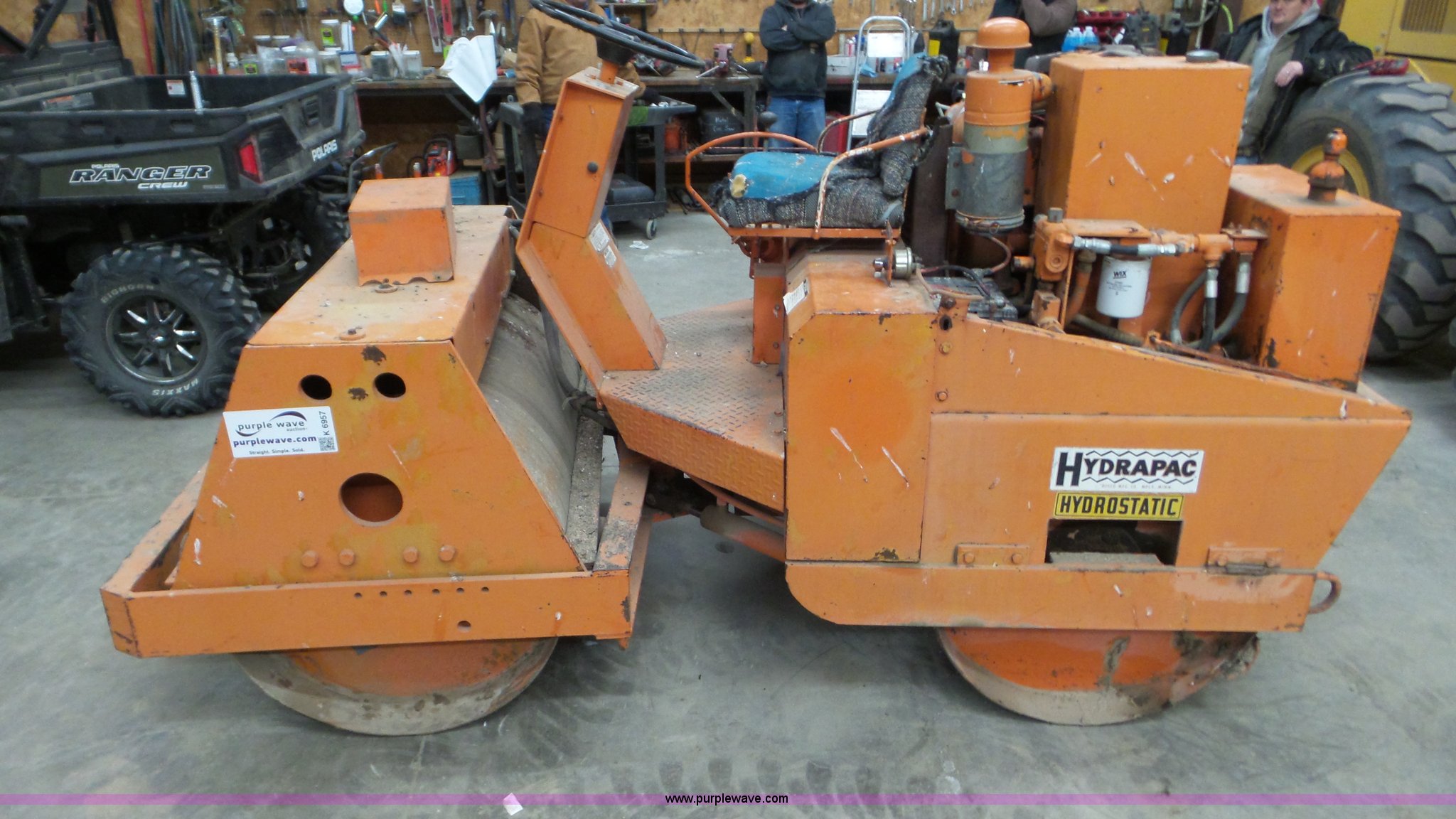 Purple Wave is selling a used Double Drum Roller Compactor in Kansas. This item is a Rosco Hydrapac double drum roller with the following: Wisconsin four cylinder gas engine, Hydrostatic transmission, Suspension seat, 46"W x 30" diameter smooth drums, Front and rear drum scrapers, Serial 652