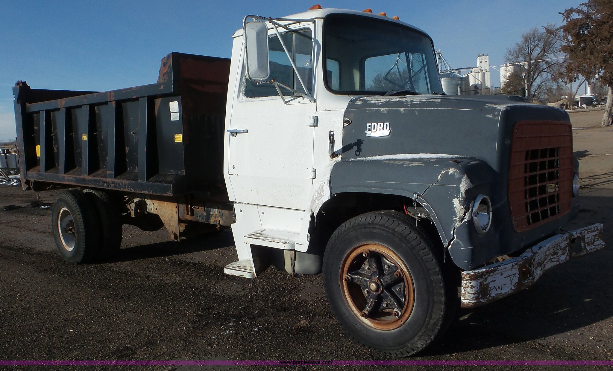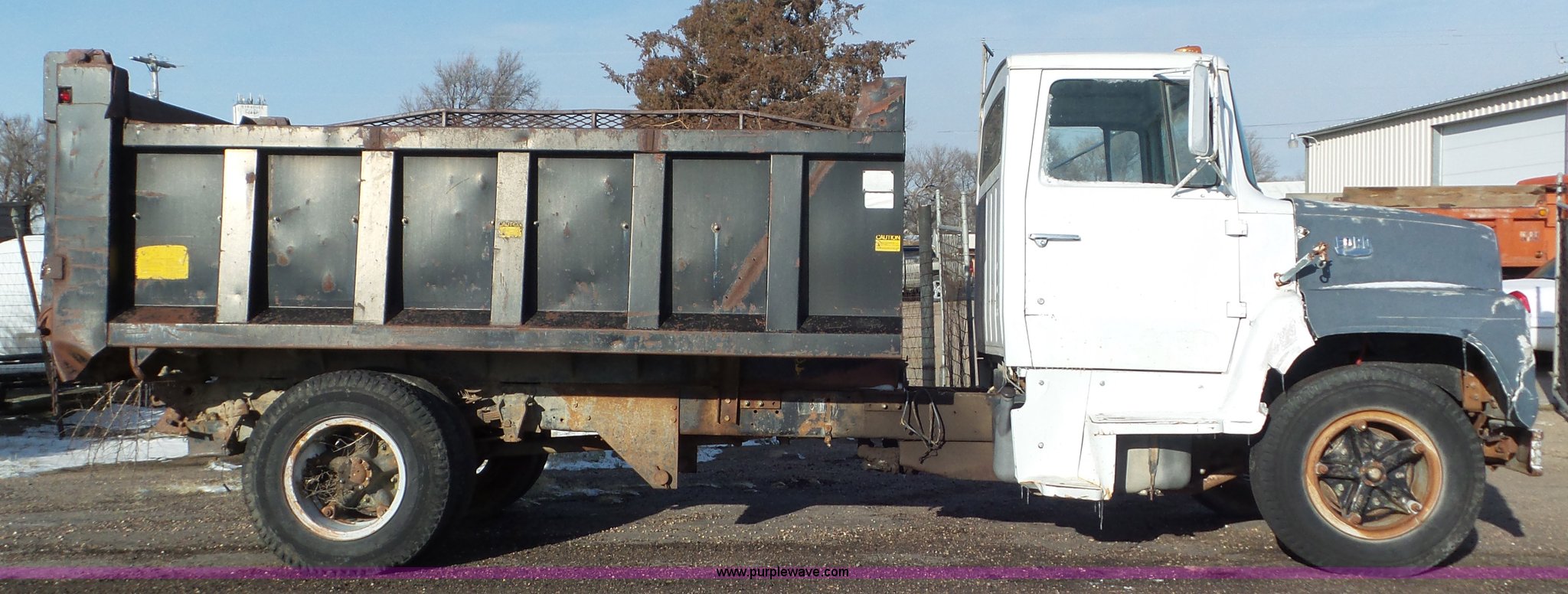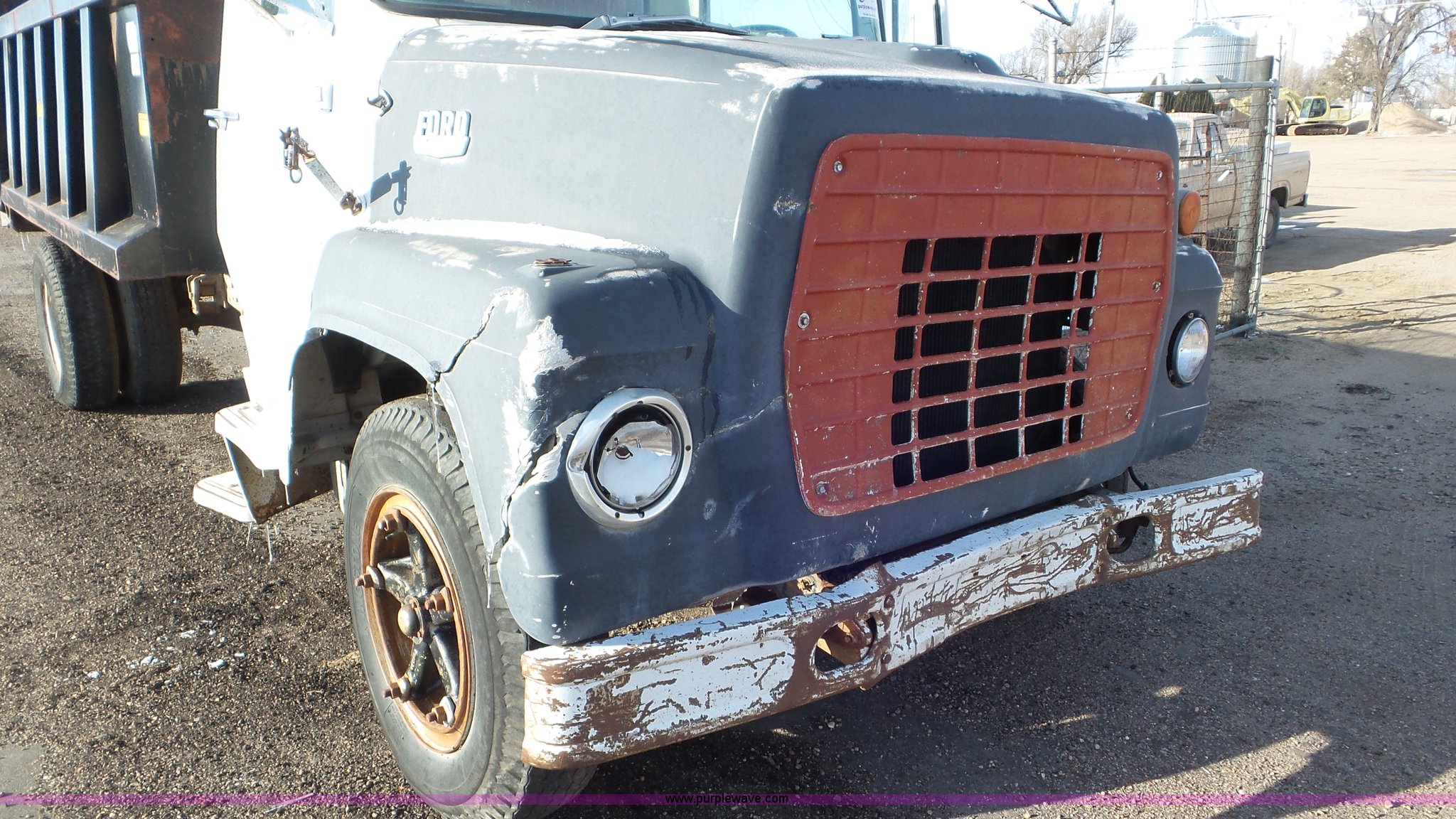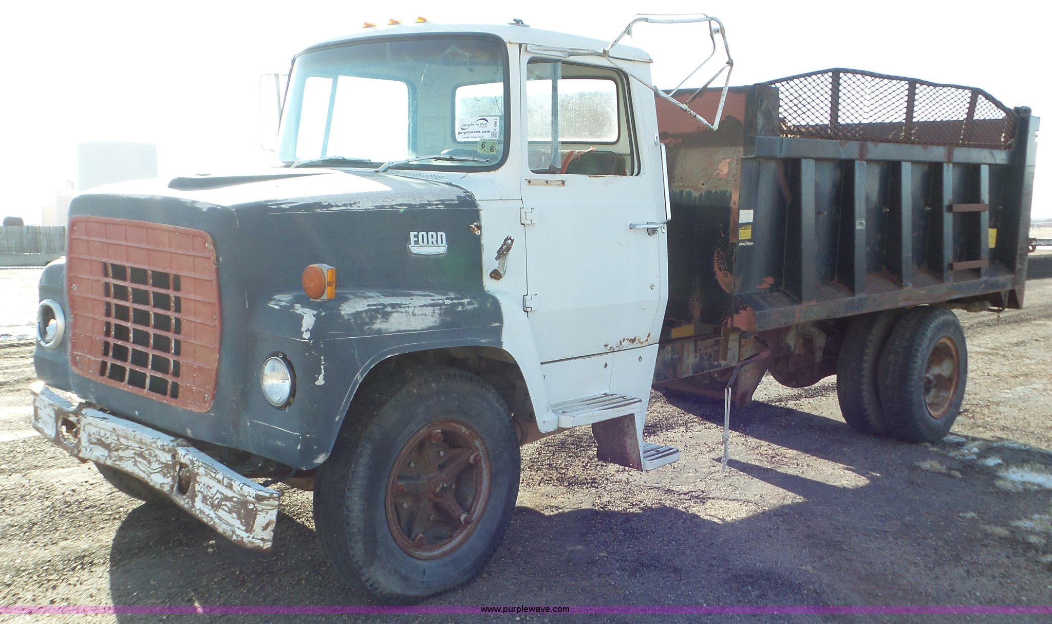 Purple Wave is selling a used Construction Dump Truck in Kansas. This item is a 1972 Ford N605 dump truck with the following: 91,846 miles on odometer, Ford eight cylinder gas engine, Four speed manual transmission, Heat, Spring suspension seat, PTO, Peabody Galion 502-F steel dump bed, 13'L x 8'W, 36" side height, Single ram hoist, Manual operated end gate, Single fuel tank, 186" wheelbase, Spring suspension, Hydraulic brakes, 9.00-20 tires, Non-operational vehicle, Transmission bell housing shattered, Windshield cracked, Interior/exterior cosmetic damage