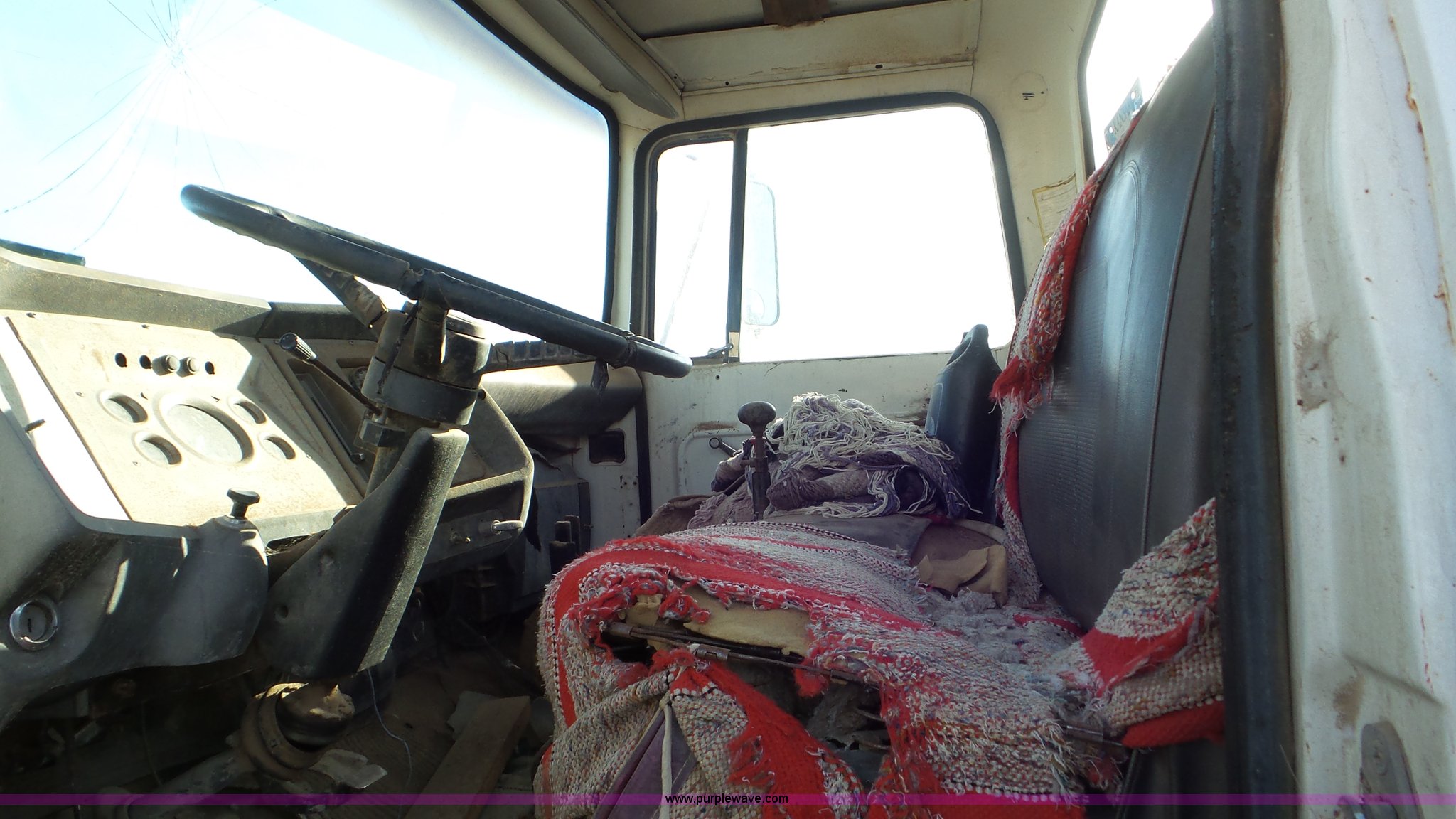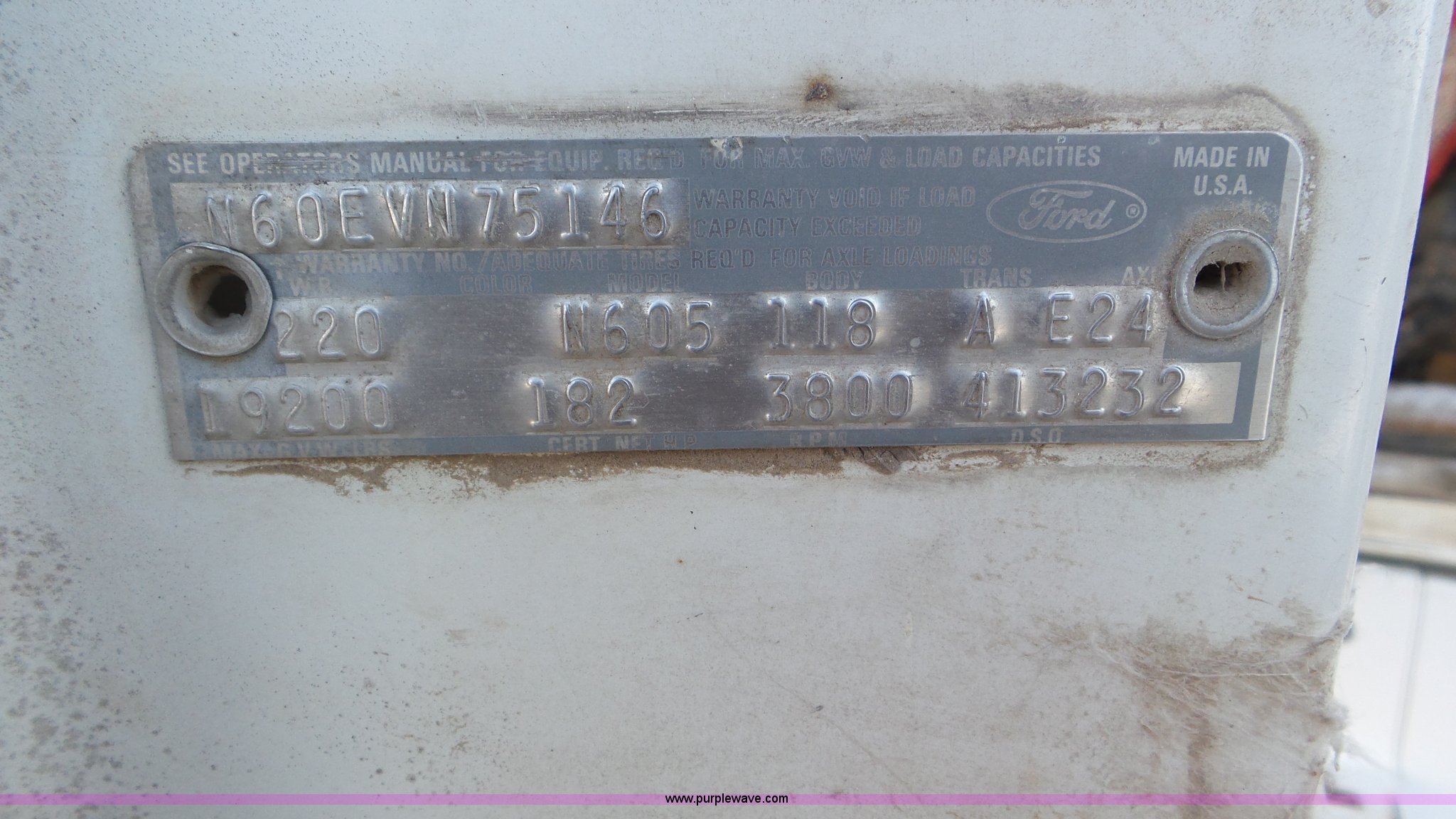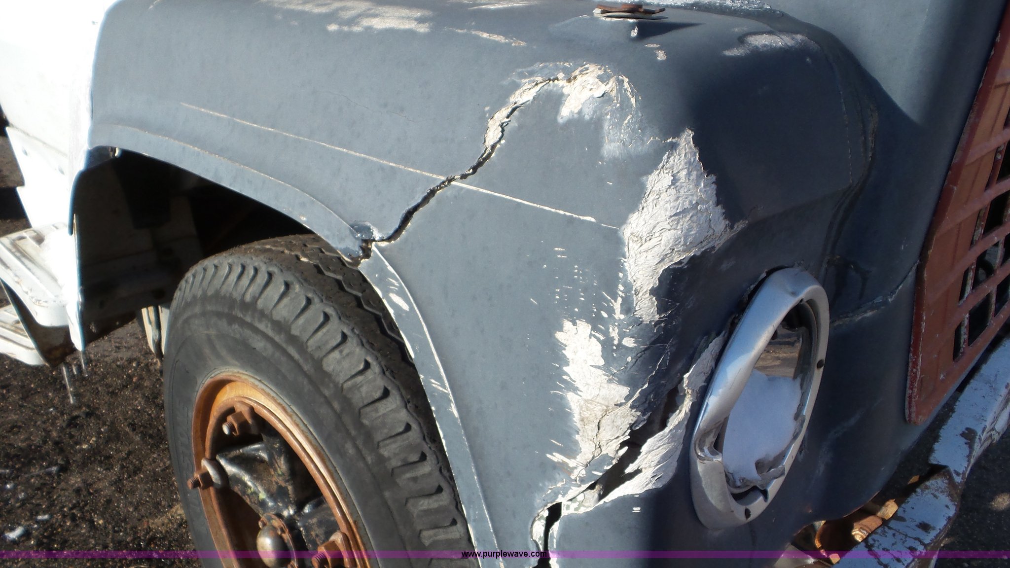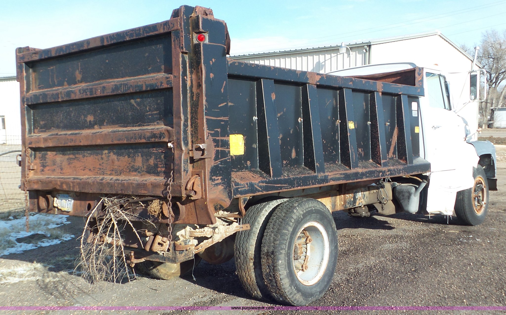 Purple Wave is selling a used Construction Dump Truck in Kansas. This item is a 1972 Ford N605 dump truck with the following: 91,846 miles on odometer, Ford eight cylinder gas engine, Four speed manual transmission, Heat, Spring suspension seat, PTO, Peabody Galion 502-F steel dump bed, 13'L x 8'W, 36" side height, Single ram hoist, Manual operated end gate, Single fuel tank, 186" wheelbase, Spring suspension, Hydraulic brakes, 9.00-20 tires, Non-operational vehicle, Transmission bell housing shattered, Windshield cracked, Interior/exterior cosmetic damage