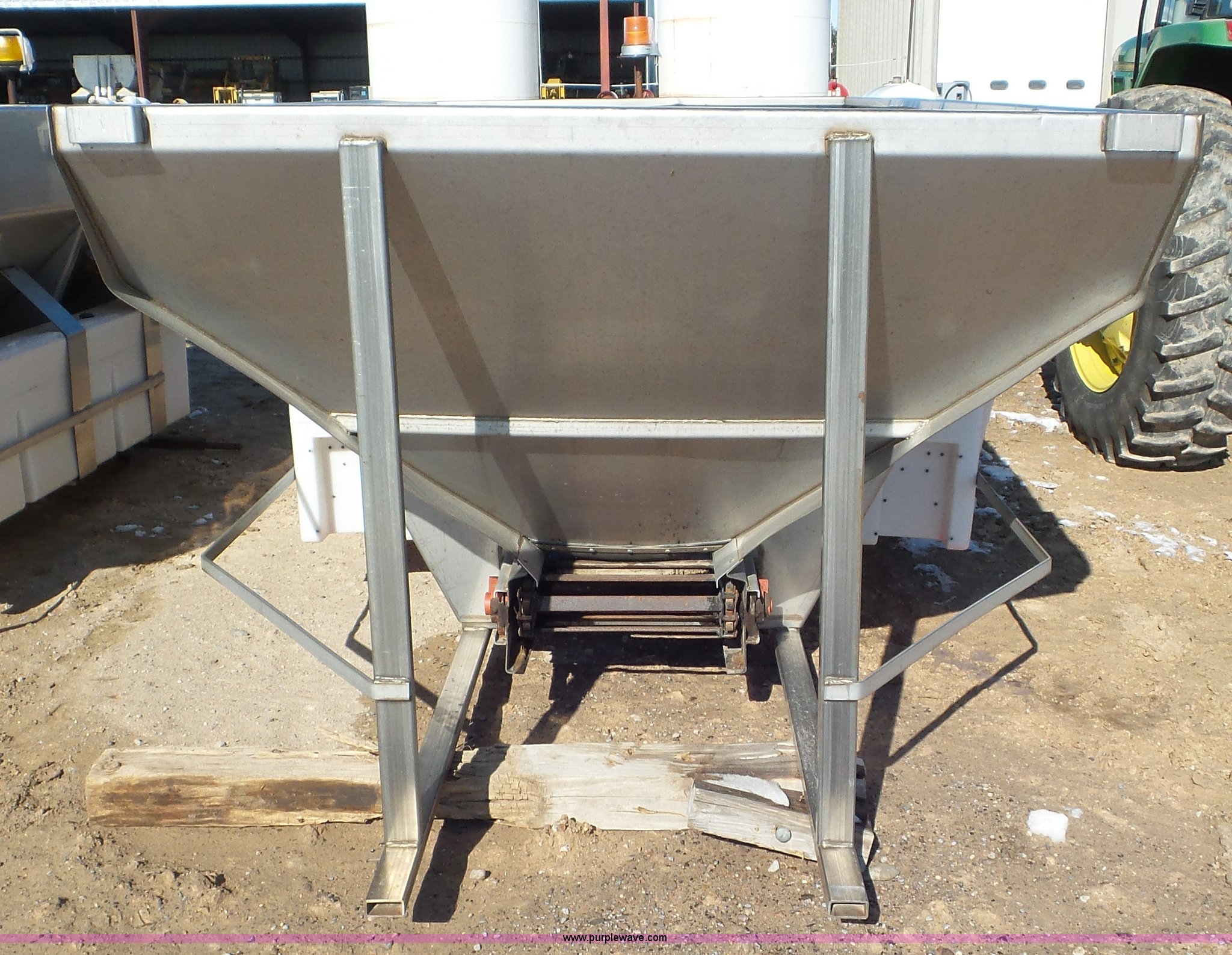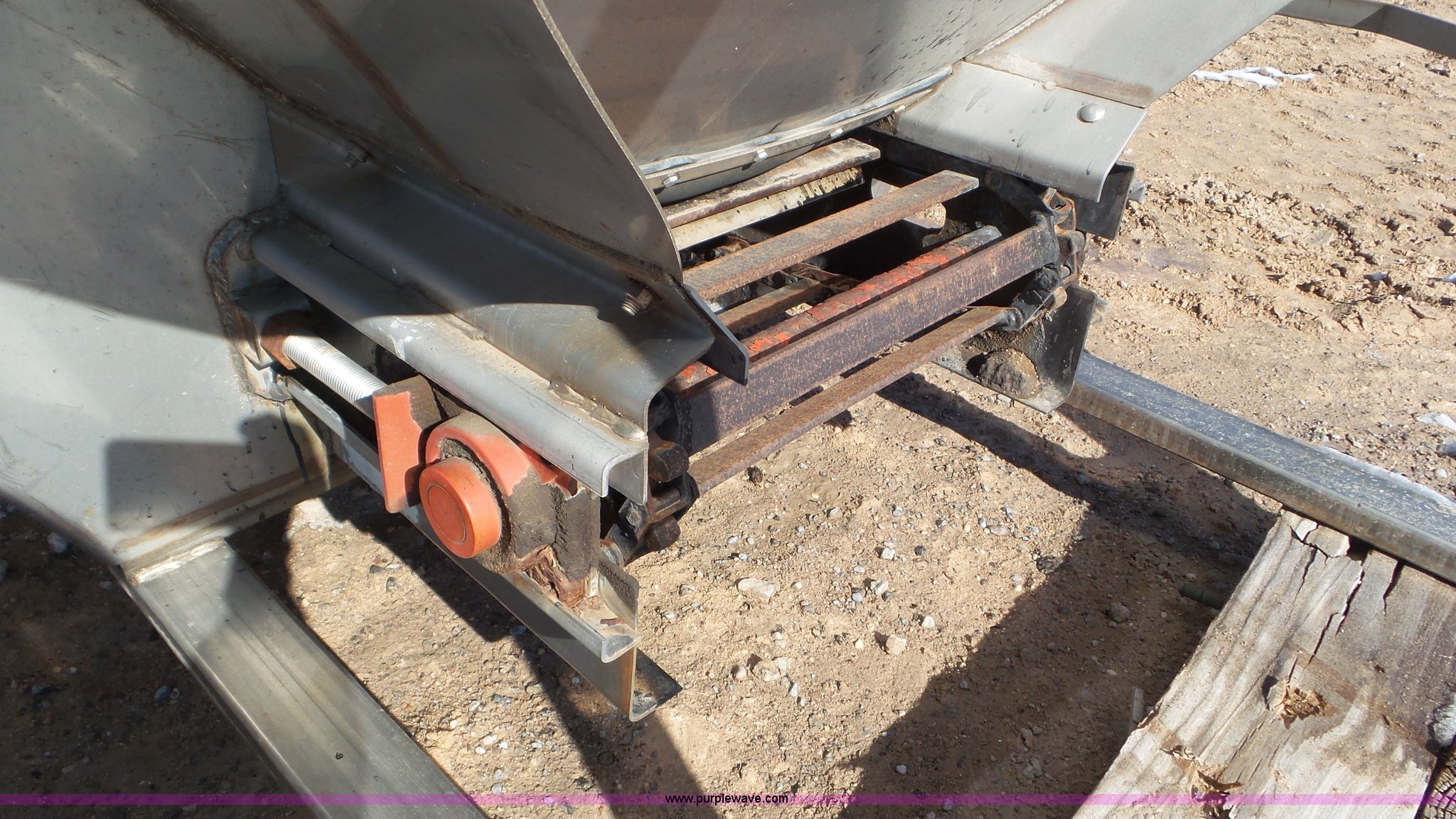 Warren stainless steel salt/sand spreader. Model AC-2420A-15-KDOT, 15'L, 18"W chain conveyor, Single rubber spreader, (2) poly liquid tanks, Hydraulic operation, Serial SC13313. Gray County. 915 N Main. Cimarron, KS 67835