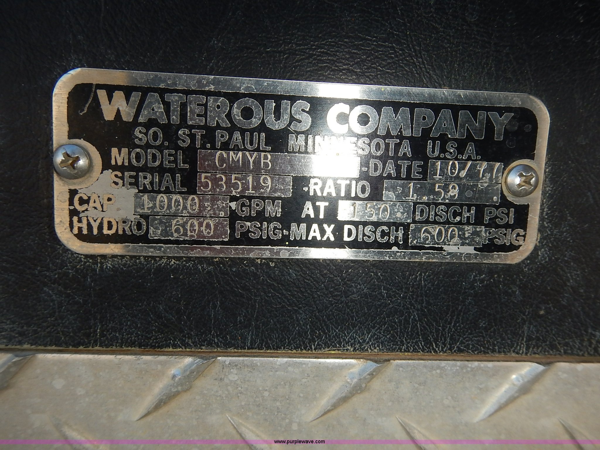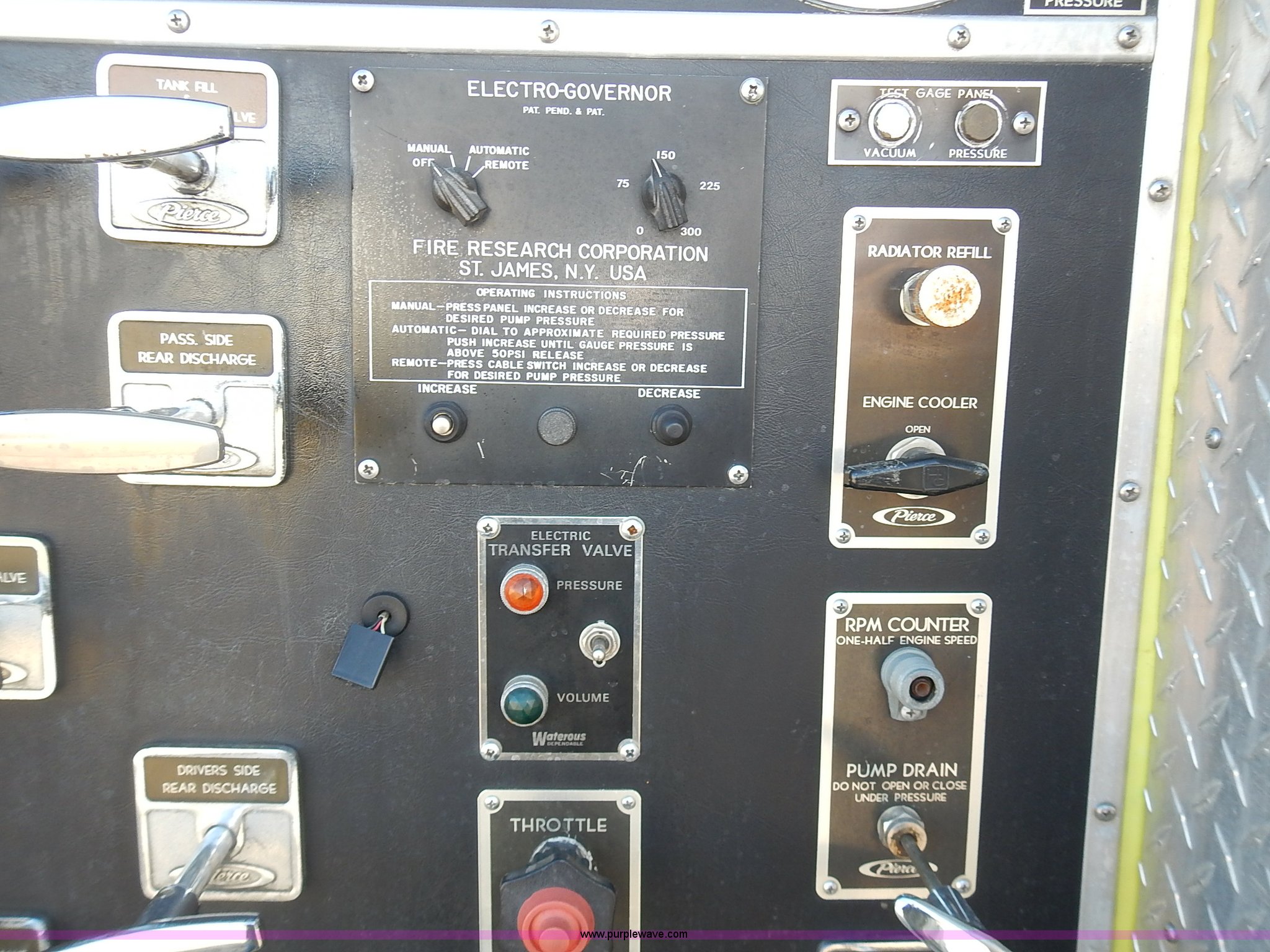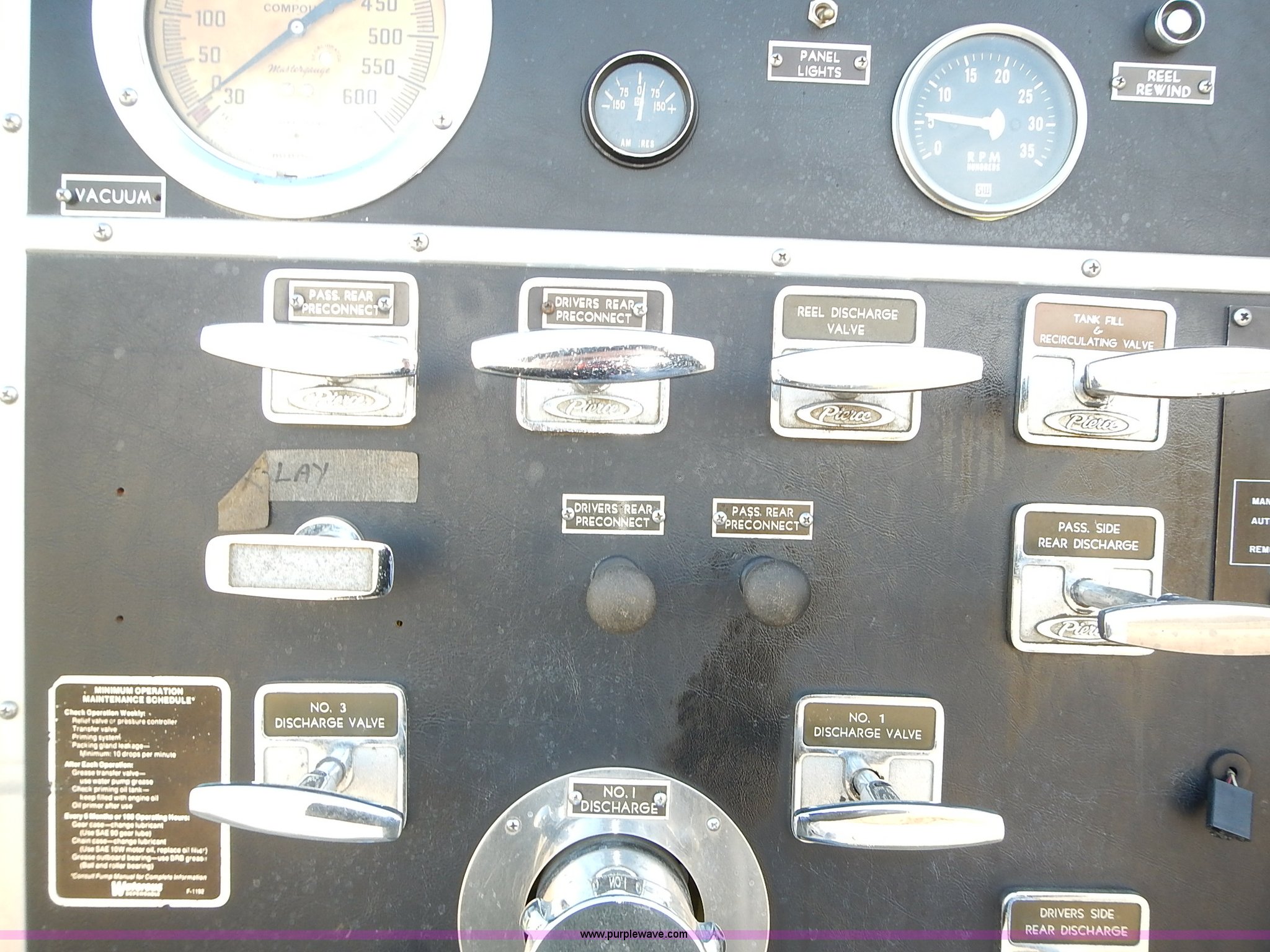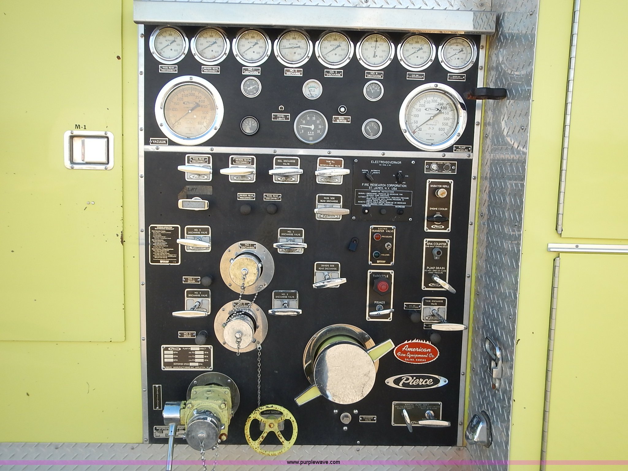Purple Wave is selling a used Fire Truck or Emergency Vehicle in Kansas. This item is a 1978 Pierce Ford 8000 pumper truck with the following: 14,646 miles on odometer, Caterpillar 3208 diesel engine, Allison automatic transmission, Single axle, Heat, Five passenger capacity, (11) exterior compartments, Tower lights, 1,000 gallon per minute pump, Model CMYB, Serial 53519, 6" front outlet, Two stage waterous pump, Electric pump shift, 500 gallon water tank, Approximately 600'L water hose, Federal siren system, Work lights, Electro governor, 175" wheelbase, Air brakes, 11.00-20 tires, Batteries weak, Decals will be removed or painted over prior to auction