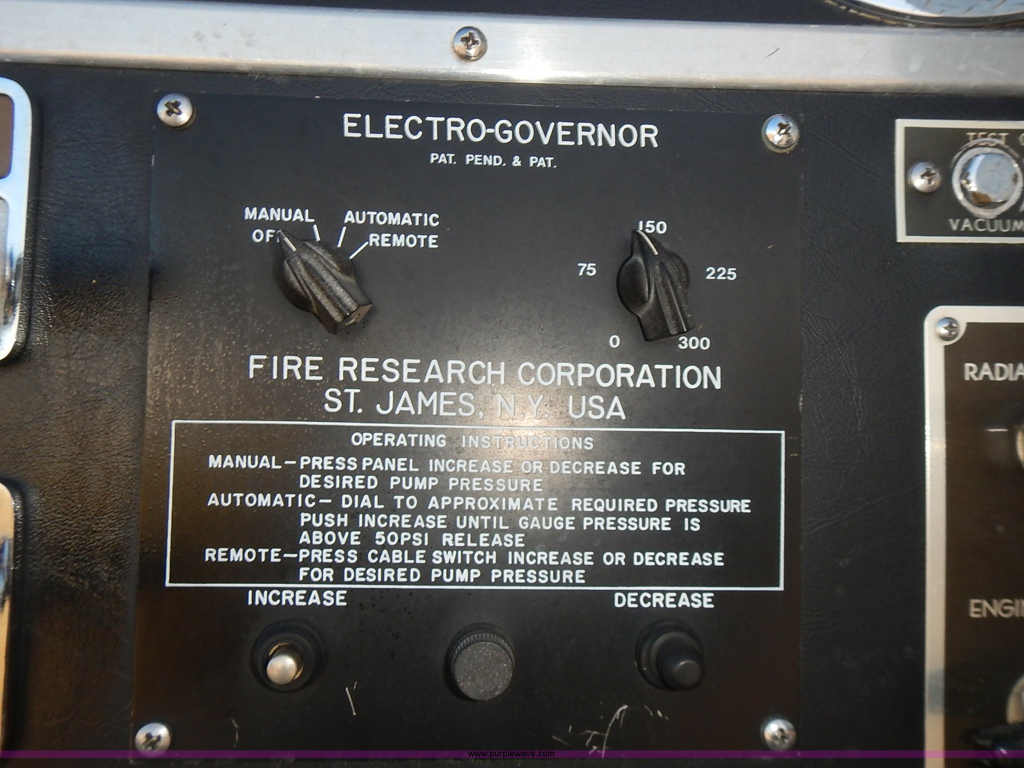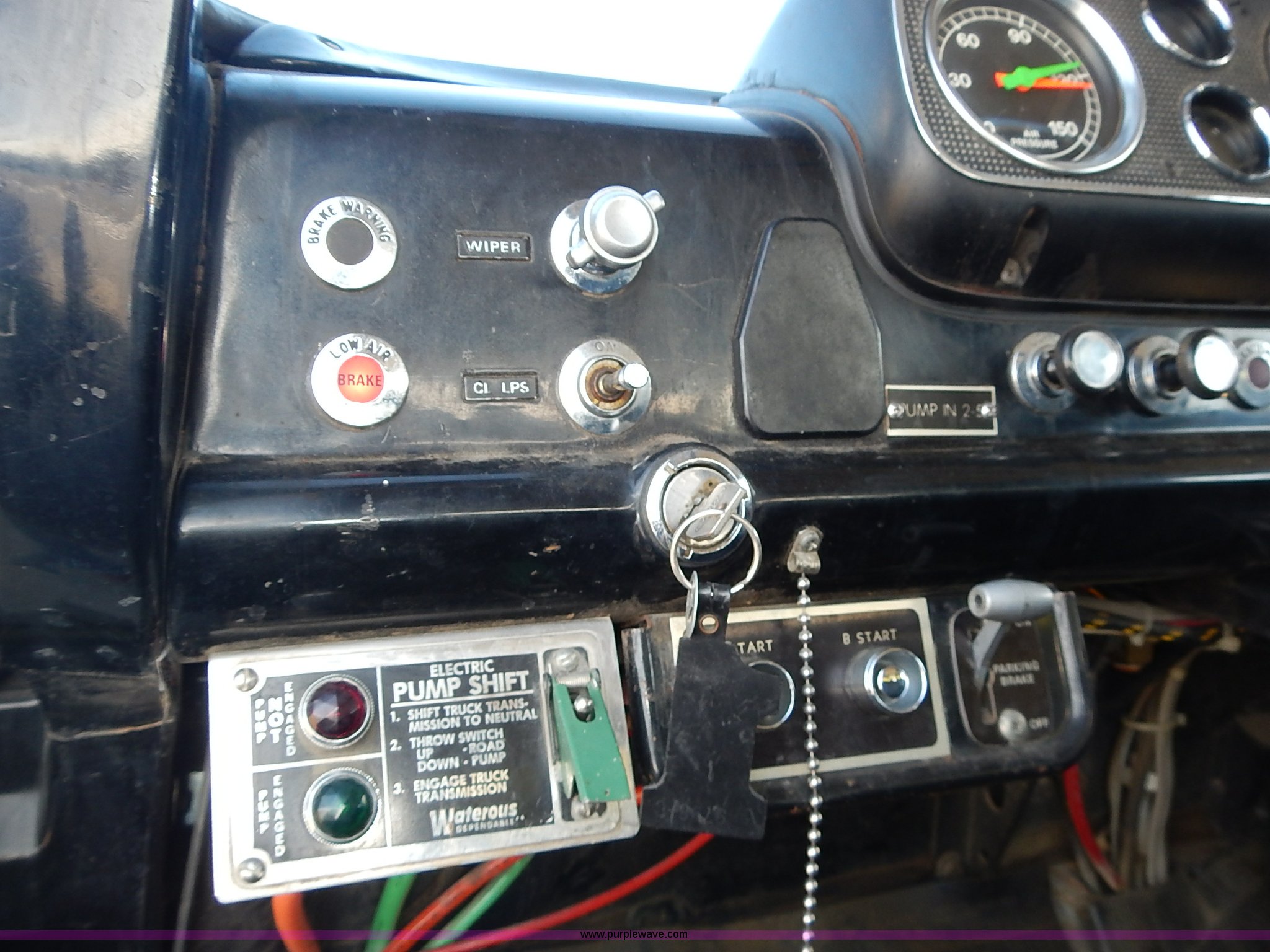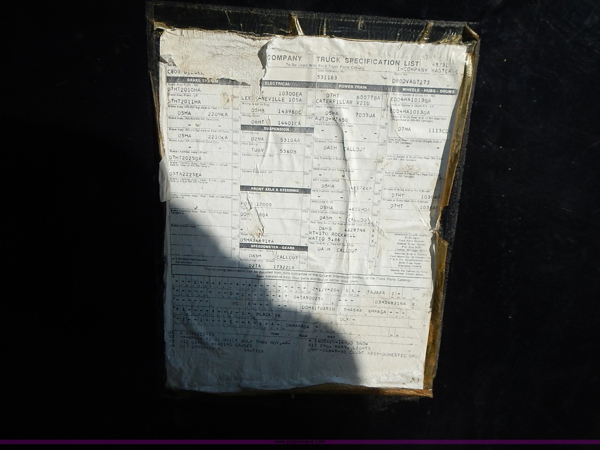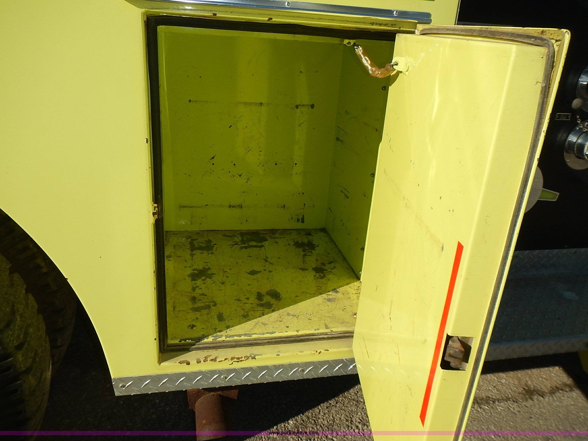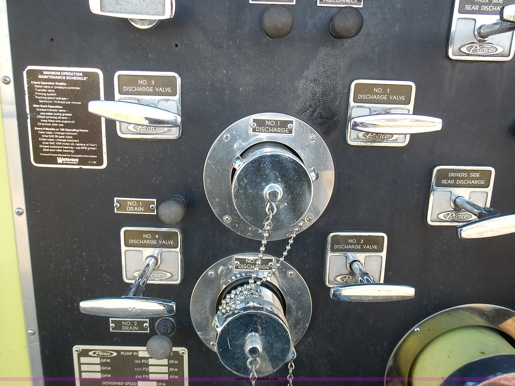 1978 Pierce Ford 8000 pumper truck. 14,646 miles on odometer, Caterpillar 3208 diesel engine, Allison automatic transmission, Single axle, Heat, Five passenger capacity, (11) exterior compartments, Tower lights, 1,000 gallon per minute pump Model CMYB, Serial 53519, 6" front outlet, Two stage waterous pump, Electric pump shift, 500 gallon water tank, Approximately 600'L water hose, Federal siren system, Work lights, Electro governor, 175" wheelbase, Air brakes, 11.00-20 tires, Batteries weak, Decals will be removed or painted over prior to auction. D80DVAG7273. Tonganoxie Fire Department. 825 E. 4th Street. Tonganoxie, KS 66086