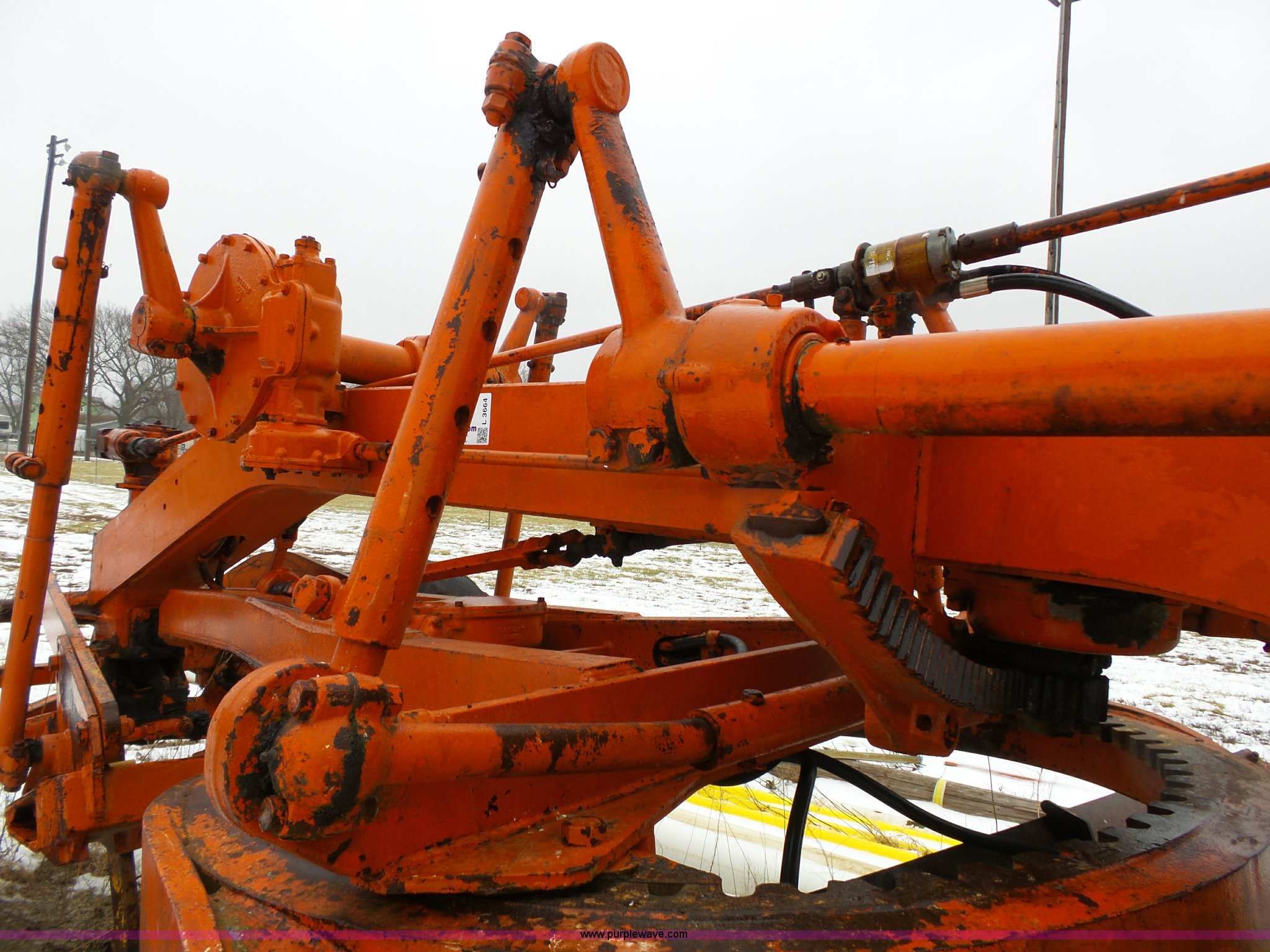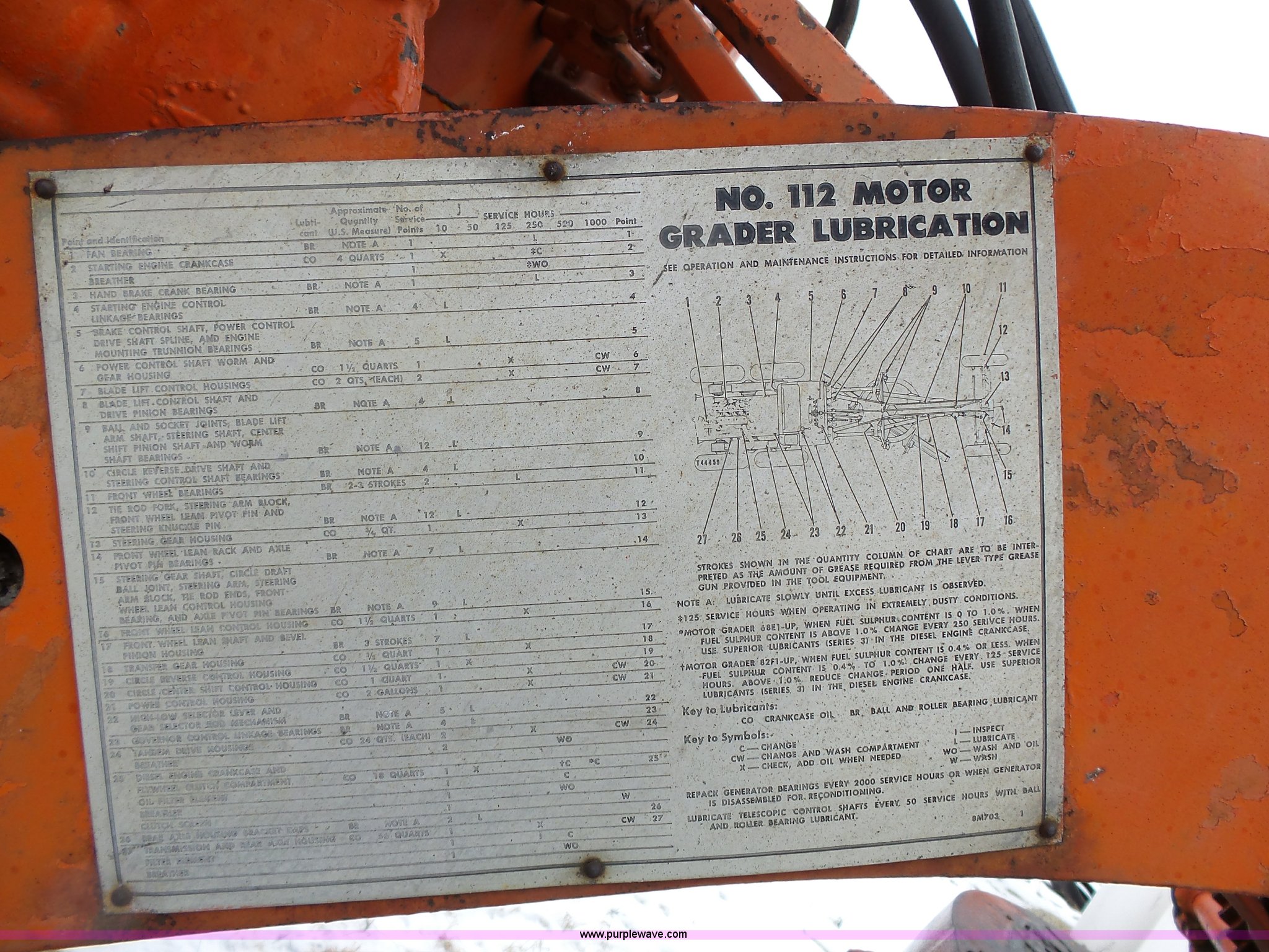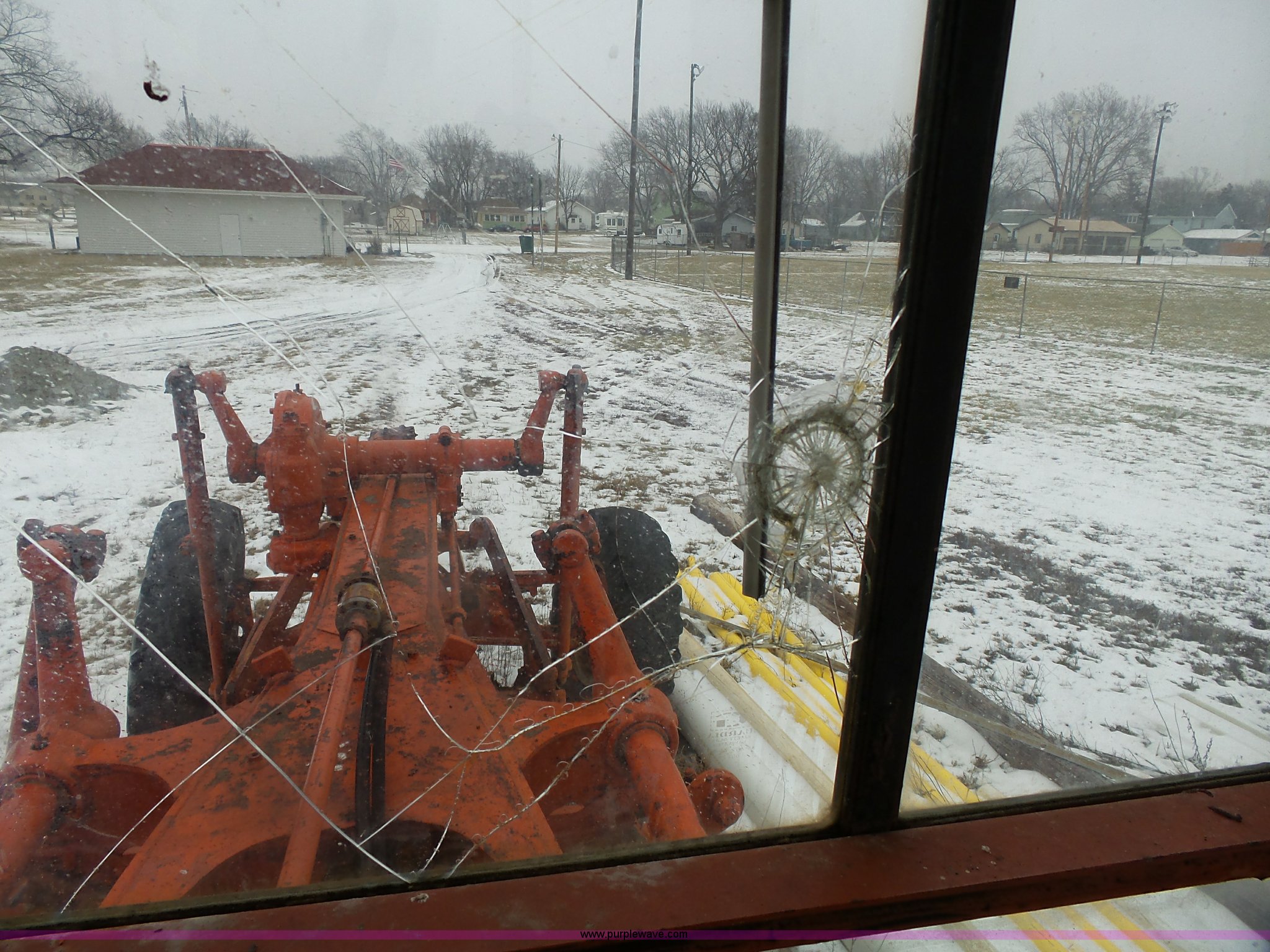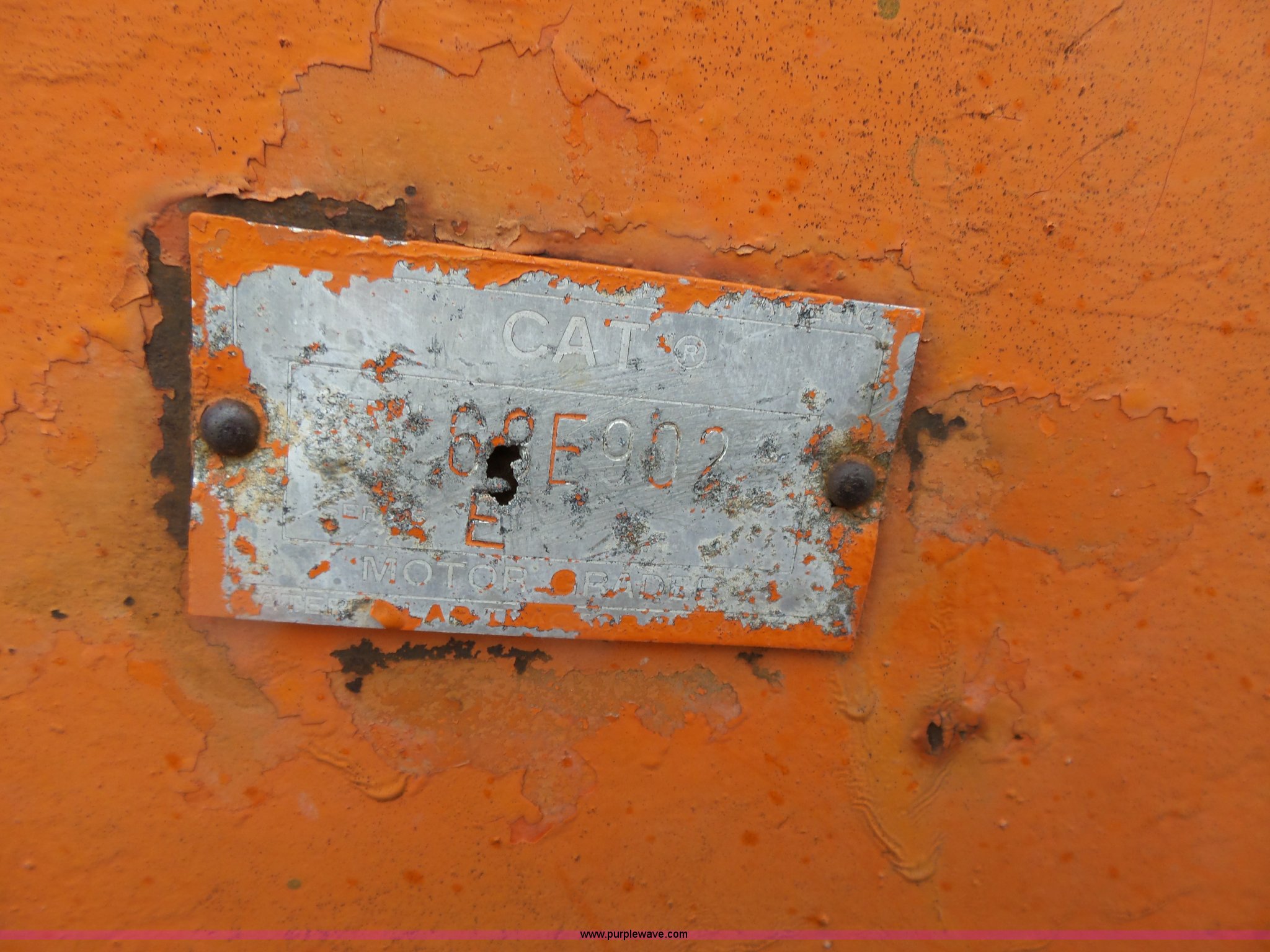 Purple Wave is selling a used Motor Grader in Kansas. This item is a Caterpillar C112 motor grader with the following: Four cylinder diesel engine, 6F-2R gears, Hi-Lo, Enclosed cab, Vinyl seat, Wiper, Power steering, Grade scarifier, and circle lift controls, Wheel lean controls, Blade lift and side shift controls, 12'W moldboard, Tip control, Side shift, Left and right blade extensions, Caterpillar front mounted scarifier, (6) teeth, Goodyear 13.00-24 front tires, Bridgestone 385/95R24 rear tires, Dead batteries, Brakes inoperable, Cracked windshield, Unknown operating condition, last used in fall 2015, Serial 68E902