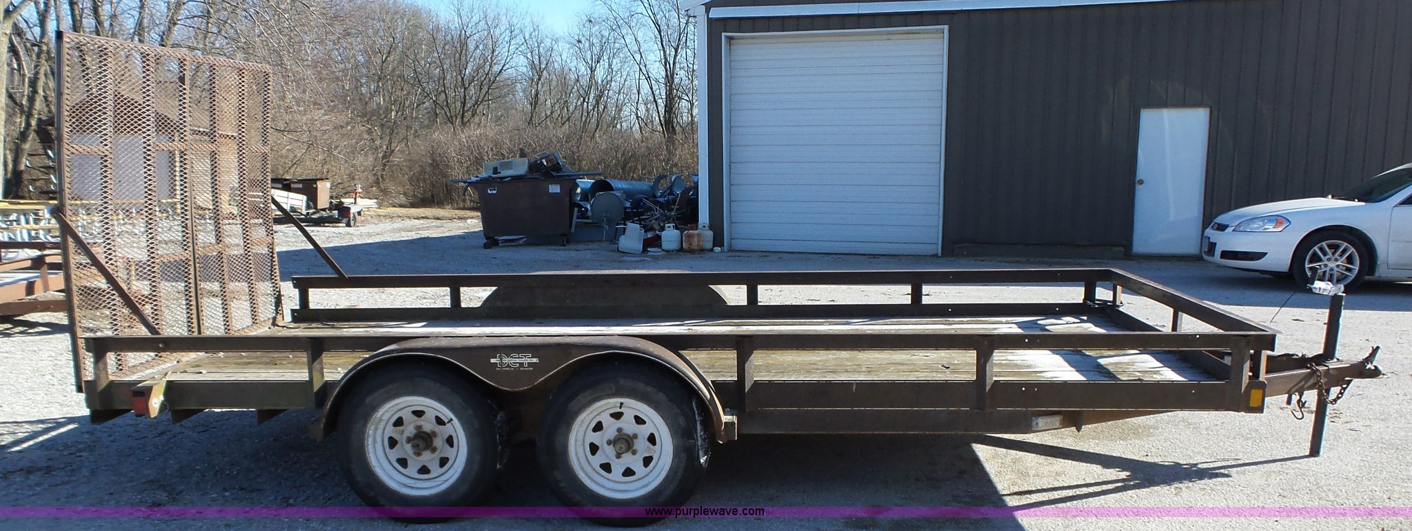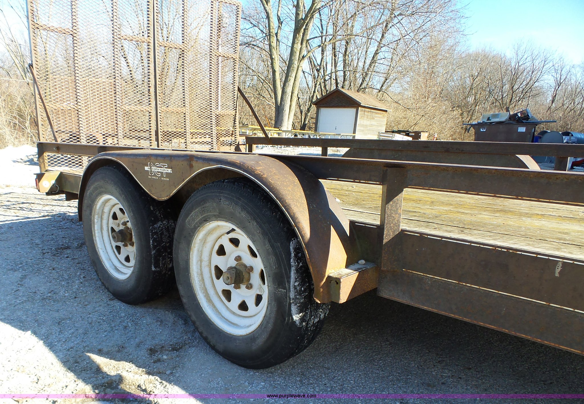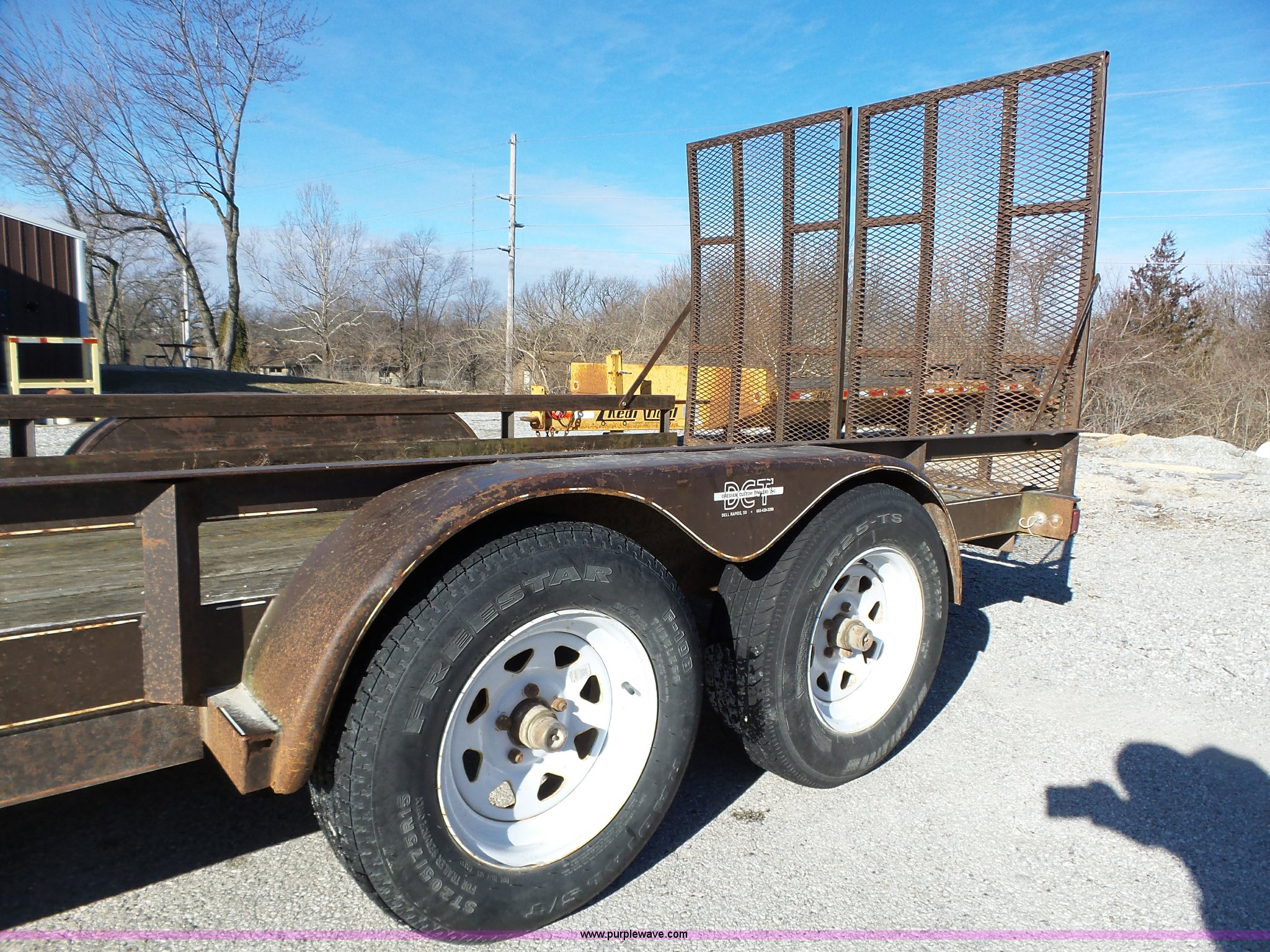 Purple Wave is selling a used Equip. Trailer in Iowa. This item is a 1994 Dressen equipment trailer with the following: 16'L x 80"W wood deck, 60"L x 36"W folding ramps, Tongue mounted jack stand, 2" ball hitch, Tandem axle, Spring suspension, ST205/75R15 tires