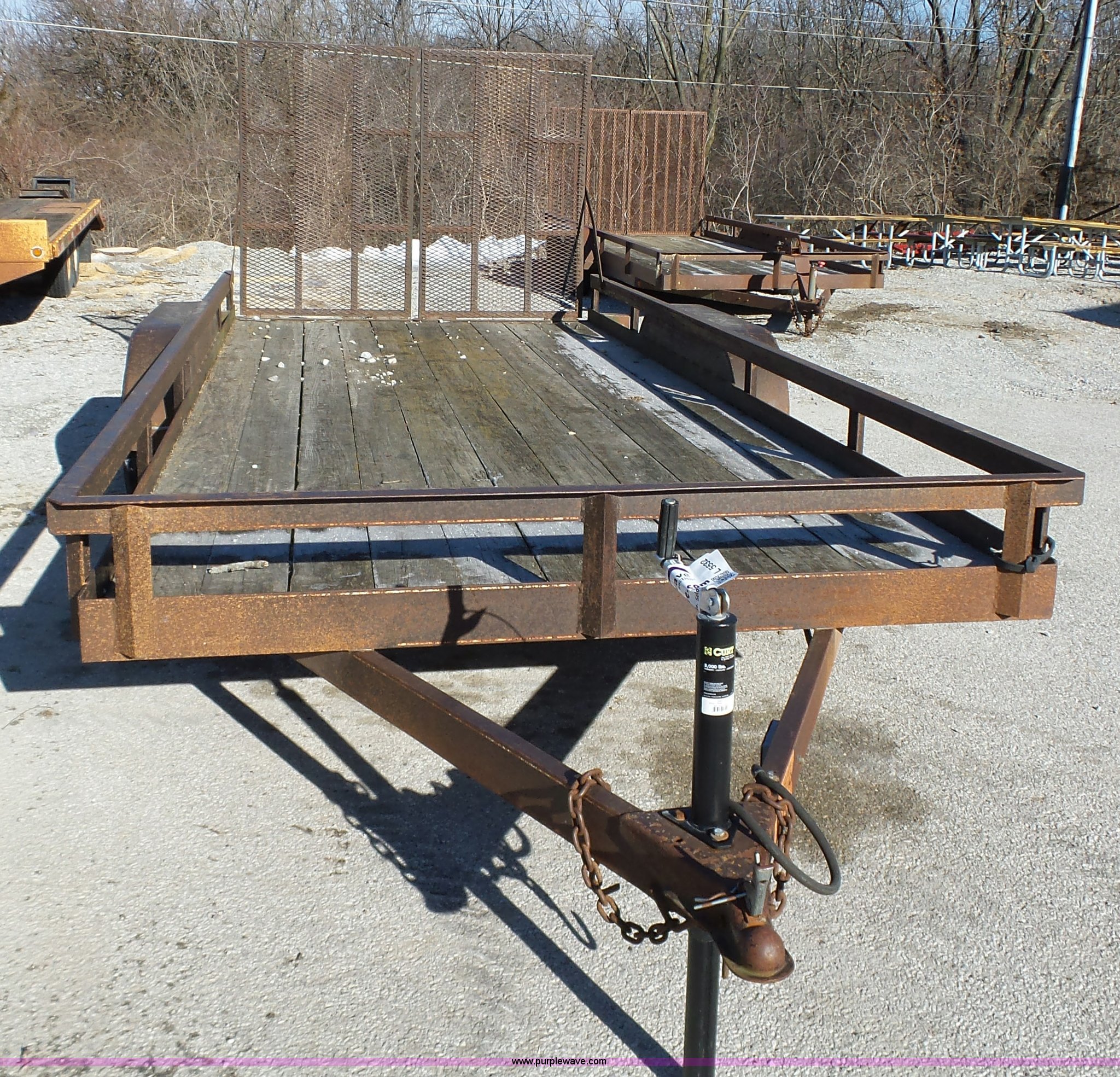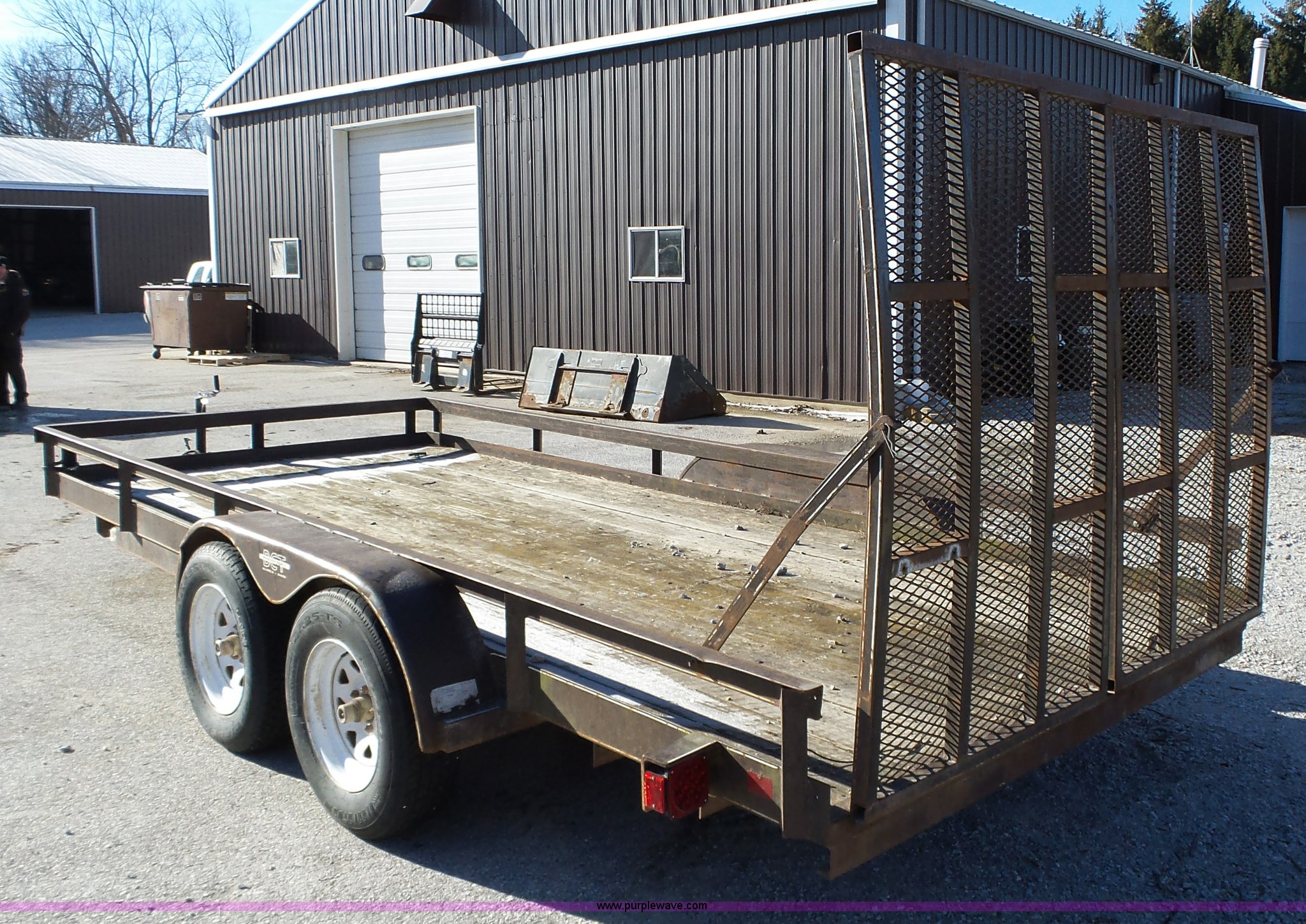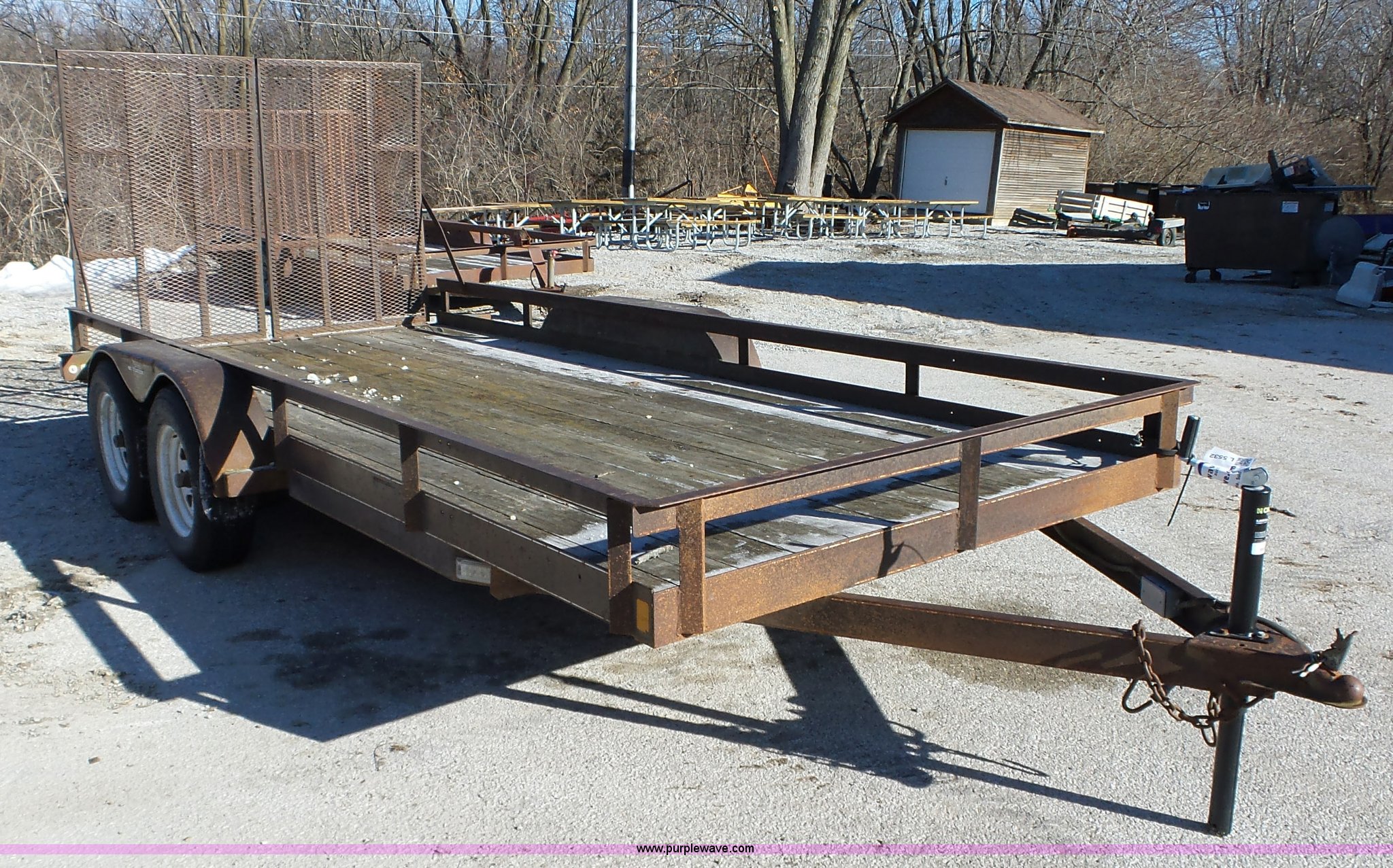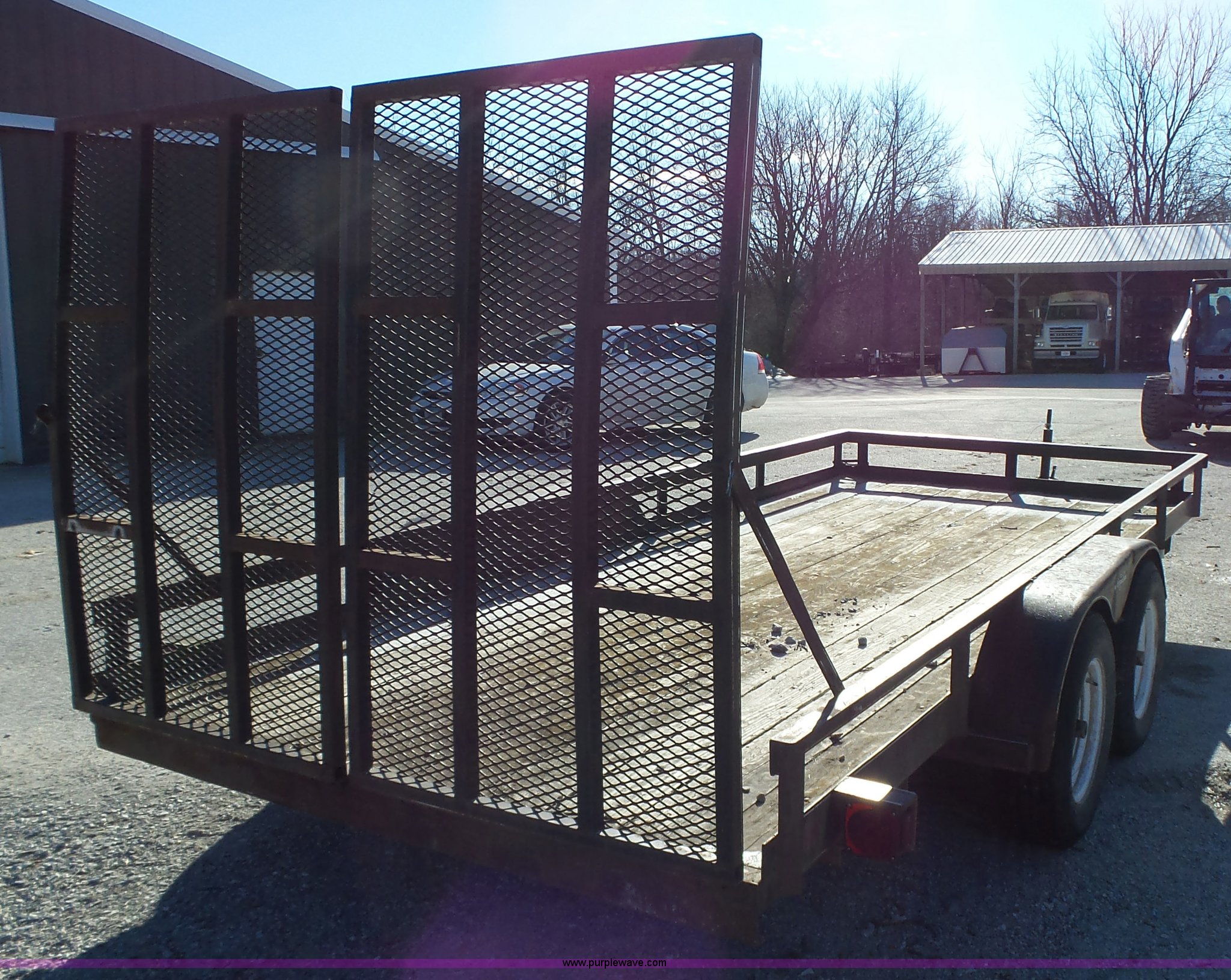 Purple Wave is selling a used Equip. Trailer in Iowa. This item is a 1994 Dressen equipment trailer with the following: 16'L x 80"W wood deck, 60"L x 36"W folding ramps, Tongue mounted jack stand, 2" ball hitch, Tandem axle, Spring suspension, ST205/75R15 tires