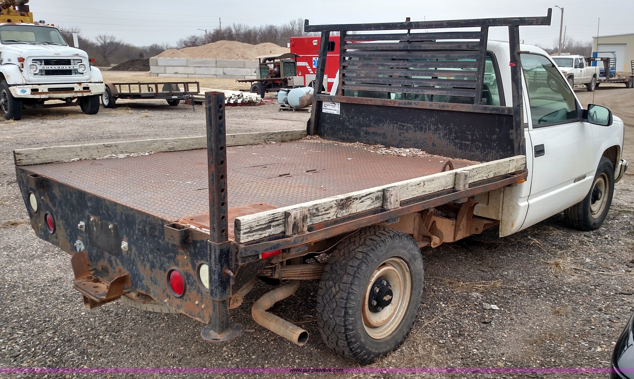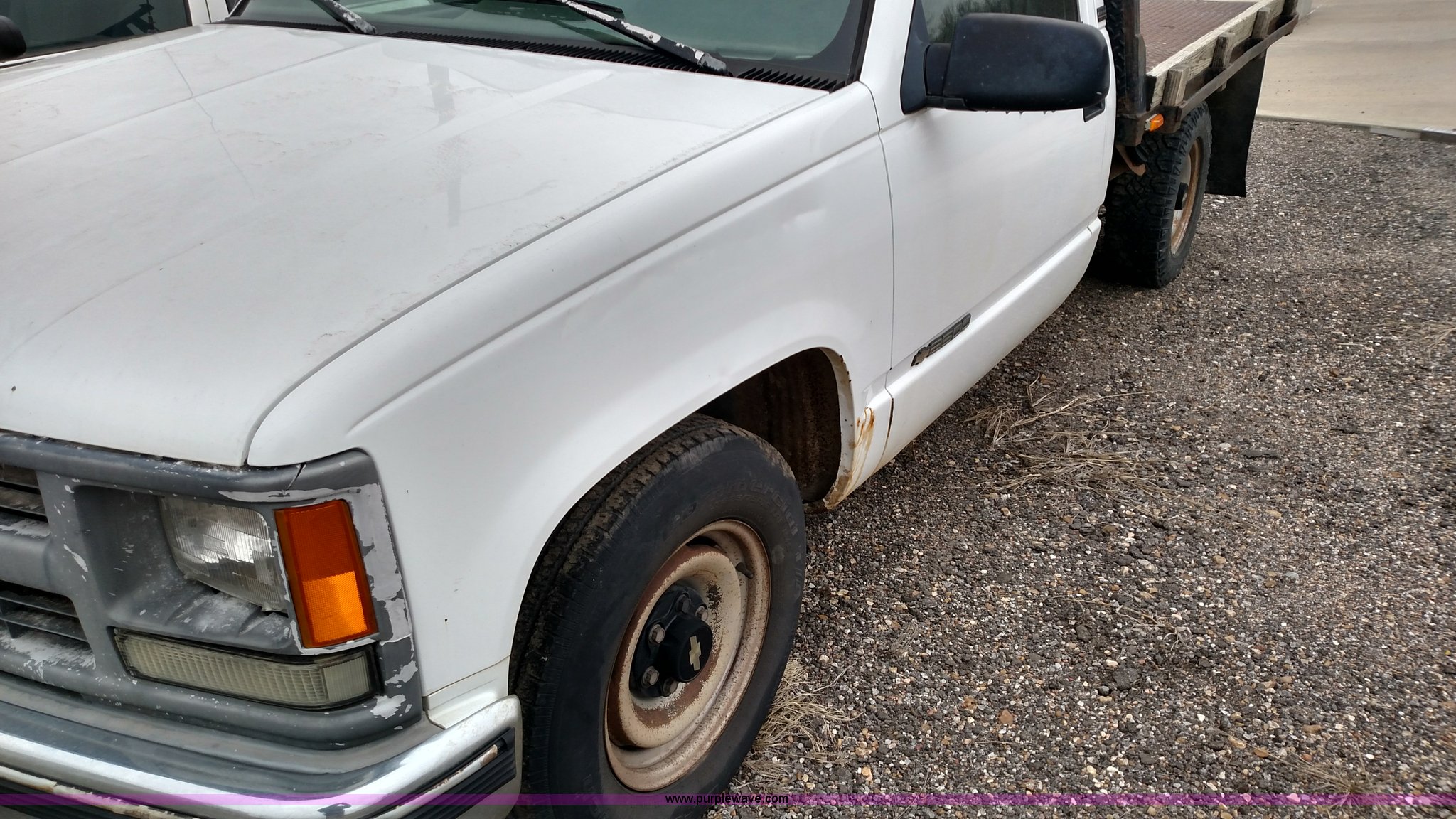 Purple Wave is selling a used 3/4 or 1 Ton Pickup or Van in Kansas. This item is a 1995 Chevrolet 2500 flatbed pickup truck with the following: 167,505 miles on odometer, 5.0L V8 OHV 16V gas engine, Automatic transmission, AM/FM, Manual windows and locks, 225/75R16 tires, Interior/exterior cosmetic damage, Non-operational transmission, Unit# 0007408