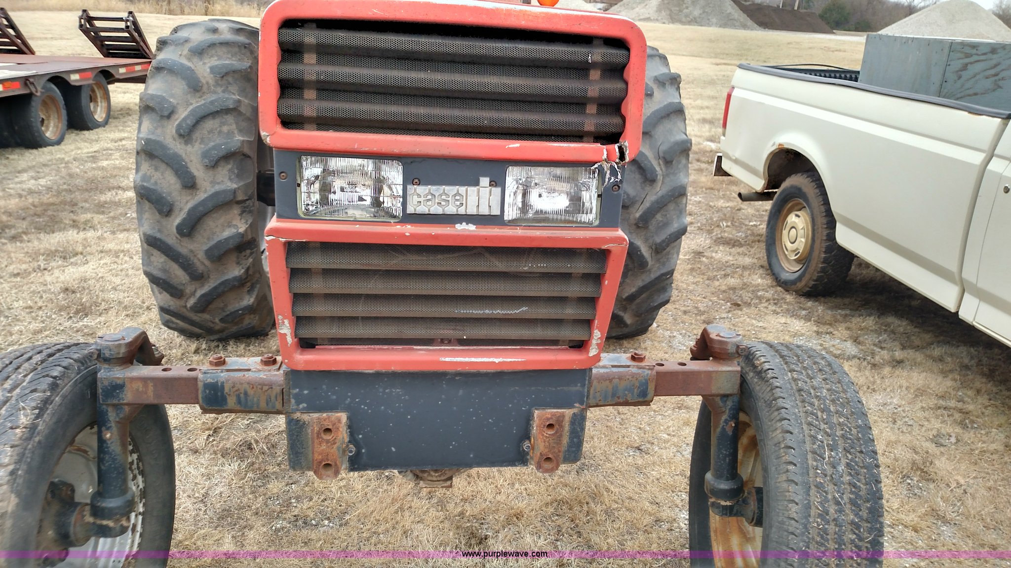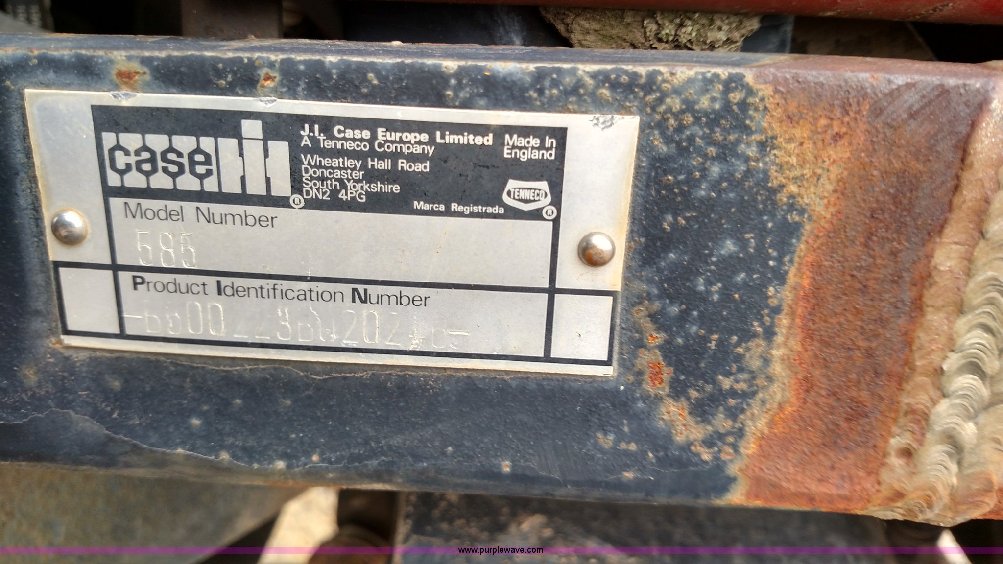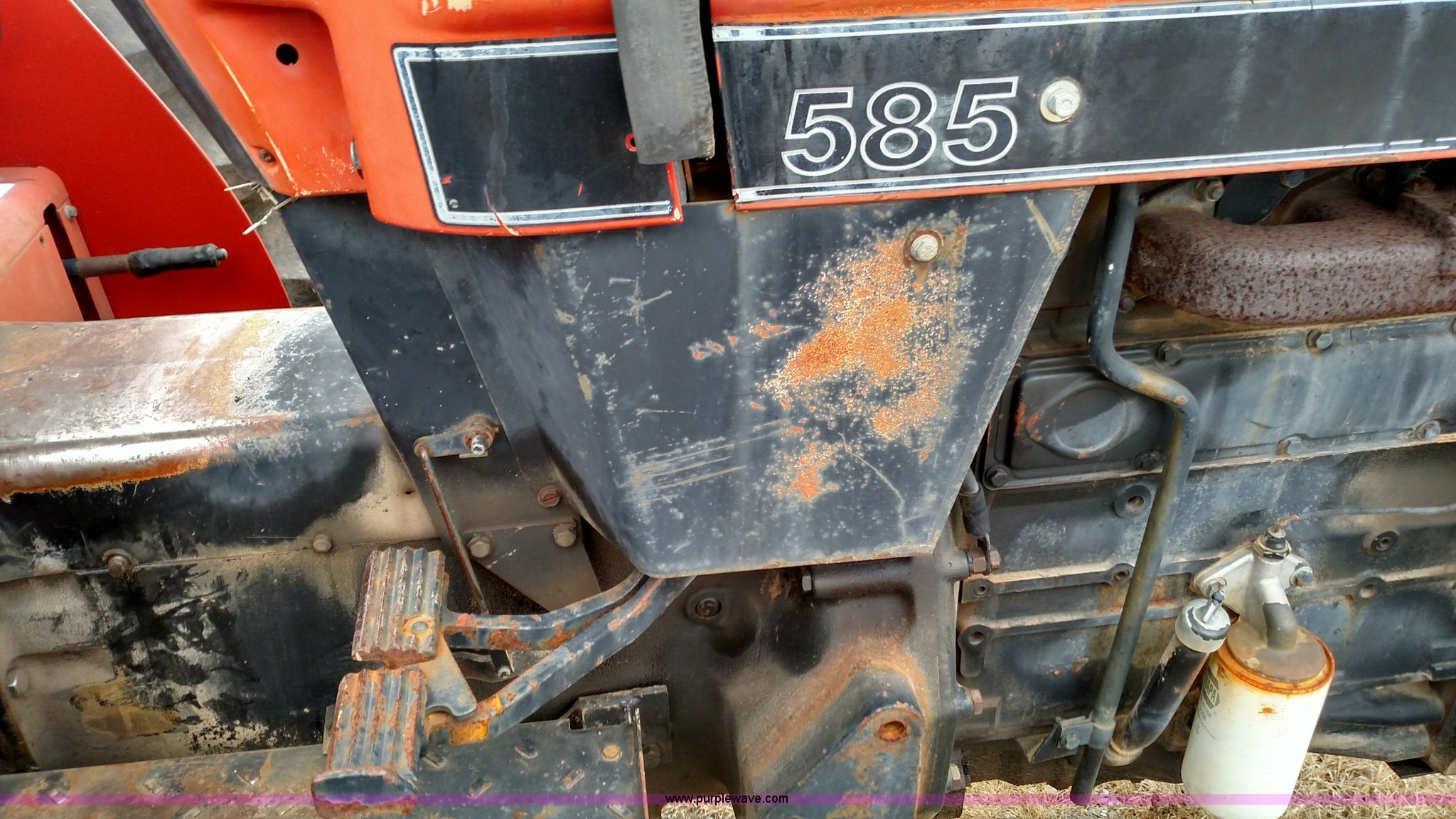 Purple Wave is selling a used Tractor in Kansas. This item is a Case 585 tractor with the following: 298 hours on meter, Diesel engine, 8F-4R gears, Three point, 540 PTO, Rear hydraulic remote sets, (2) wheel weights, 235/85R16 front tires, 16.9-30 rear tires, Brakes need to be repaired, Serial 20246, Unit# 0004989