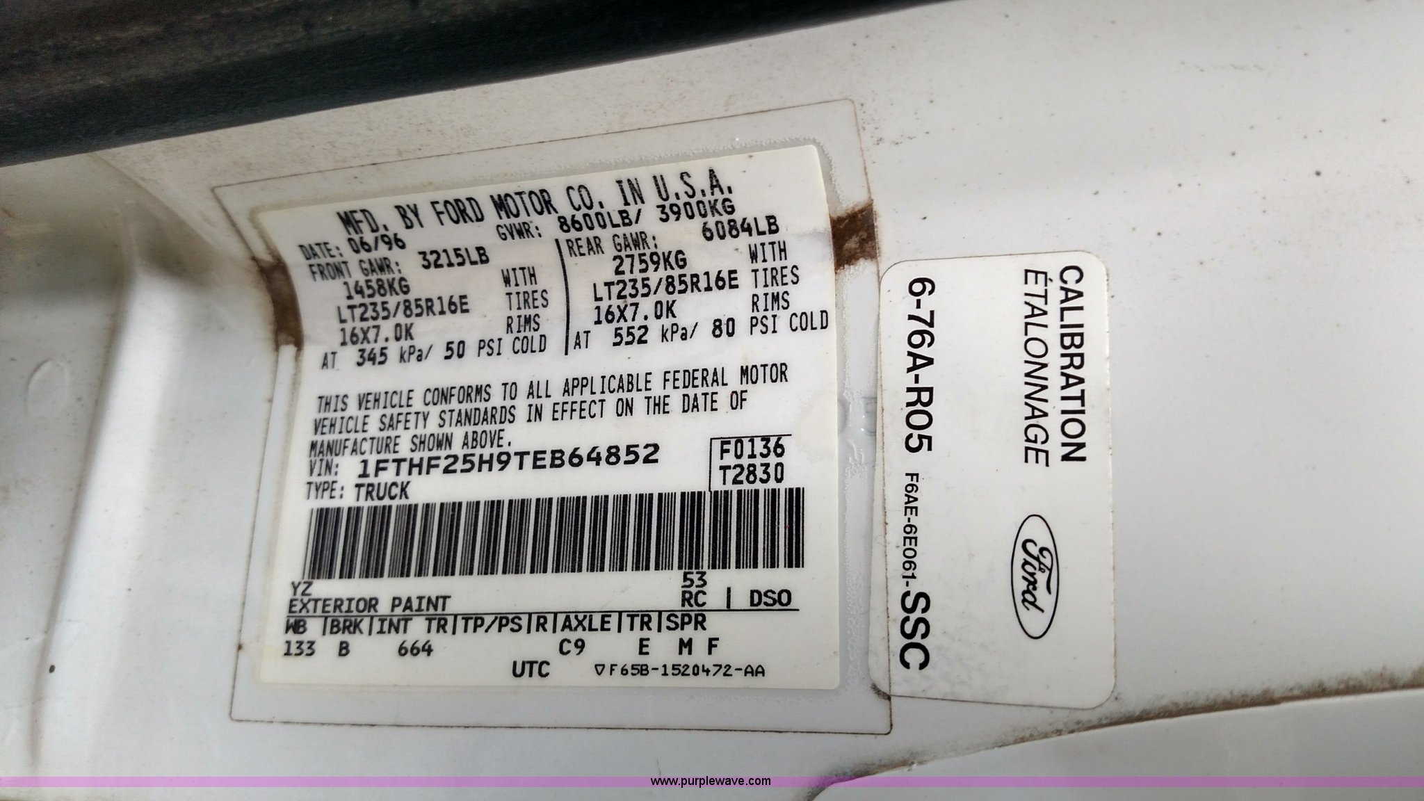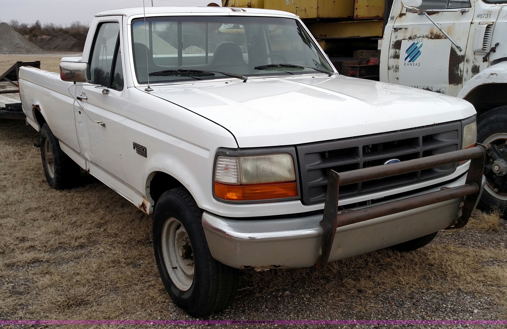 Purple Wave is selling a used 3/4 or 1 Ton Pickup or Van in Kansas. This item is a 1996 Ford F250 XL HD pickup truck with the following: 222,386 miles on odometer, 5.8L V8 OHV 16V gas engine, Automatic transmission, AC and heat, Tilt, Cruise, AM/FM/cassette, Manual windows and locks, Vinyl interior, Long bed, 235/85R16 tires, Interior/exterior cosmetic damage, Unit# 007129