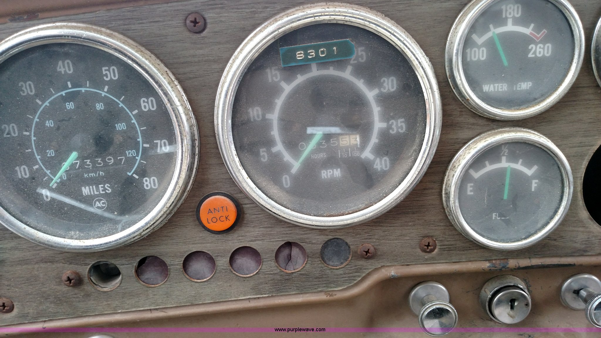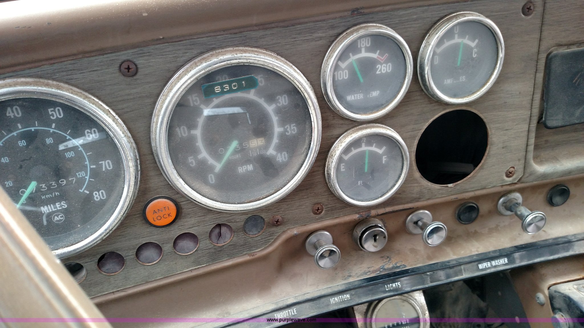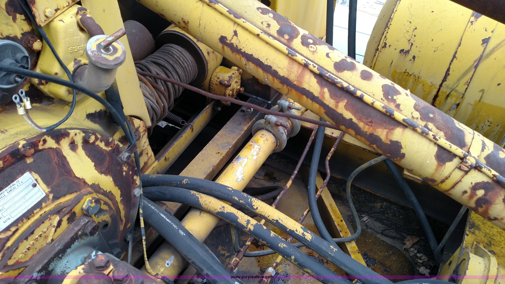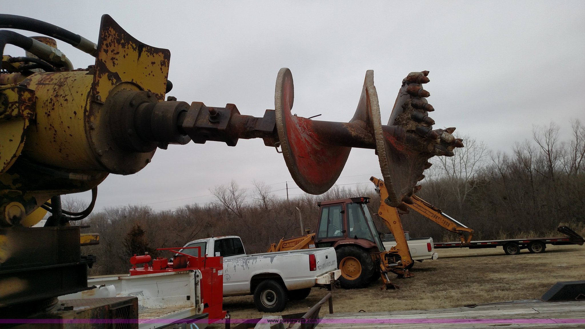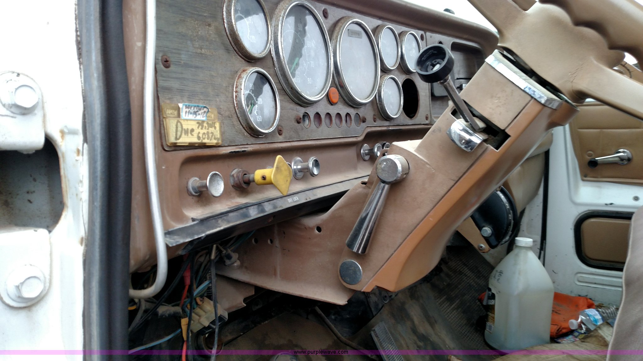 Purple Wave is selling a used Bucket Truck in Kansas. This item is a 1979 Chevrolet C80 Texhoma digger truck with the following: 73,397 miles on odometer, Caterpillar 3208 diesel engine, Automatic transmission, Tandem axle, Inter-axle differential lock, Tilt, Manual windows and locks, Vinyl interior, Rear outriggers, Pole setter, Turntable, 21" bit, 8" bit, Spring suspension, 10.00R20 front tires, 11.00R20 rear tires, Dead battery, Unit# 0008731