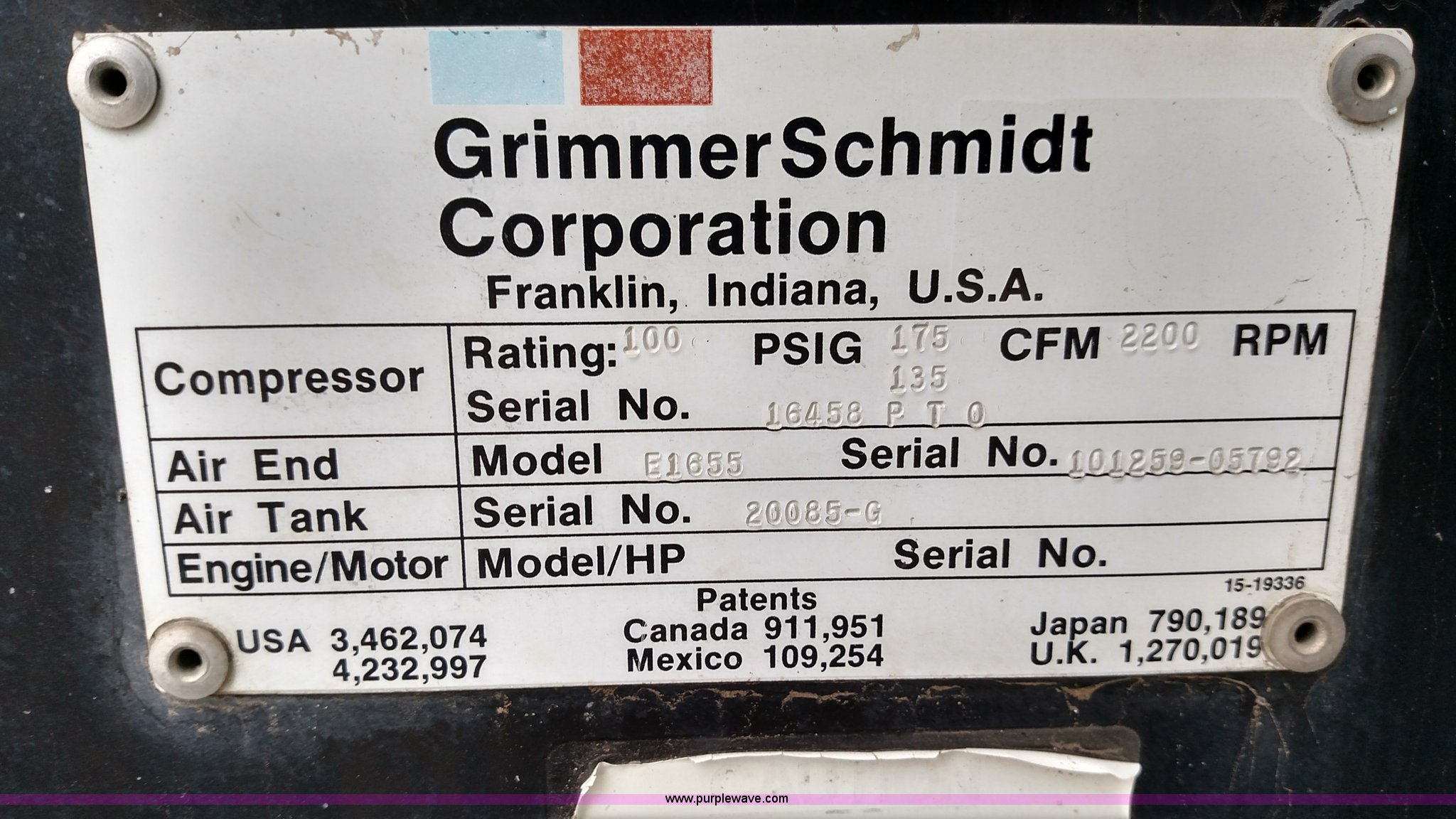 - Grimmer Shcmidt E1655 air compressor
