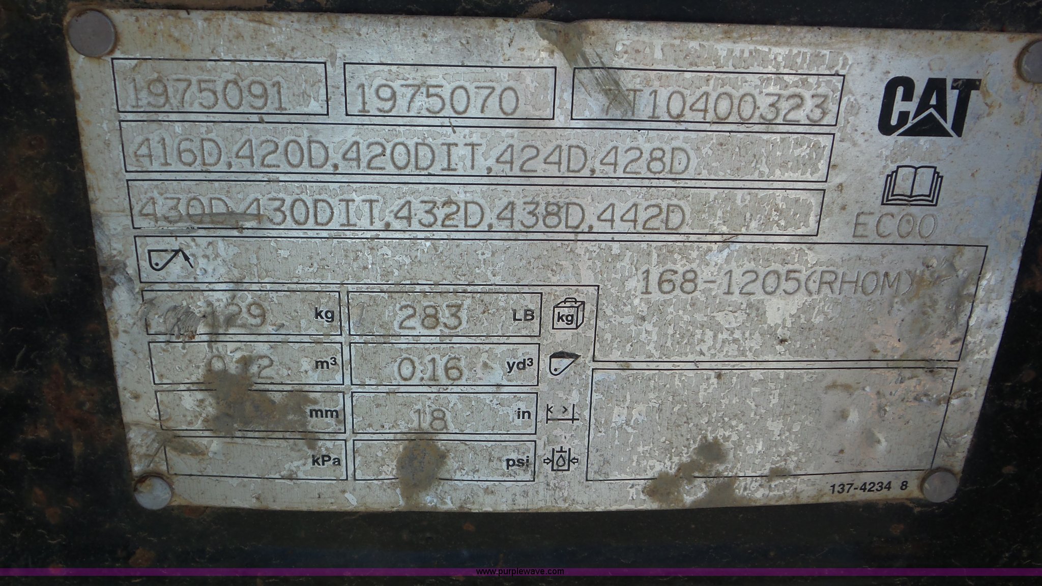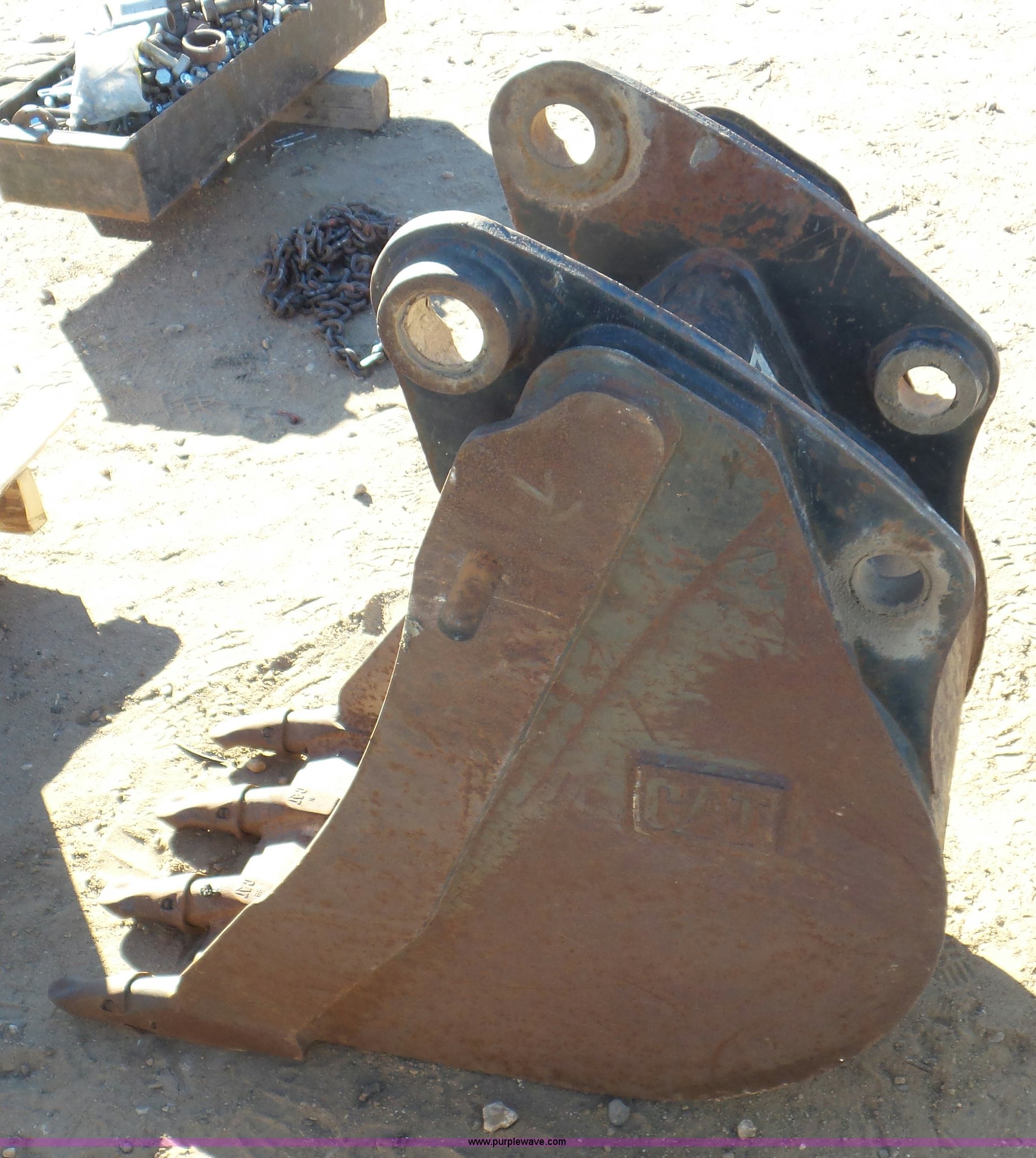 Purple Wave is selling a used Backhoe Attach. in Kansas. This item is a Caterpillar backhoe bucket with the following: 18"W, .16 cubic yard capacity, 1 3/4" pin diameter
