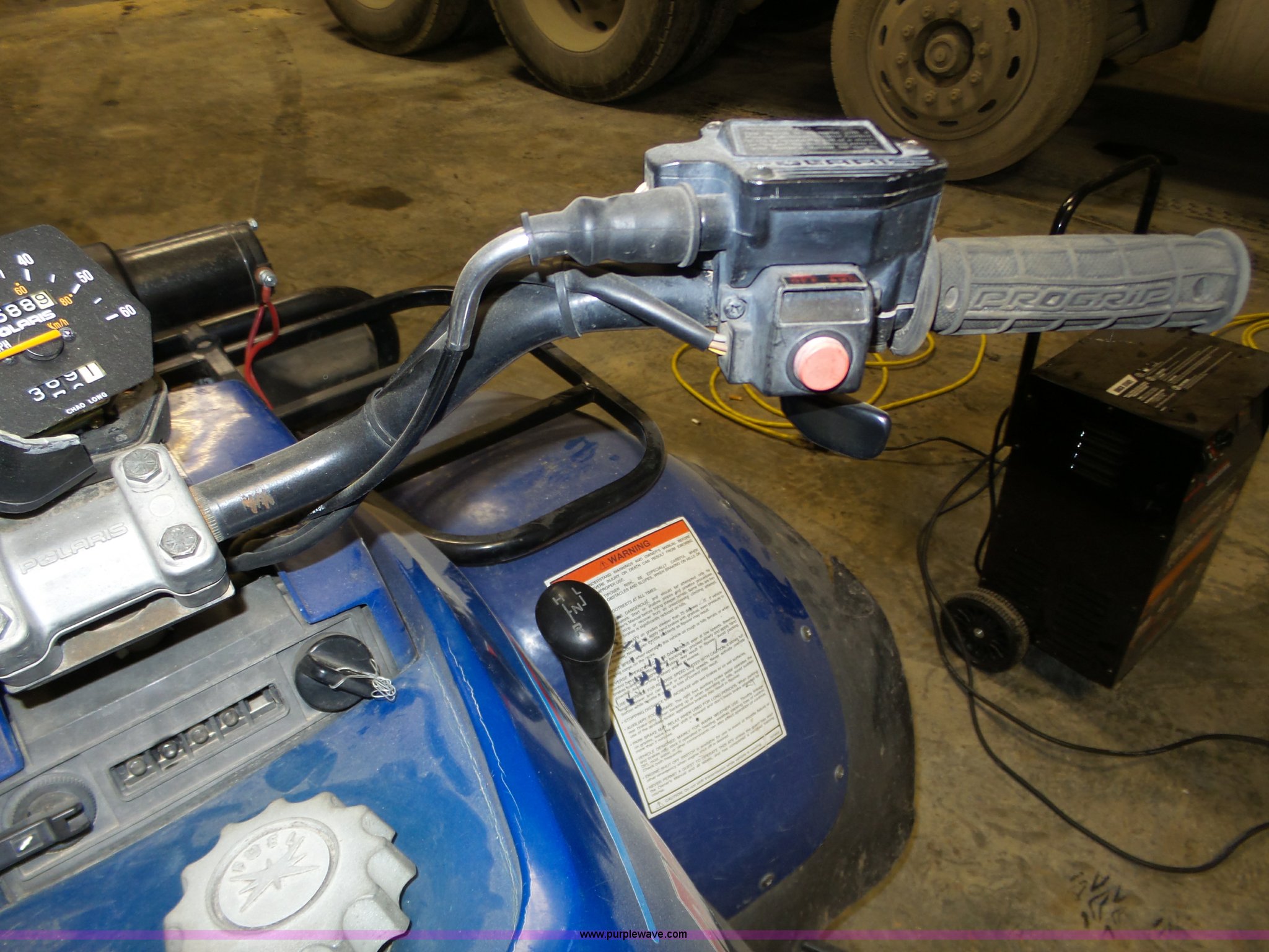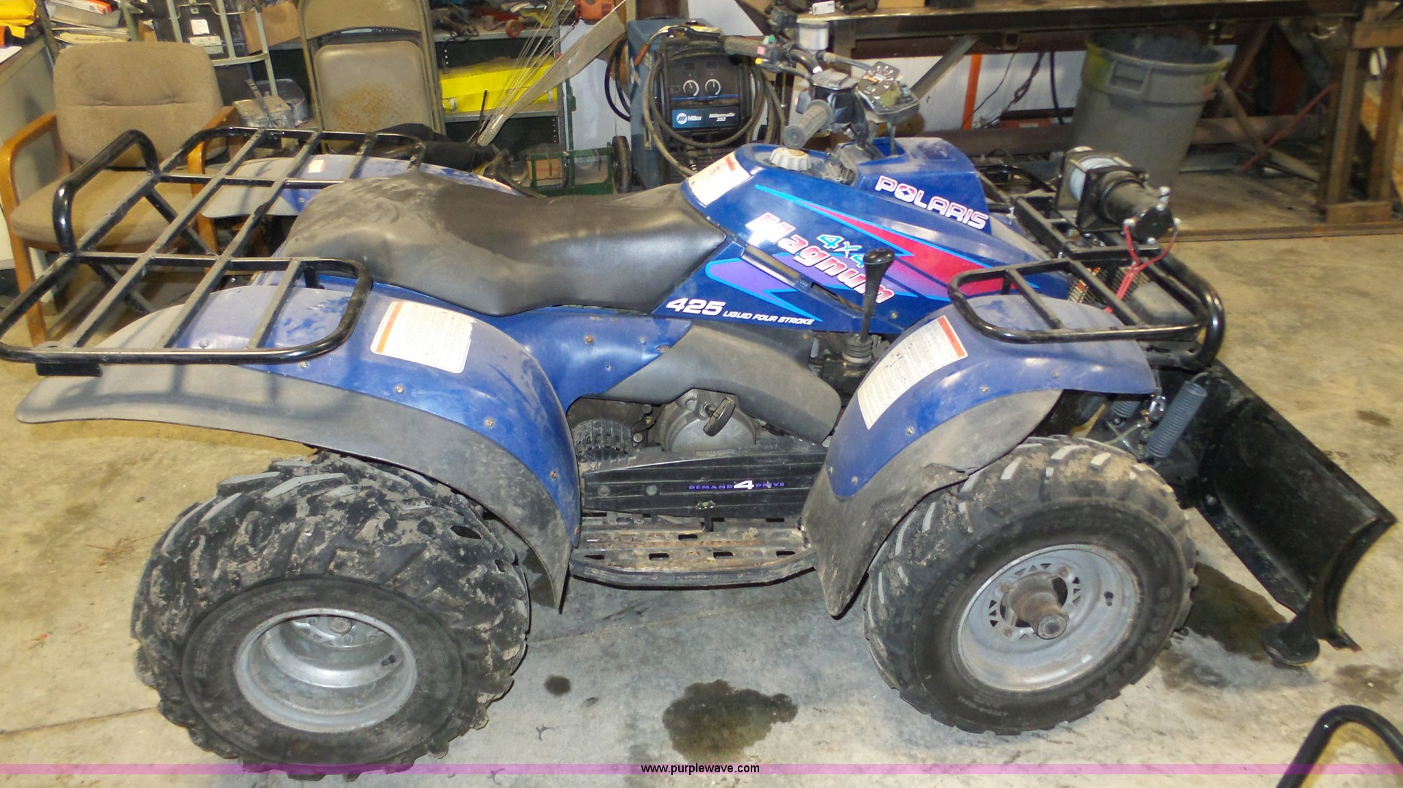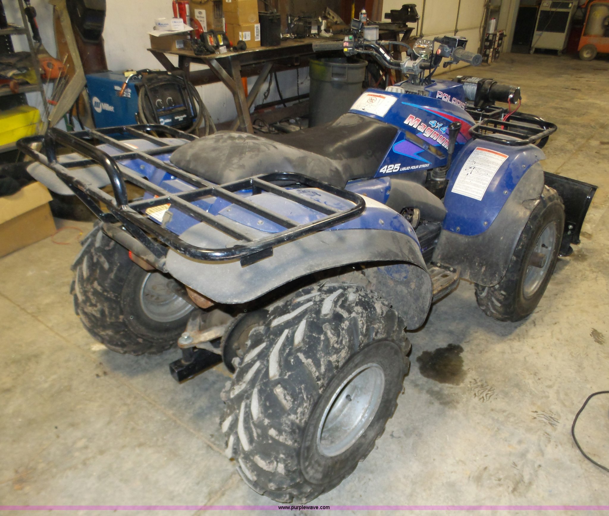 Purple Wave is selling a used ATV in Nebraska. This item is a 1996 Polaris Magnum 425 ATV with the following: 2,589 miles on odometer, 425cc gas engine, Automatic transmission, Hi-Lo, Winch, 2,500 lbs capacity, Snow plow blade, Spring mounted, Cargo rack, AT25 x 8-12 front tires, AT25 x 11-10 rear tires, Odometer damaged, Battery needs replaced