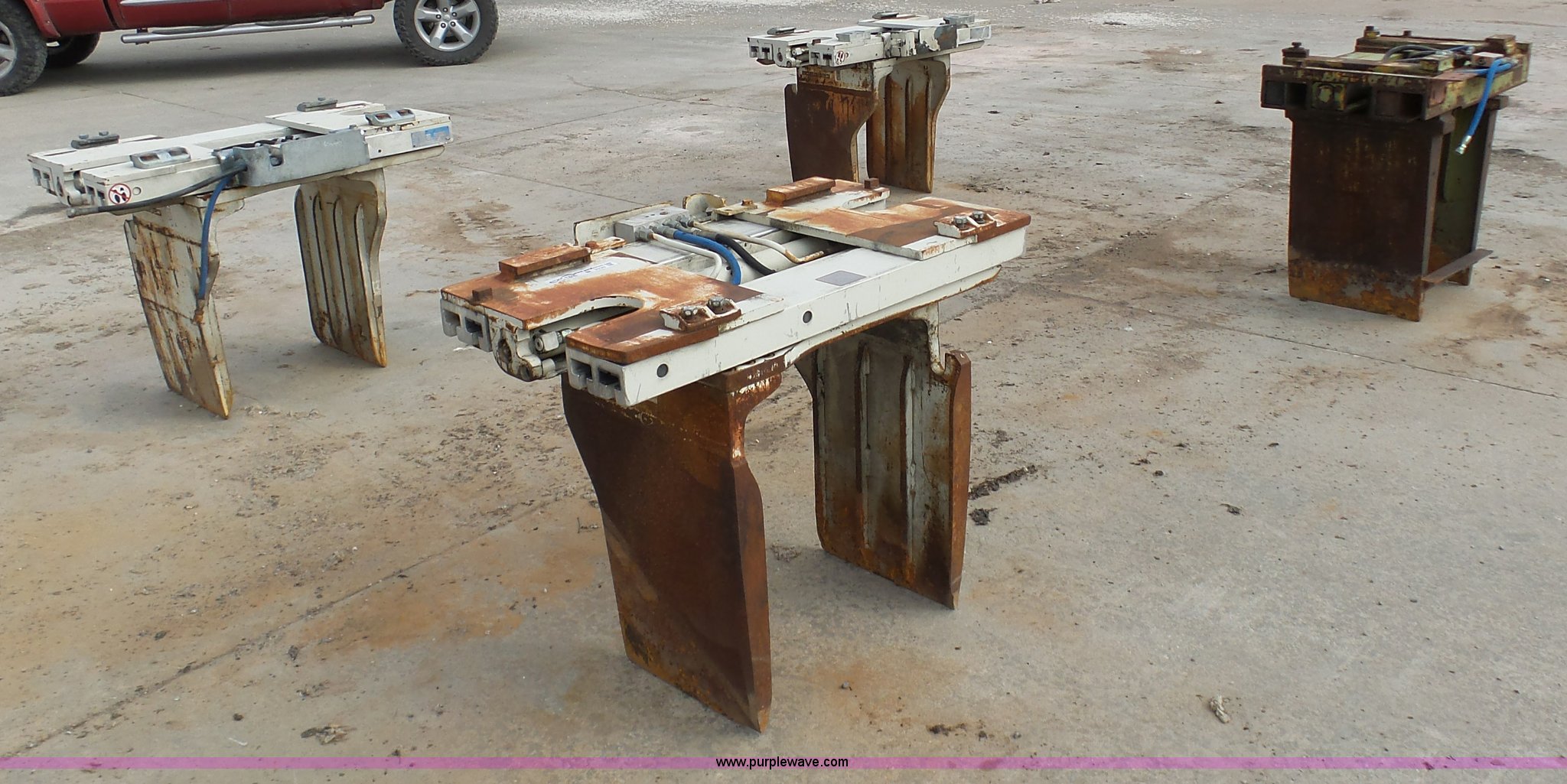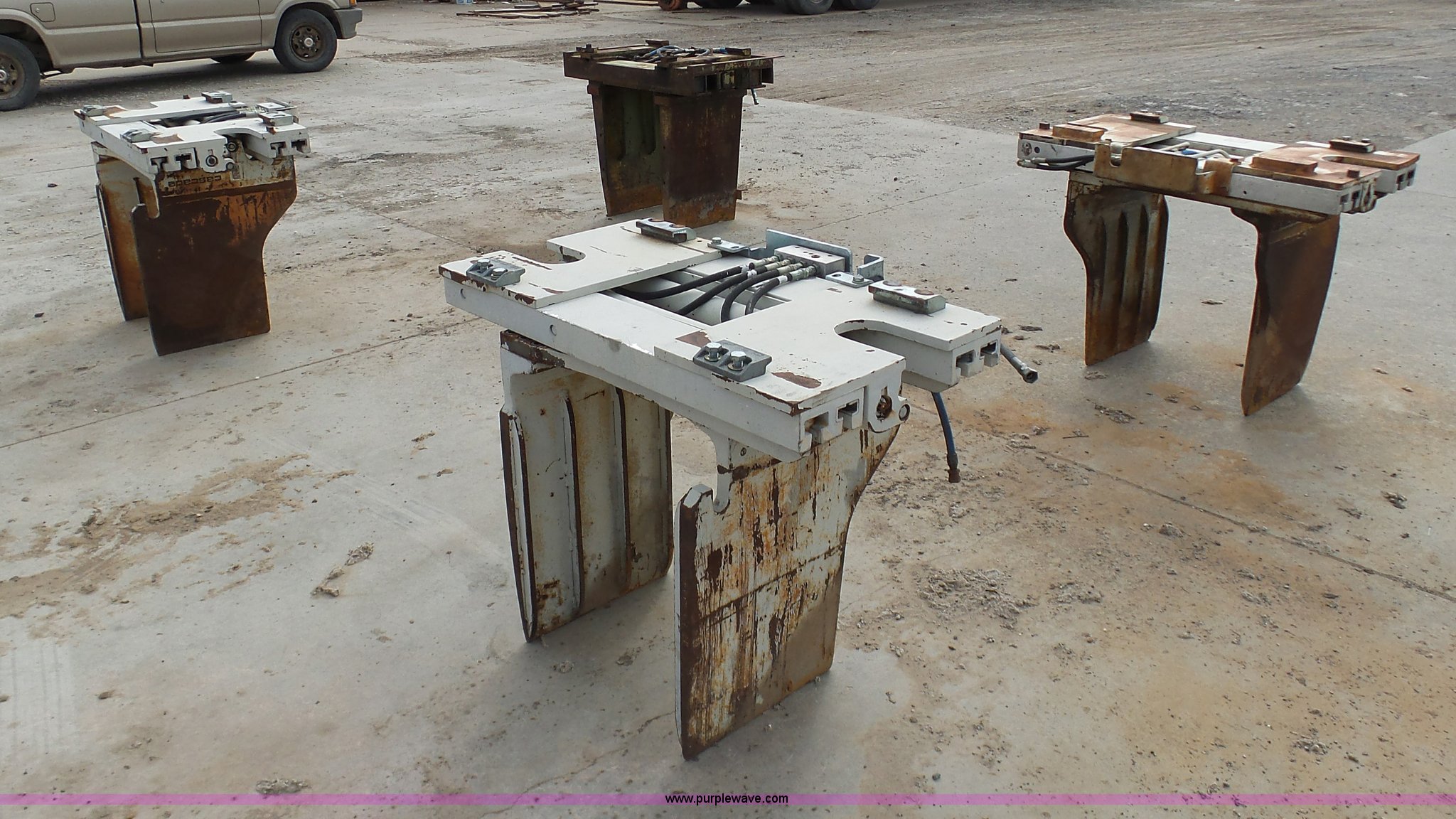 Purple Wave is selling a used Forklift Attach. in Missouri. This item is a (4) forklift bale clamps with the following: (3) Cascade brand