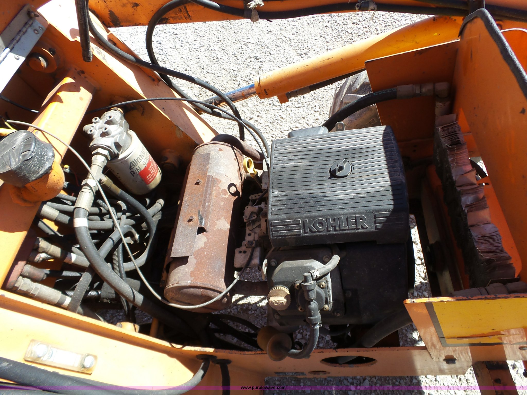 Purple Wave is selling a used Tractor Loader Backhoe in Missouri. This item is a Allmand TLB325 backhoe with the following: 708 hours on meter, Kohler two cylinder gas engine, Hydrostatic transmission, OROPS, 55"W loader bucket, Bolt-on cutting edge, 16"W backhoe bucket, Bolt-on cutting edge, 23 x 10.50-12 front tires, 31 x 15.5-15 rear tires, Serial 0050T32504