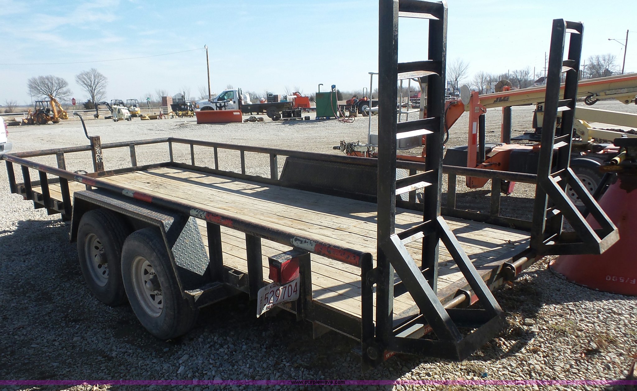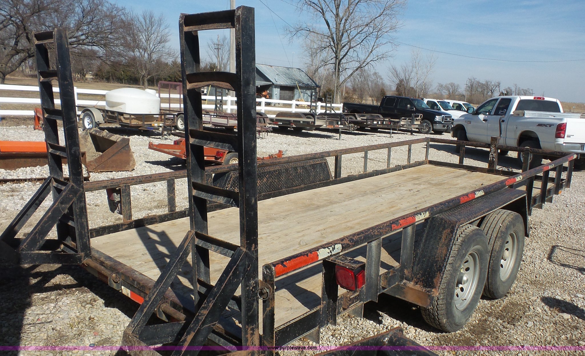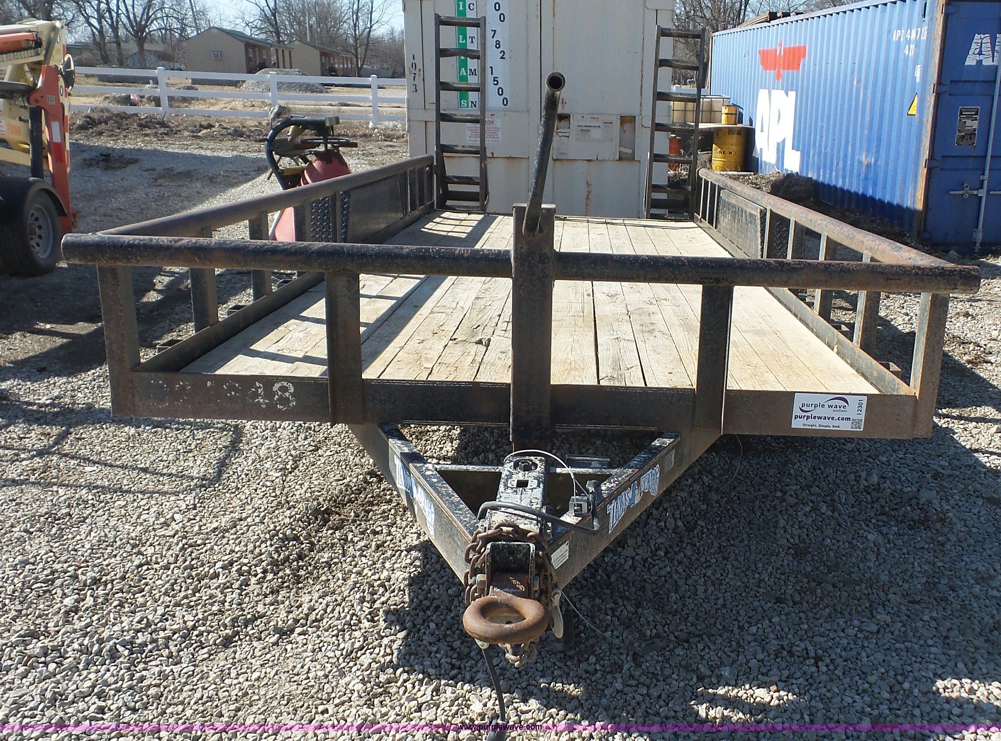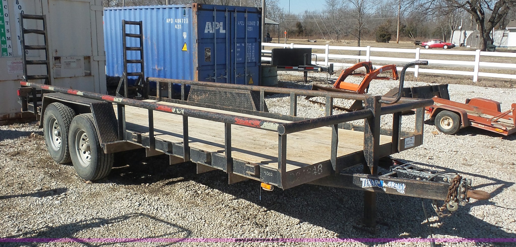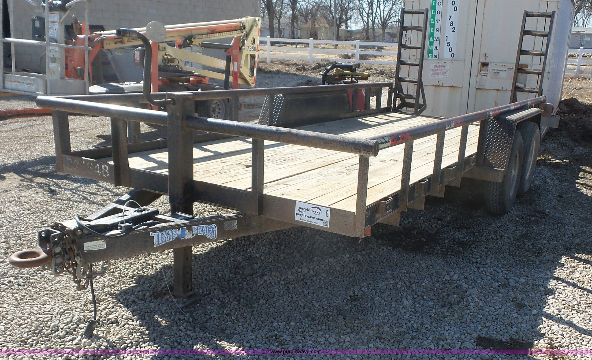 Purple Wave is selling a used Equip. Trailer in Kansas. This item is a 2007 Texas Bragg equipment trailer with the following: 18'L x 82.5"W, 5'L ramps, Wood deck, Pintle hitch, Single leg landing gear, Spring suspension, Electric brakes, Tandem axle, Steel wheels, 7.50R16 tires, GVWR 12,000 lbs, GAWR 6,000 lbs
