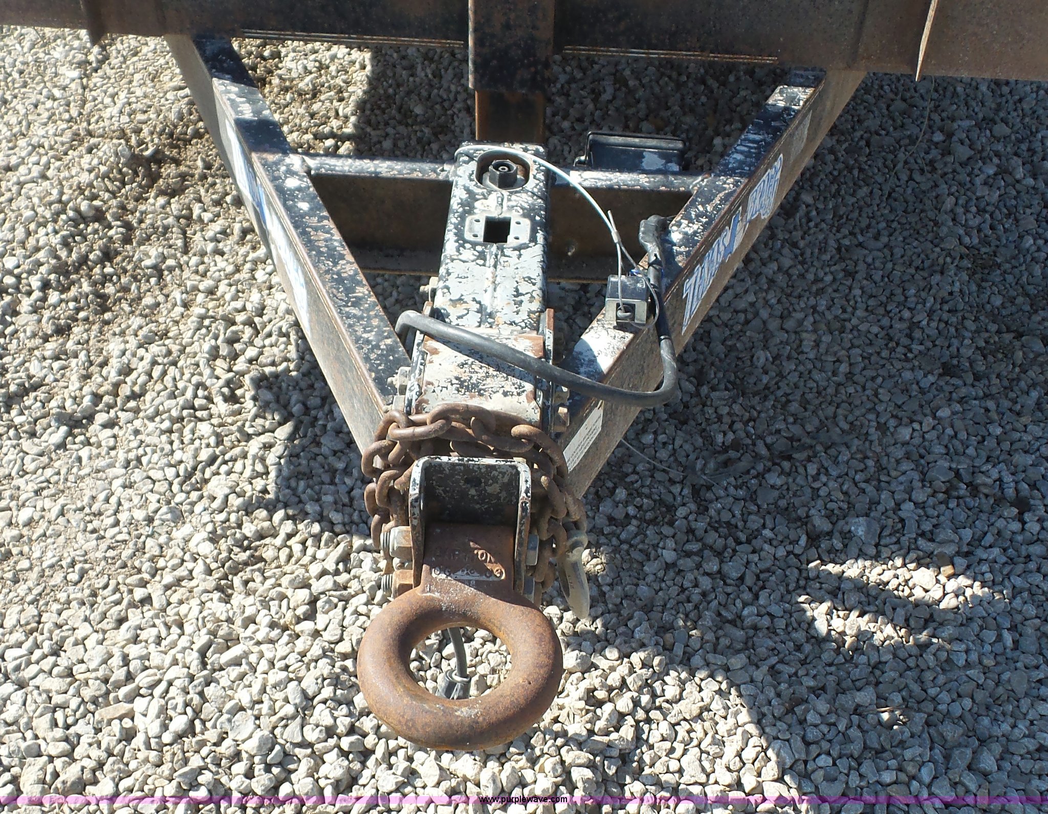 2007 Texas Bragg equipment trailer. 18'L x 82.5"W, 5'L ramps, Wood deck, Pintle hitch, Single leg landing gear, Spring suspension, Electric brakes, Tandem axle, Steel wheels, 7.50R16 tires, GVWR 12,000 lbs, GAWR 6,000 lbs. 17XFP182471070797. 709 E 6th. Pleasanton, KS 66075