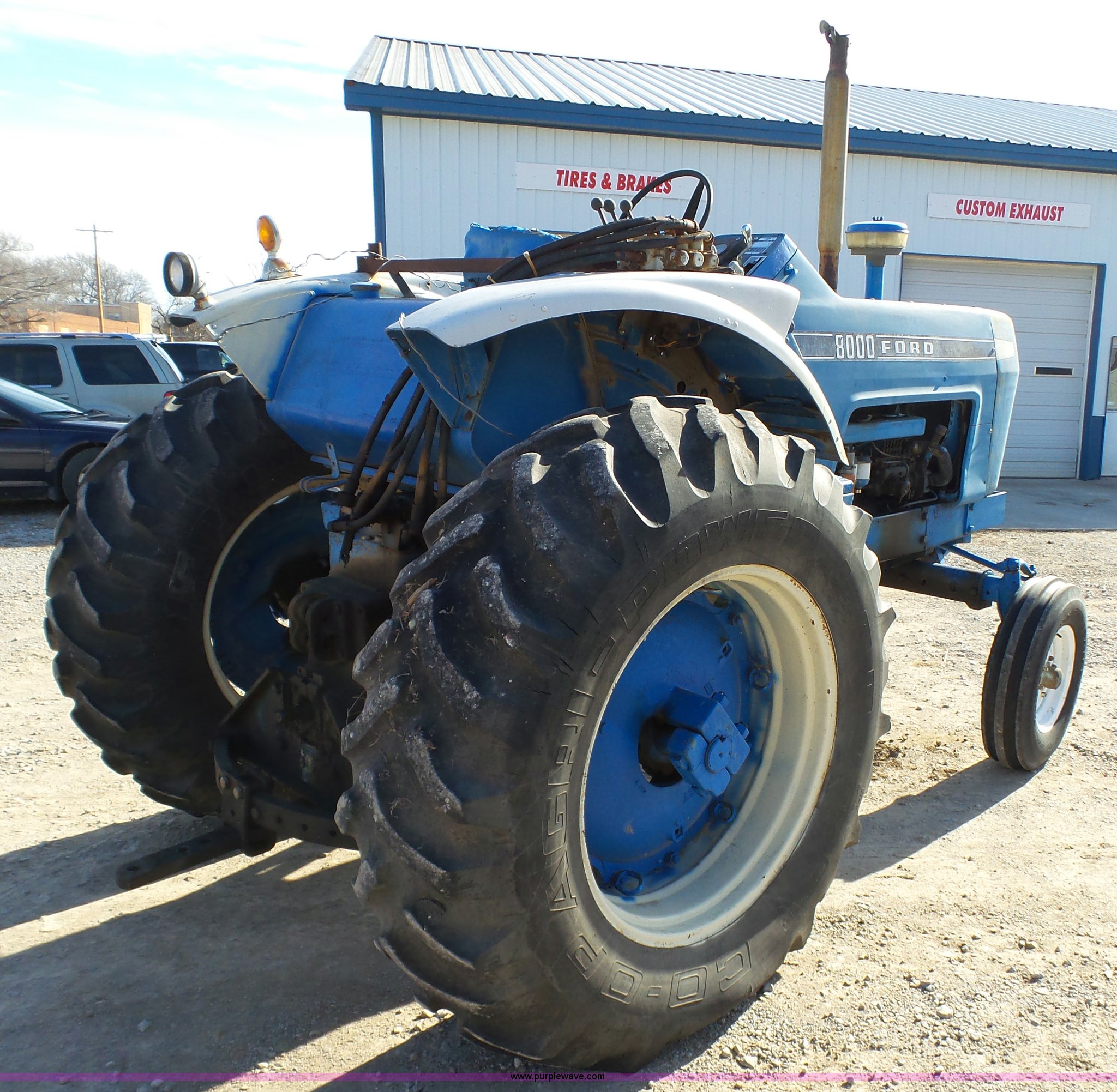Purple Wave is selling a used Tractor in Kansas. This item is a Ford 8000 tractor with the following: 9,990 hours on meter, Six cylinder diesel engine, Powershift transmission, 8F-2R gears, Suspension seat, 540 PTO, 7.50-16 front tires, 18.4-34 rear tires, Leaks power steering fluid, Serial C274958