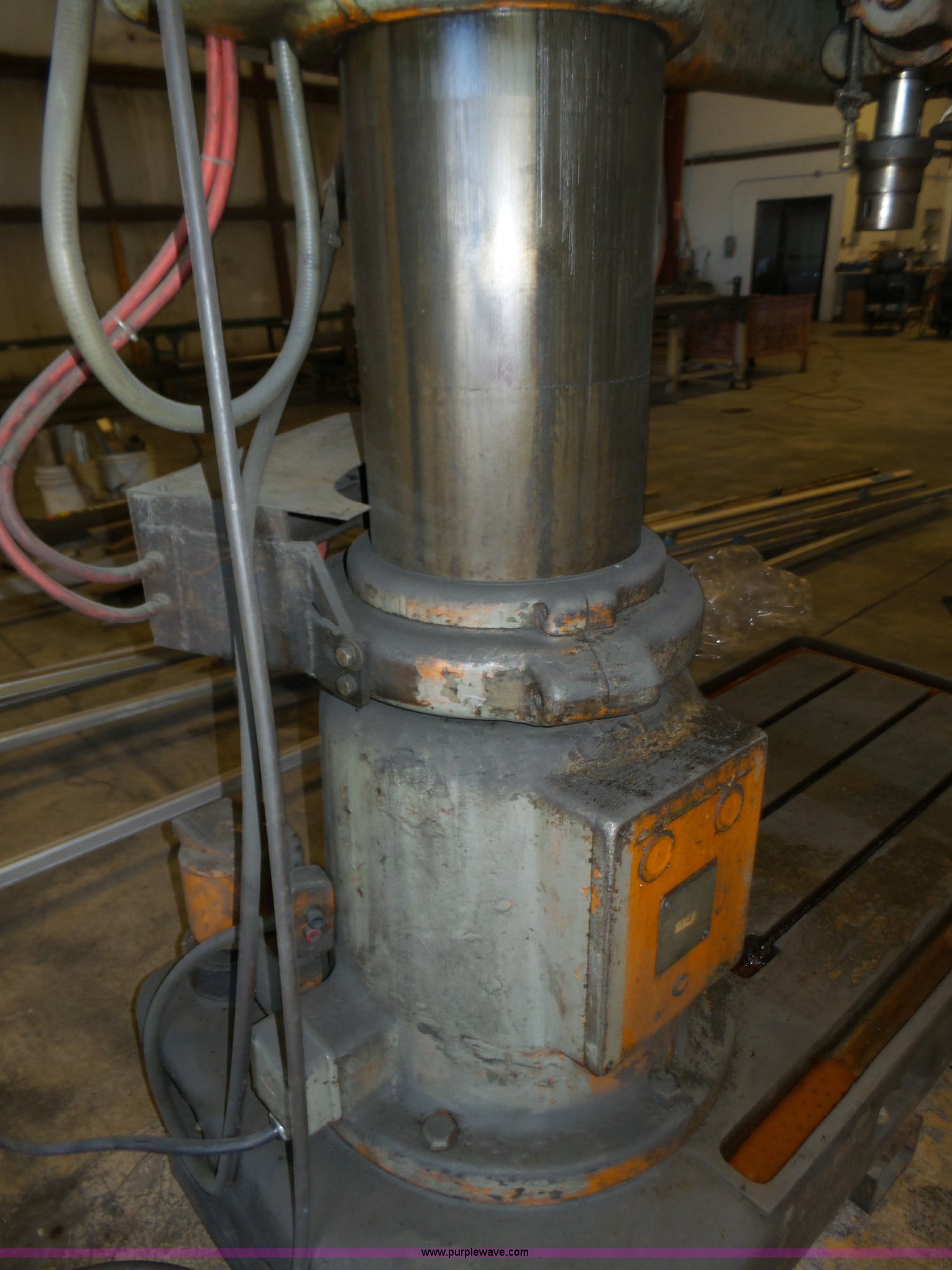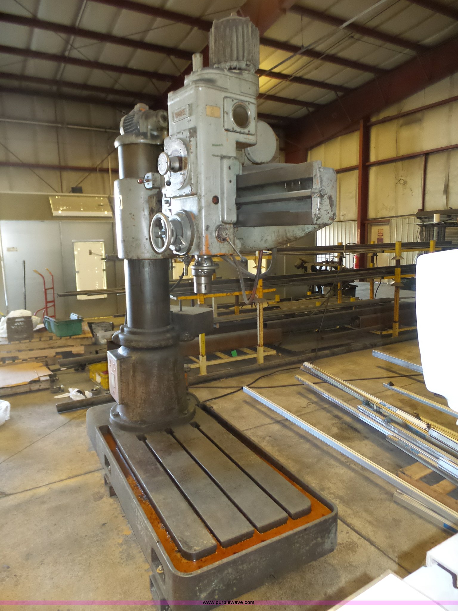 Purple Wave is selling a used Tools in Nebraska. This item is a M4PE radial arm drill with the following: Approximately 80"L x 36"W x 105"H O.D., No. five morse taper maximum capacity, Forward and reverse, 240V, Three phase, Currently set up for 208V, Power adjustable height